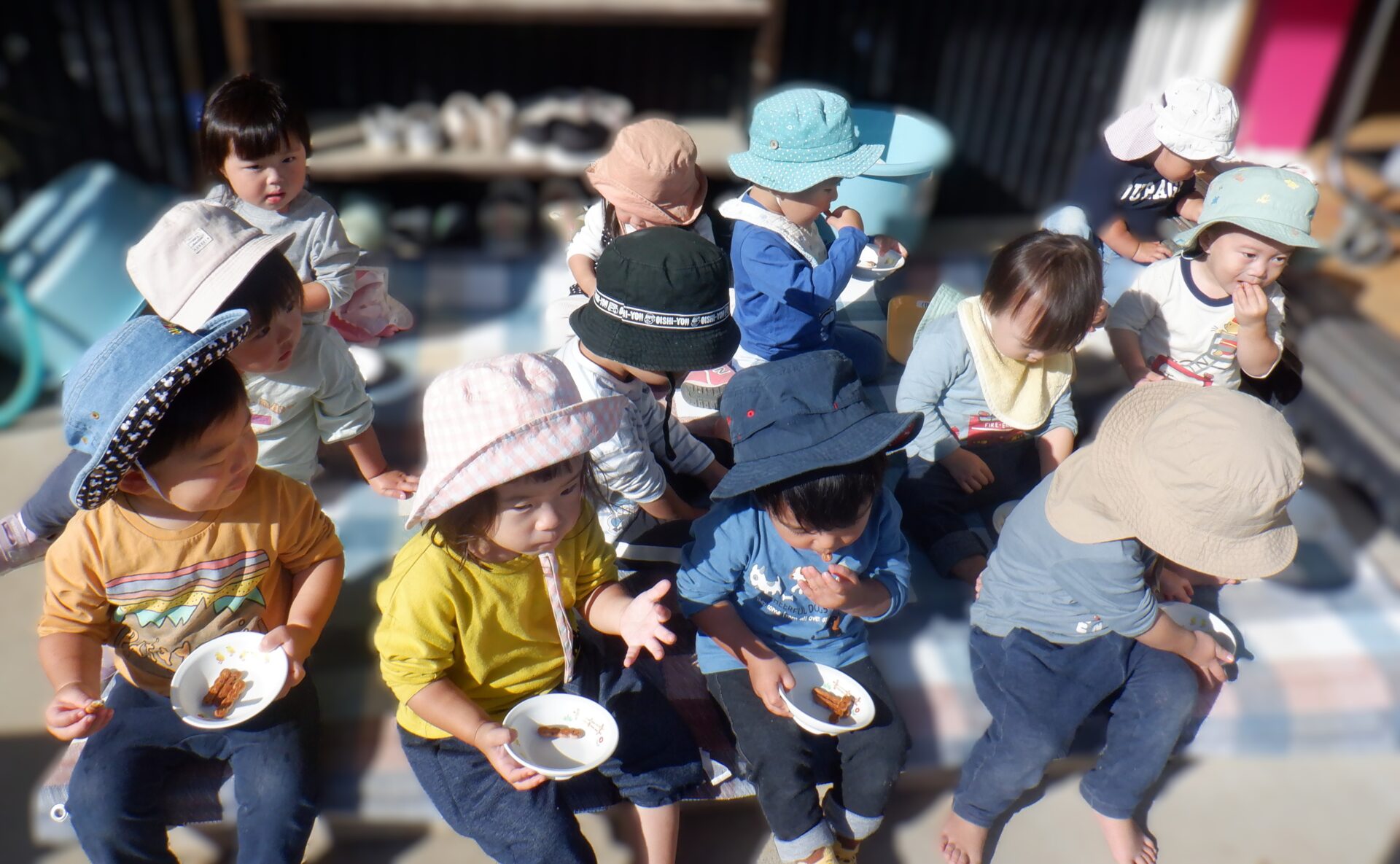 ぽかぽかなので、おやつもお外で食べちゃいます♪