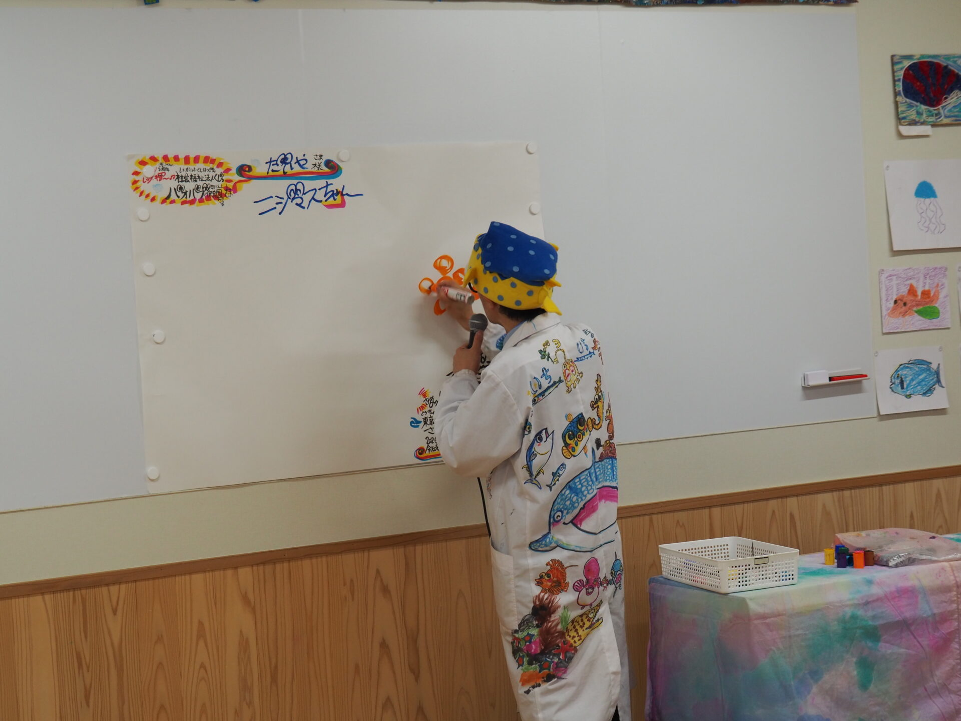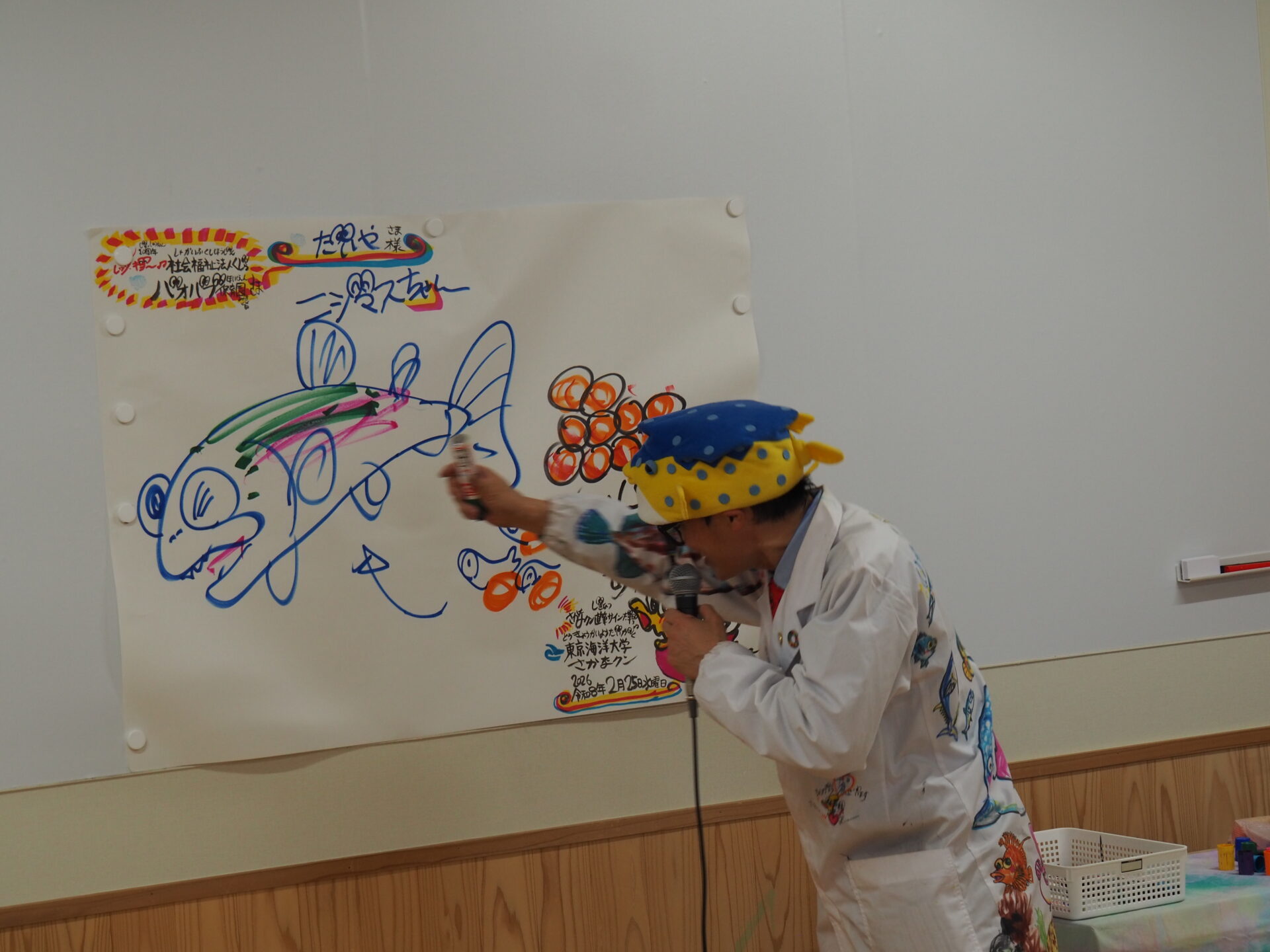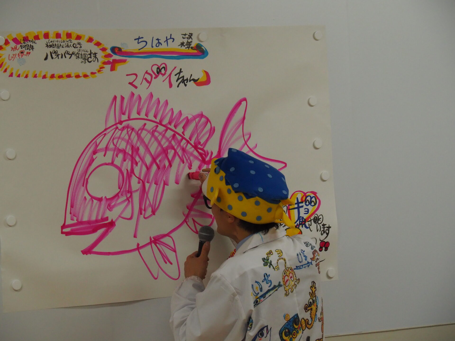さかなクンが絵を描いたりお話している姿見みんなくぎ付け。