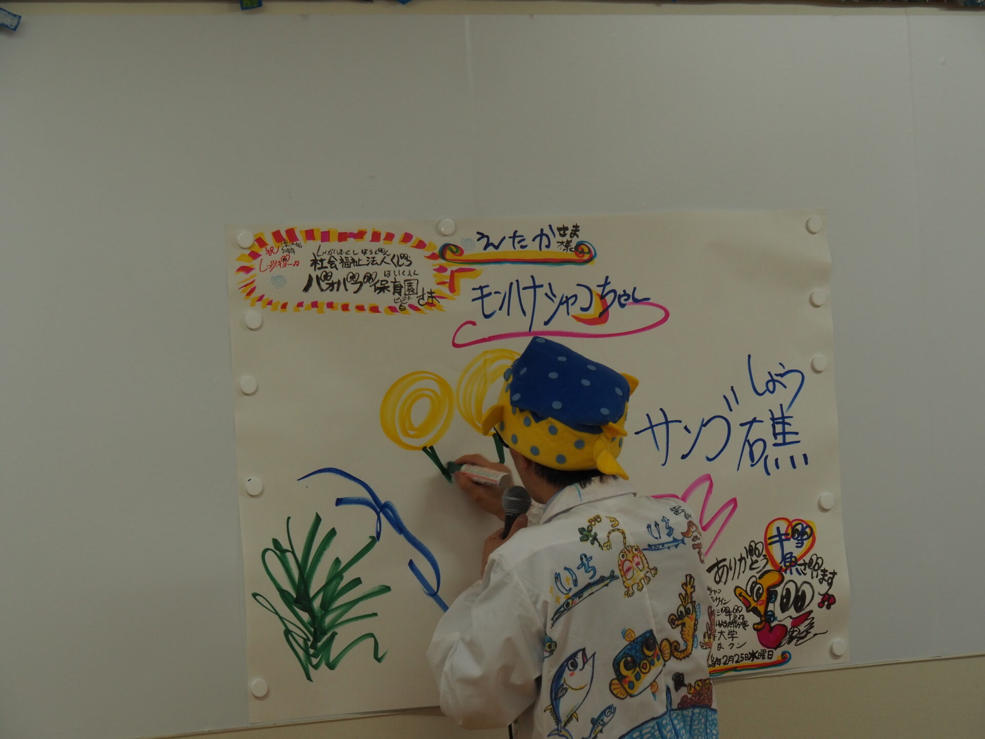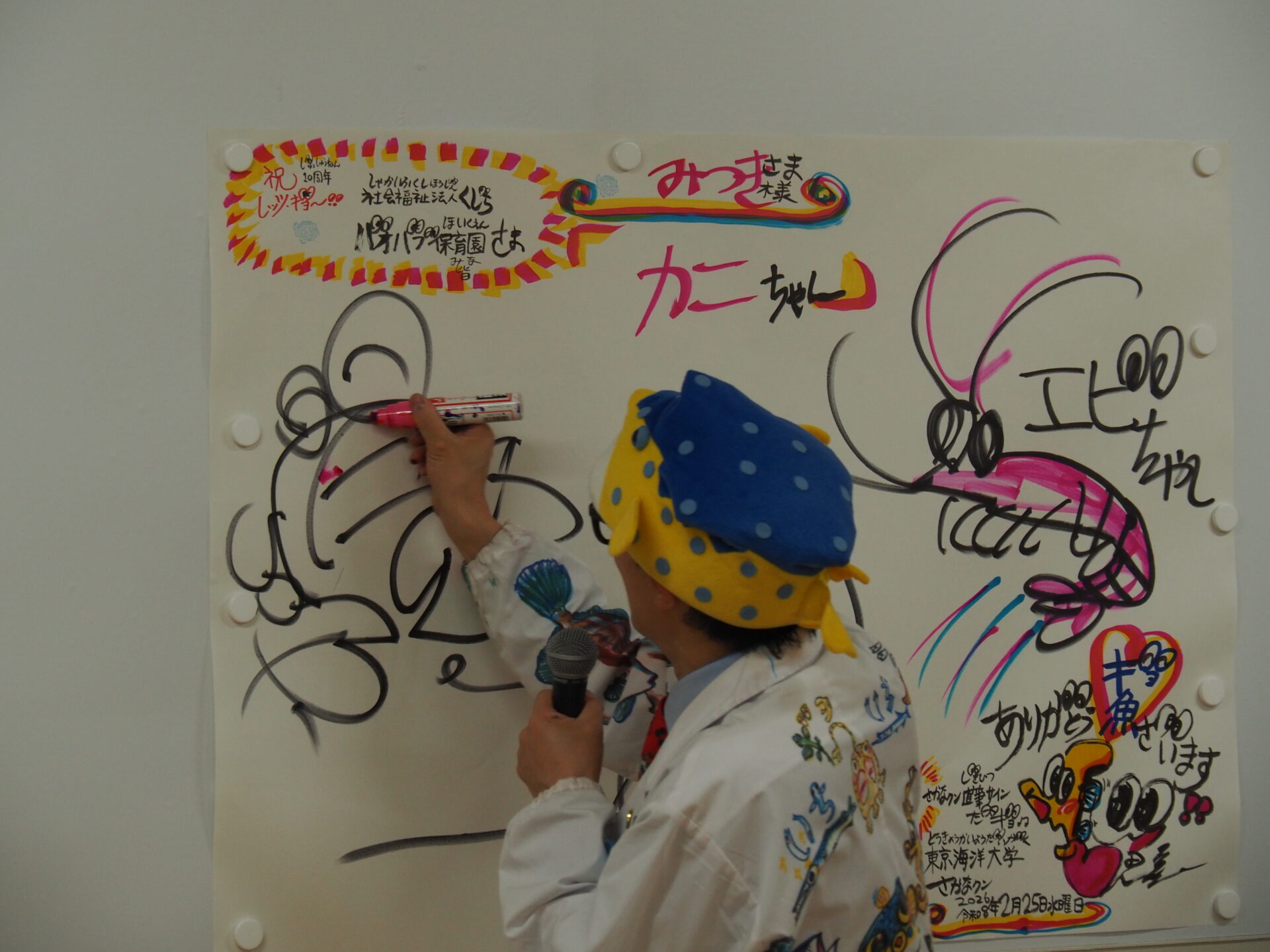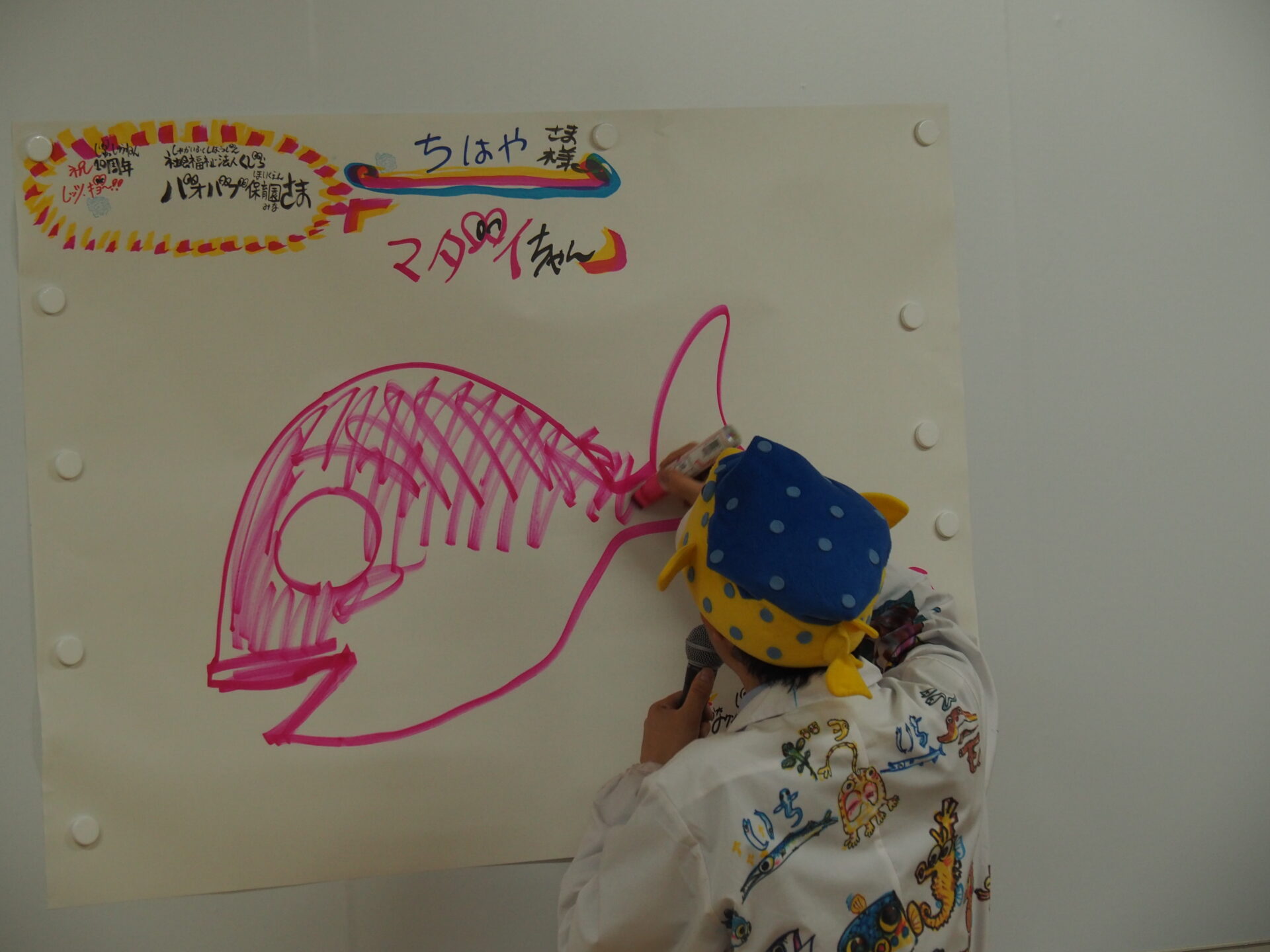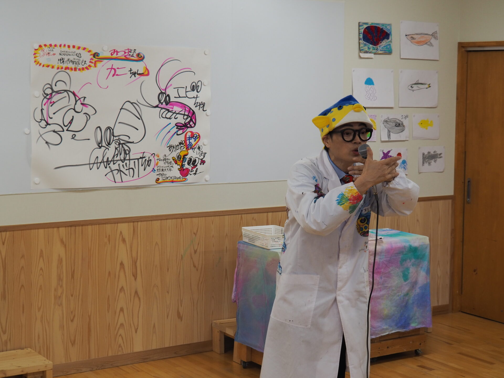 さかなクンが絵を描いたりお話している姿見みんなくぎ付け。