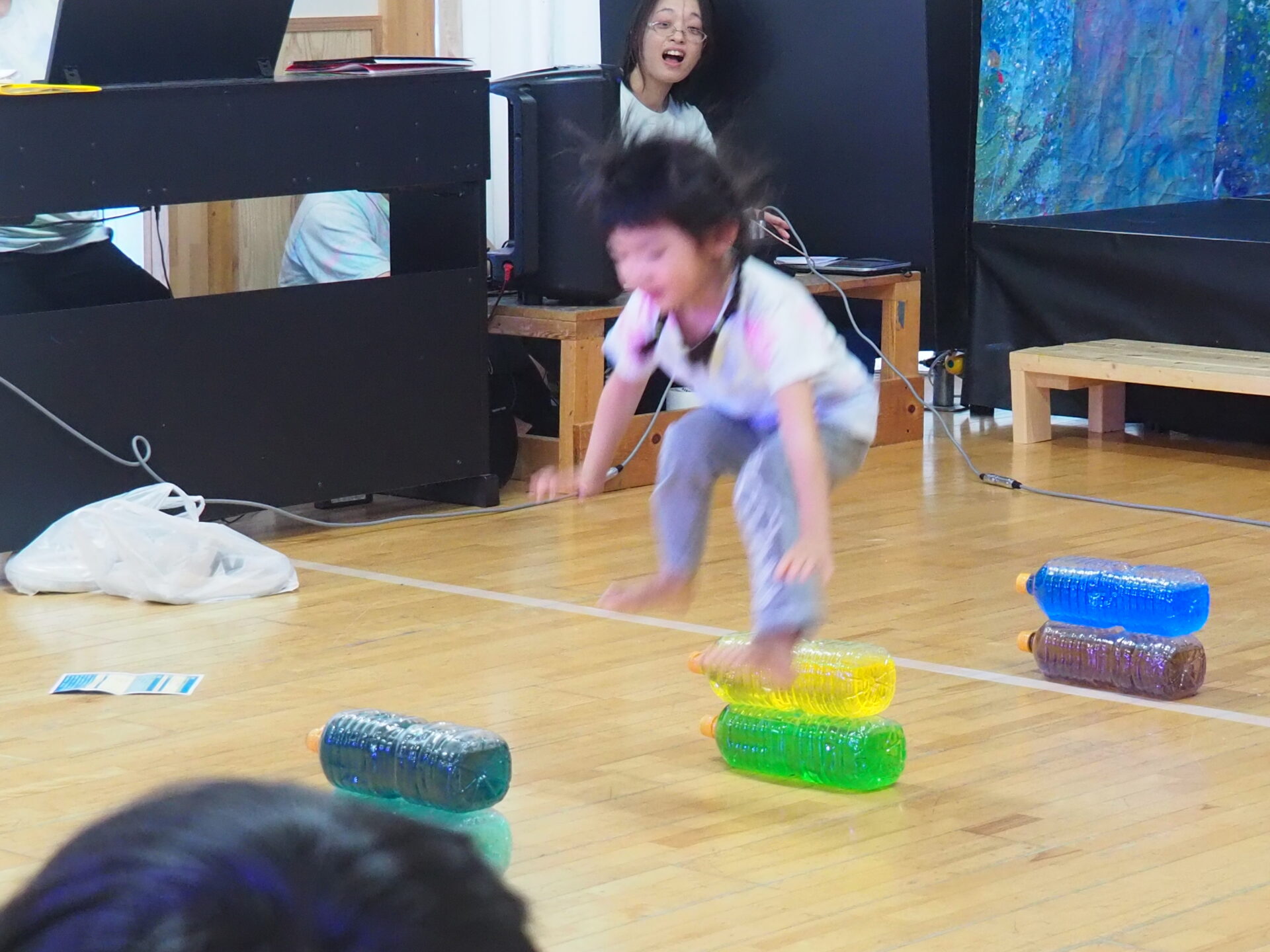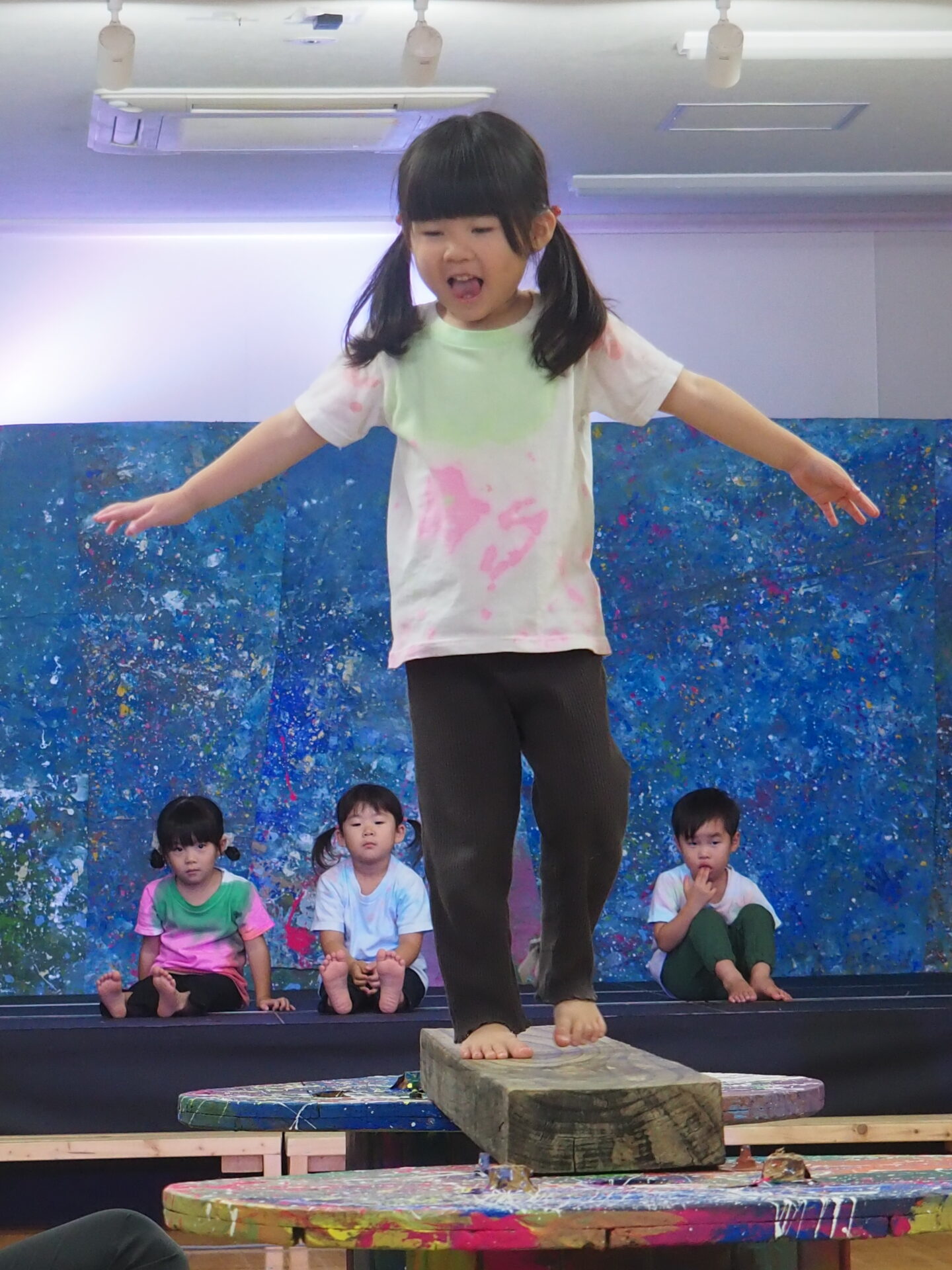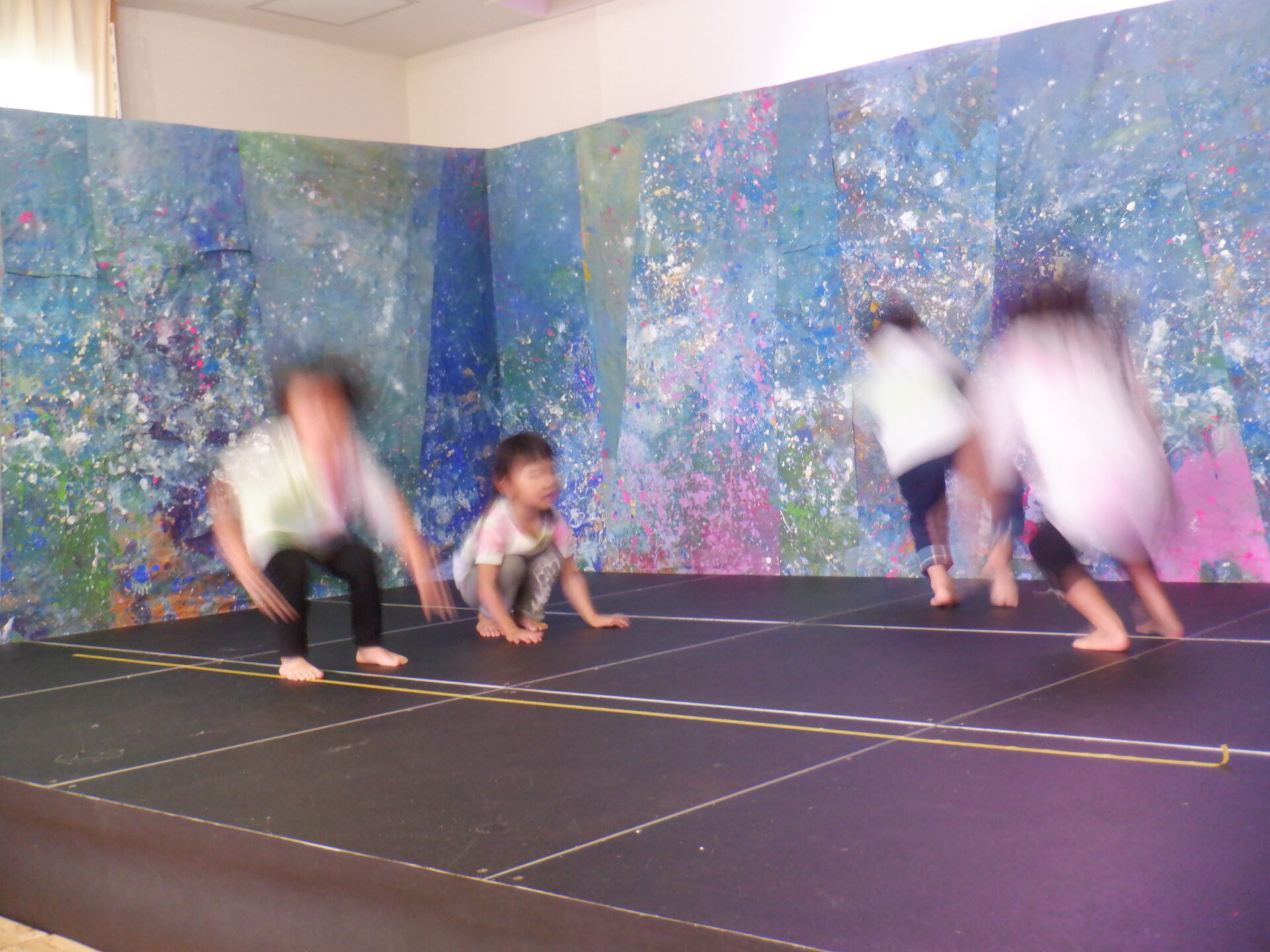 ステージ上で頑張る姿。アスレチックや俊足王ではたくましなった体。