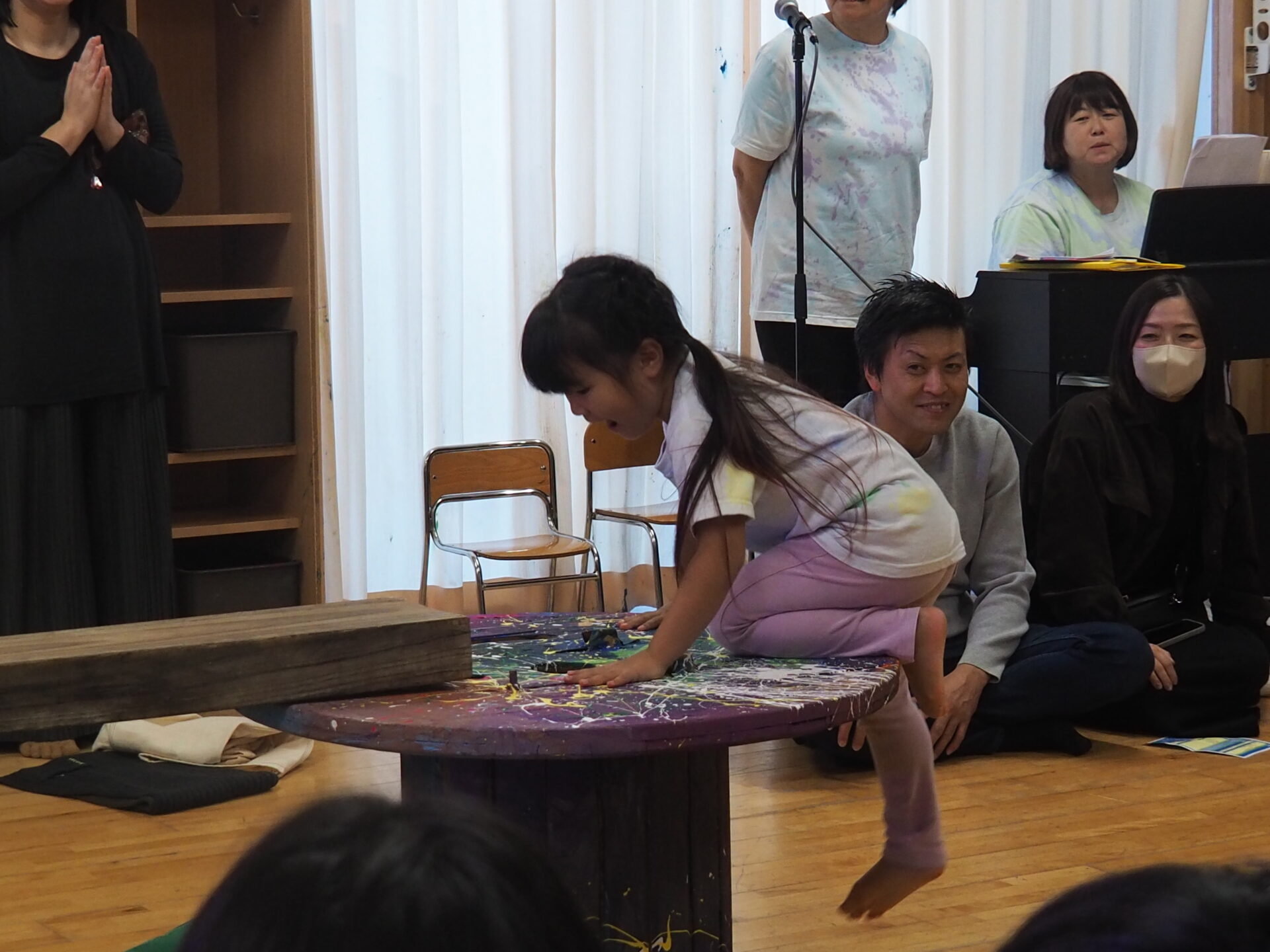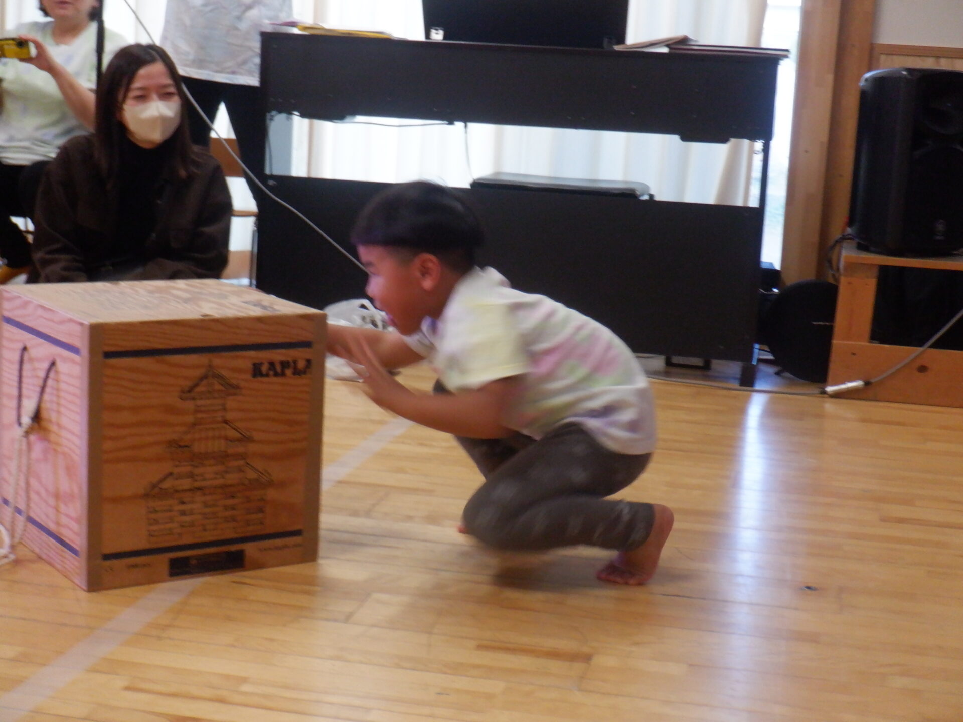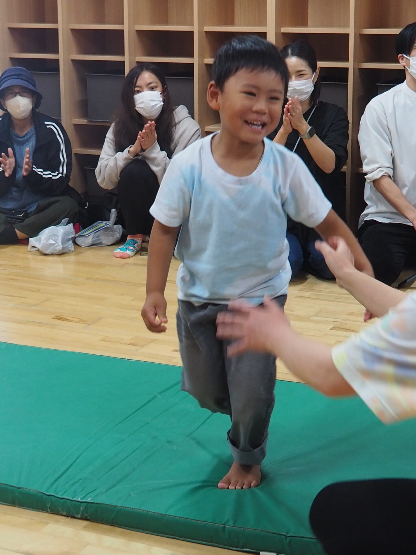 ステージ上で頑張る姿。アスレチックや俊足王ではたくましなった体。