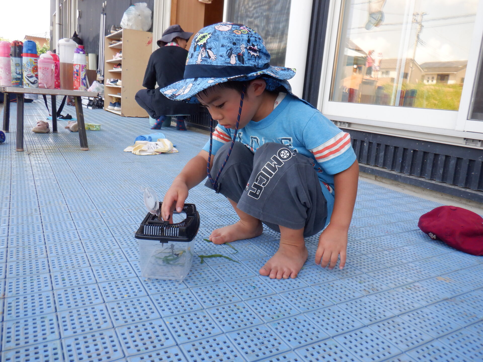 と言って、そっと虫かごの蓋を開けてくれます。