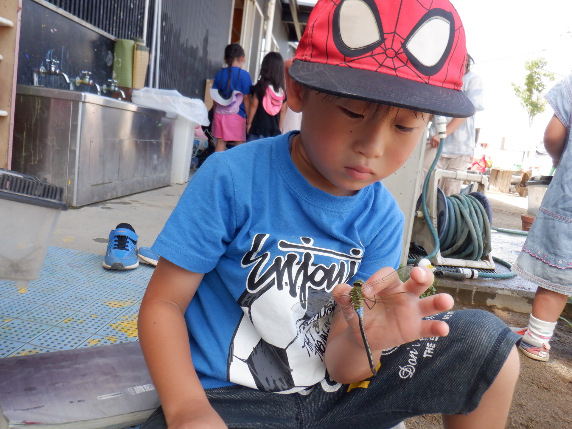 捕まえた後のトンボをどうするのか子ども達に聞くと、