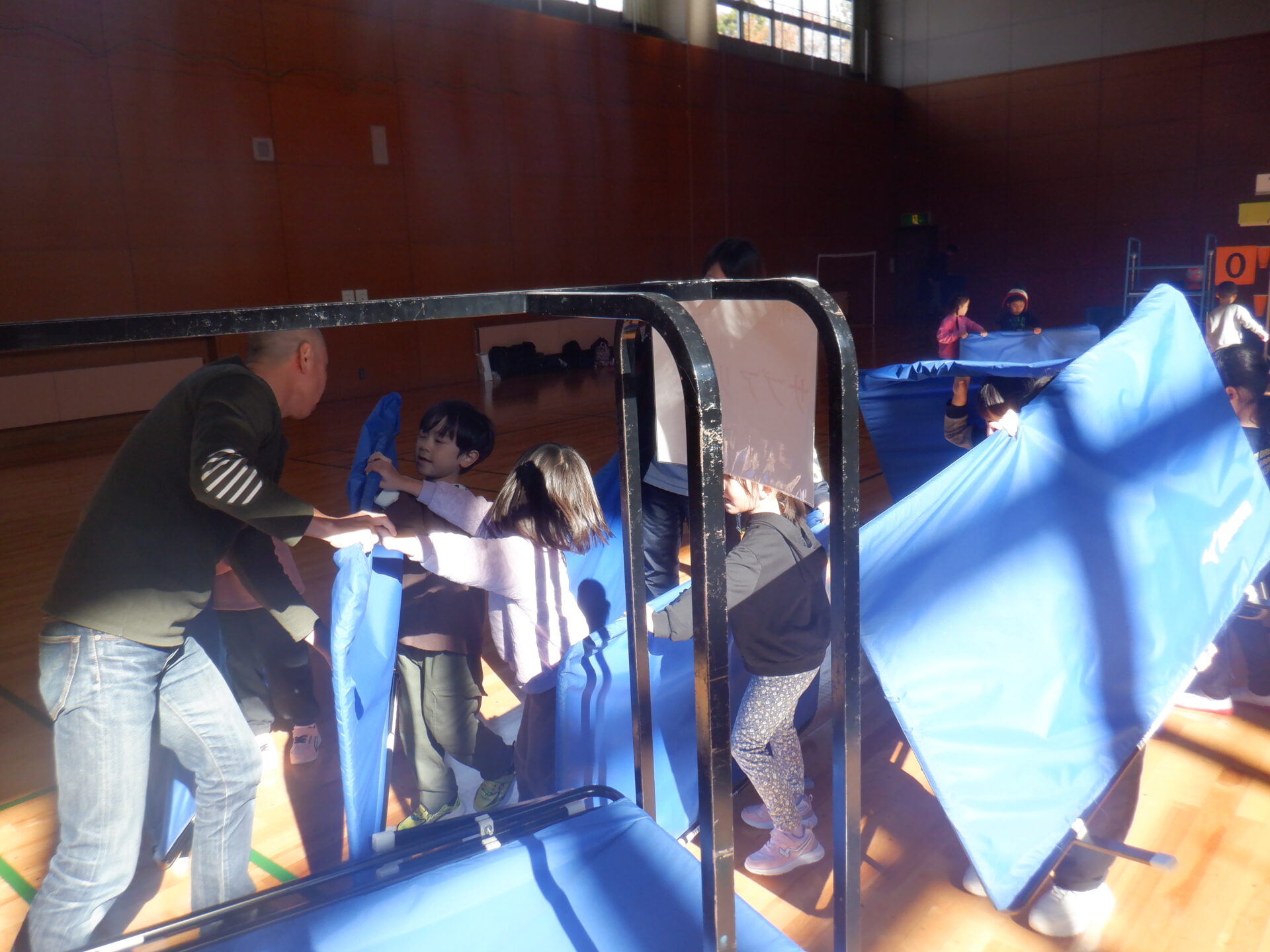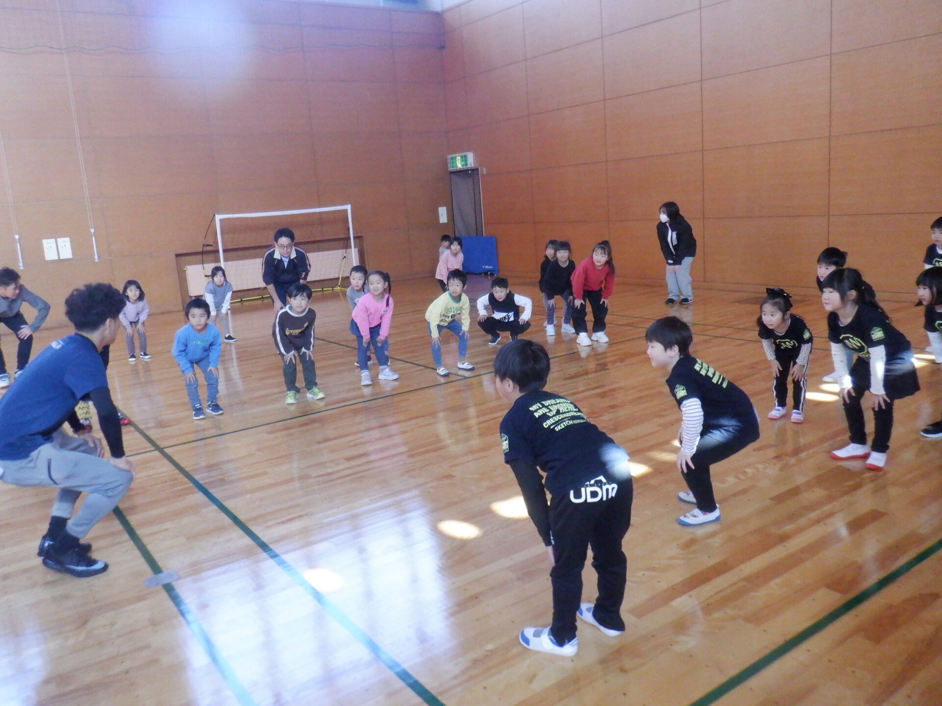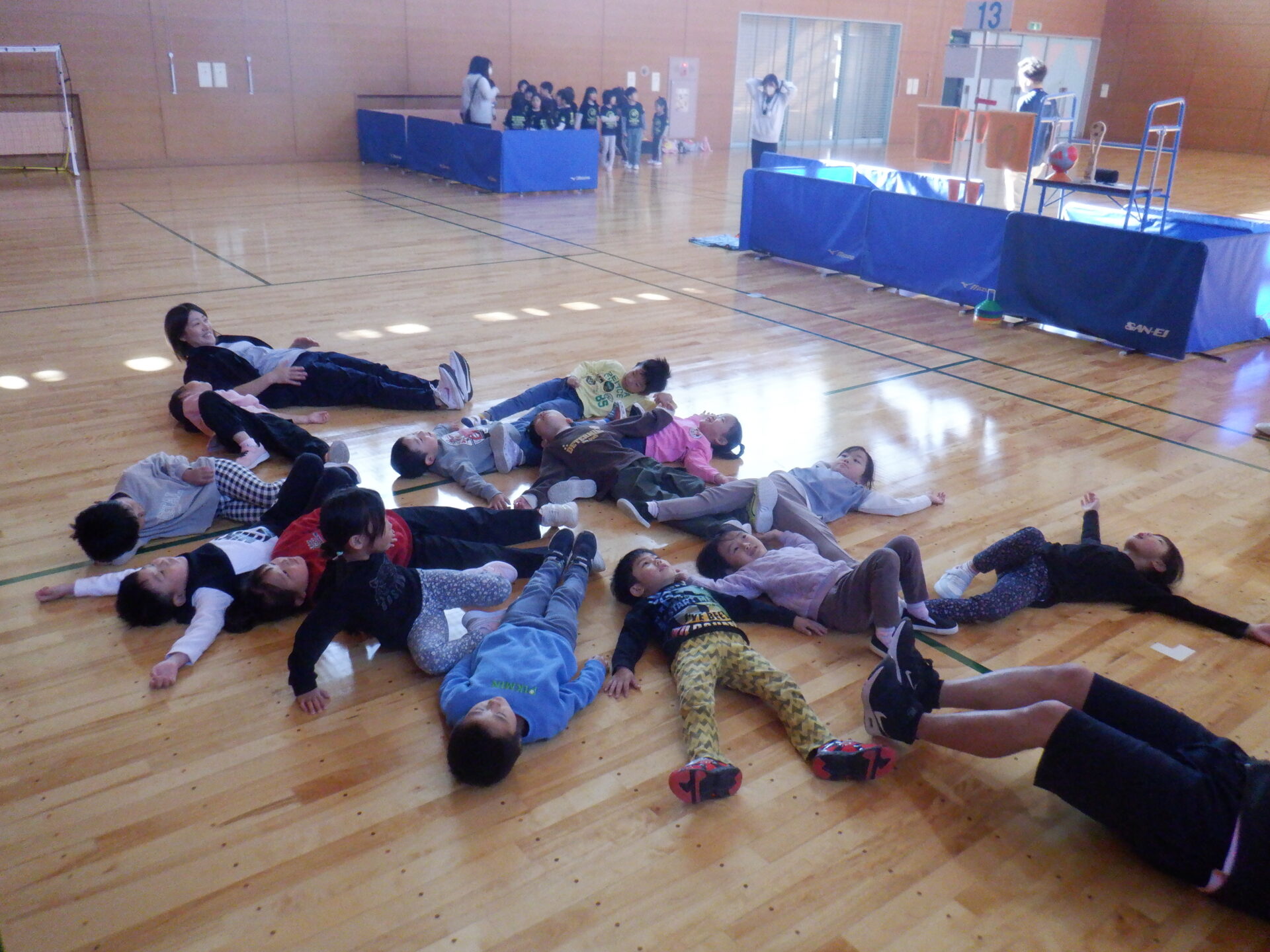 まずは、体操やウォーミングアップで体と心をほぐします。