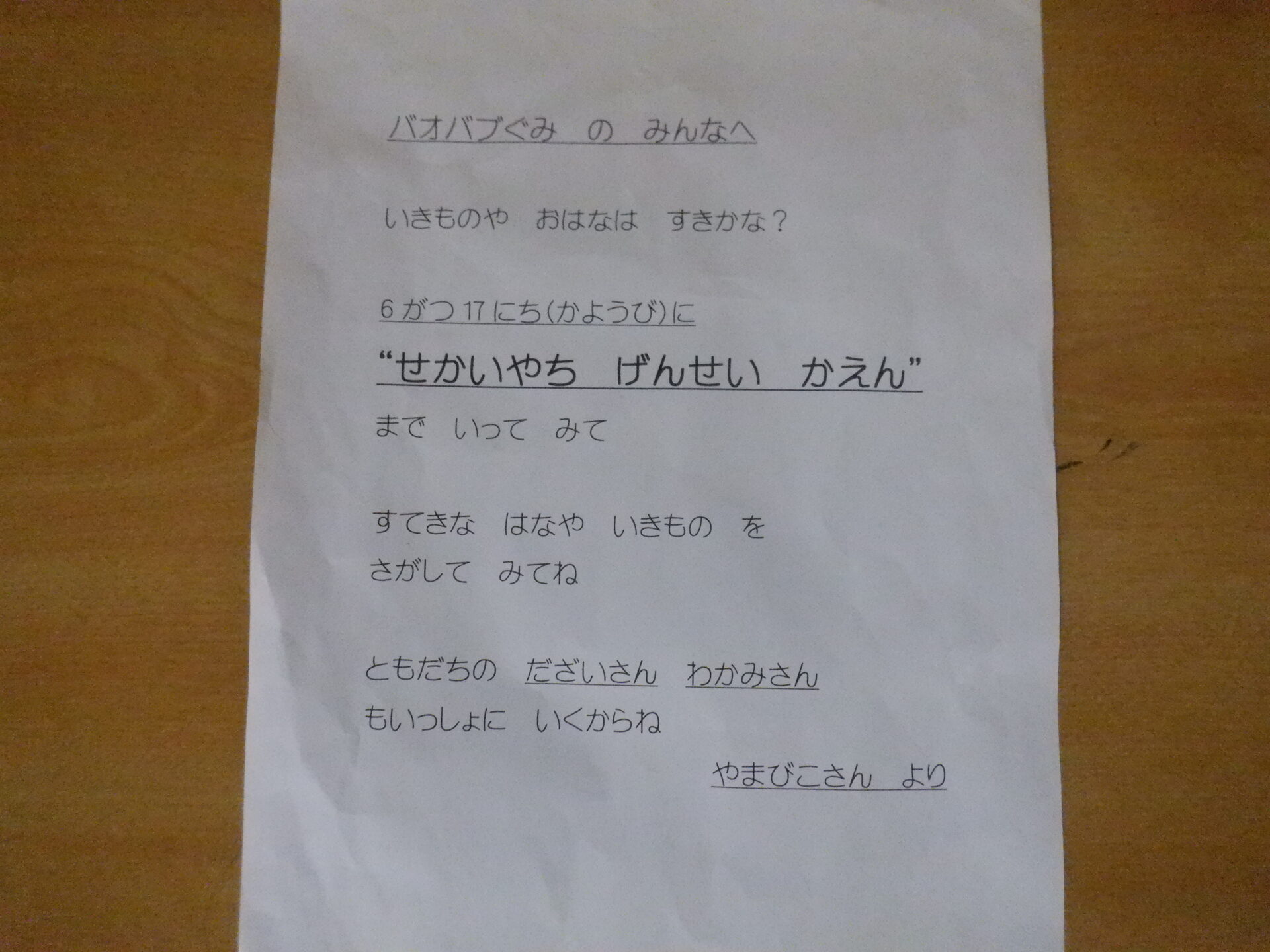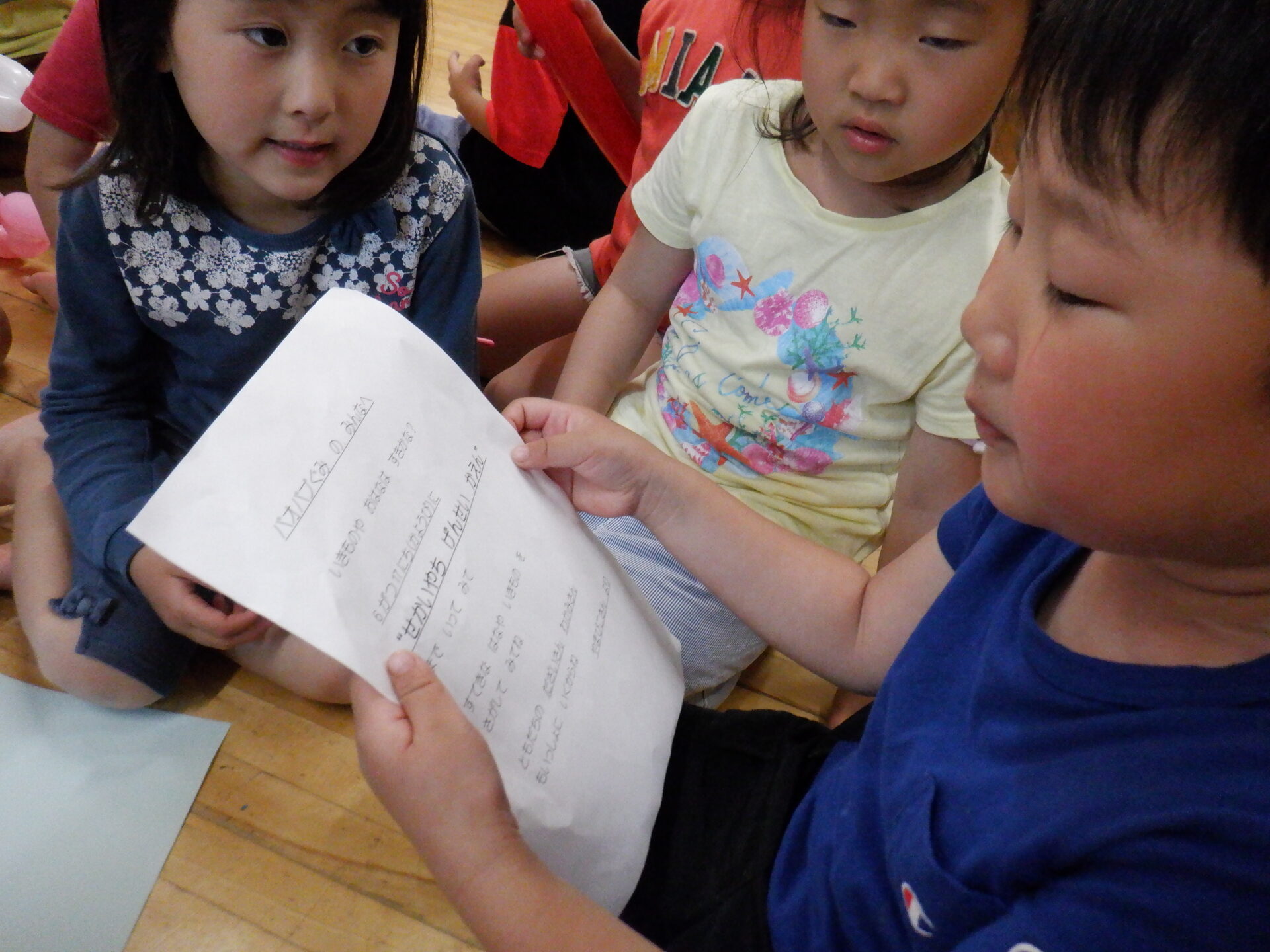 本来なら、4・5歳児クラスの子ども達とその保護者の方と一緒に