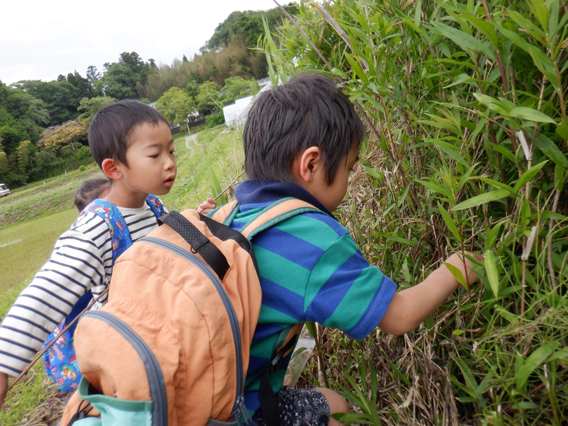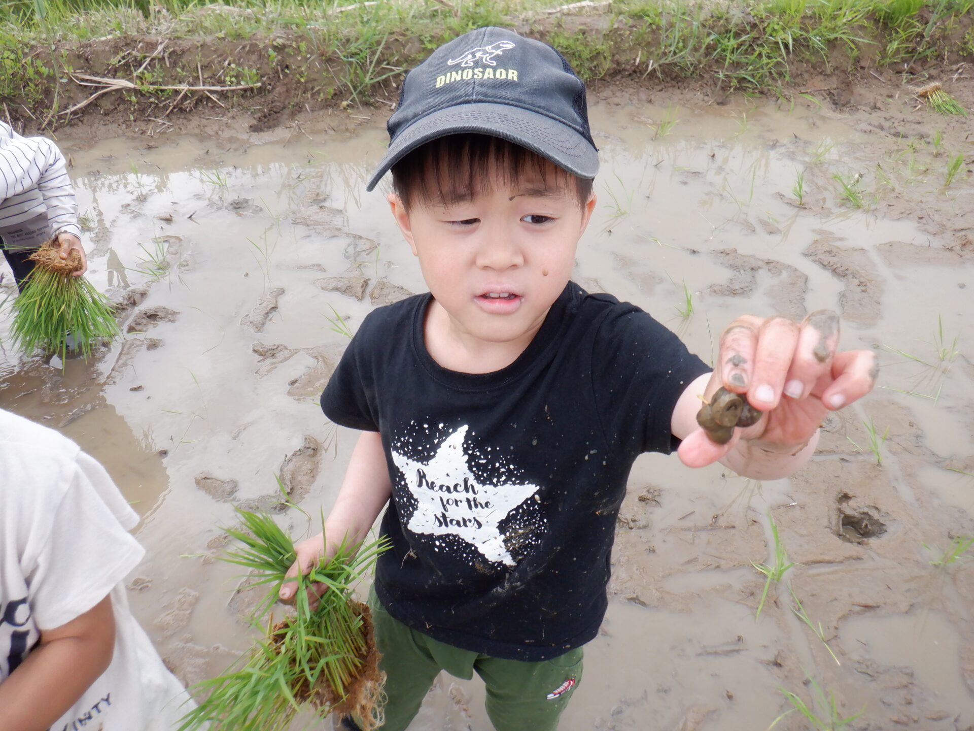 田んぼは田植えだけじゃない!虫探し、生き物探しも同時進行で楽しむのがバオバブの子ども達!
