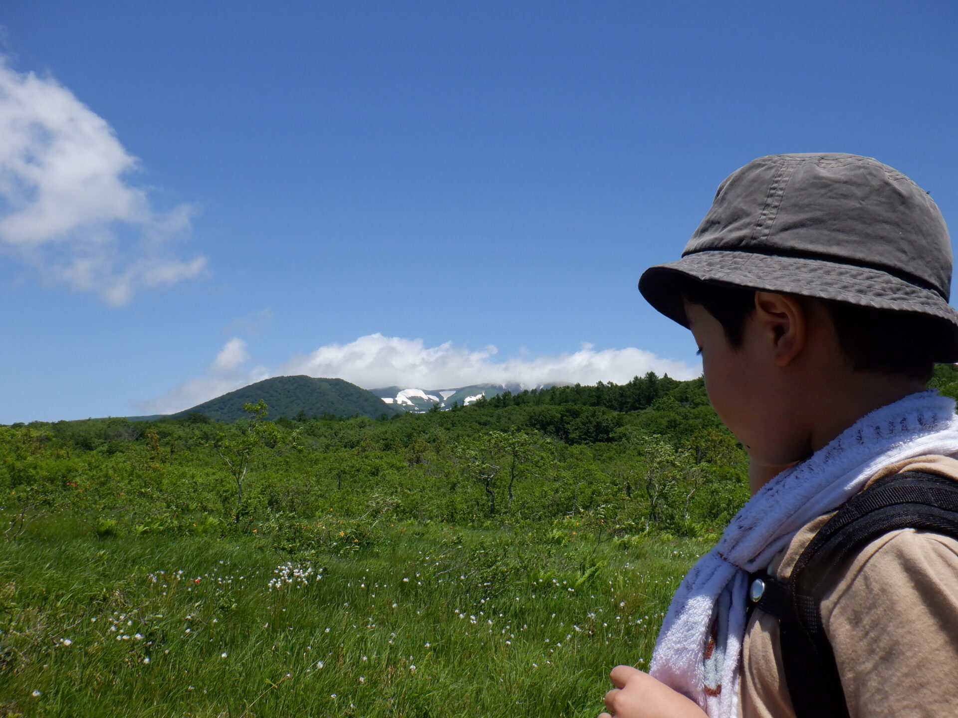 栗駒山のてっぺんは雪が残ってるぞ!あそこはまだ冬なんだ!