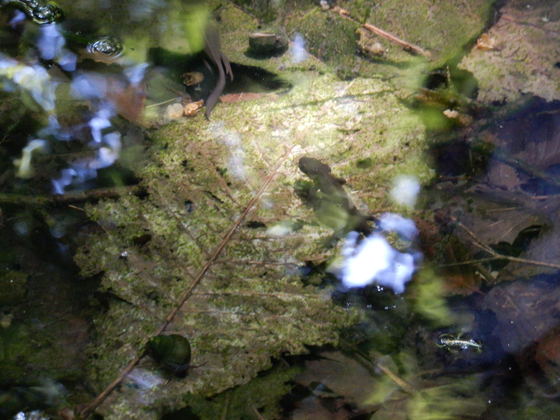 大量のイモリにモリアオガエルの卵もいっぱい!