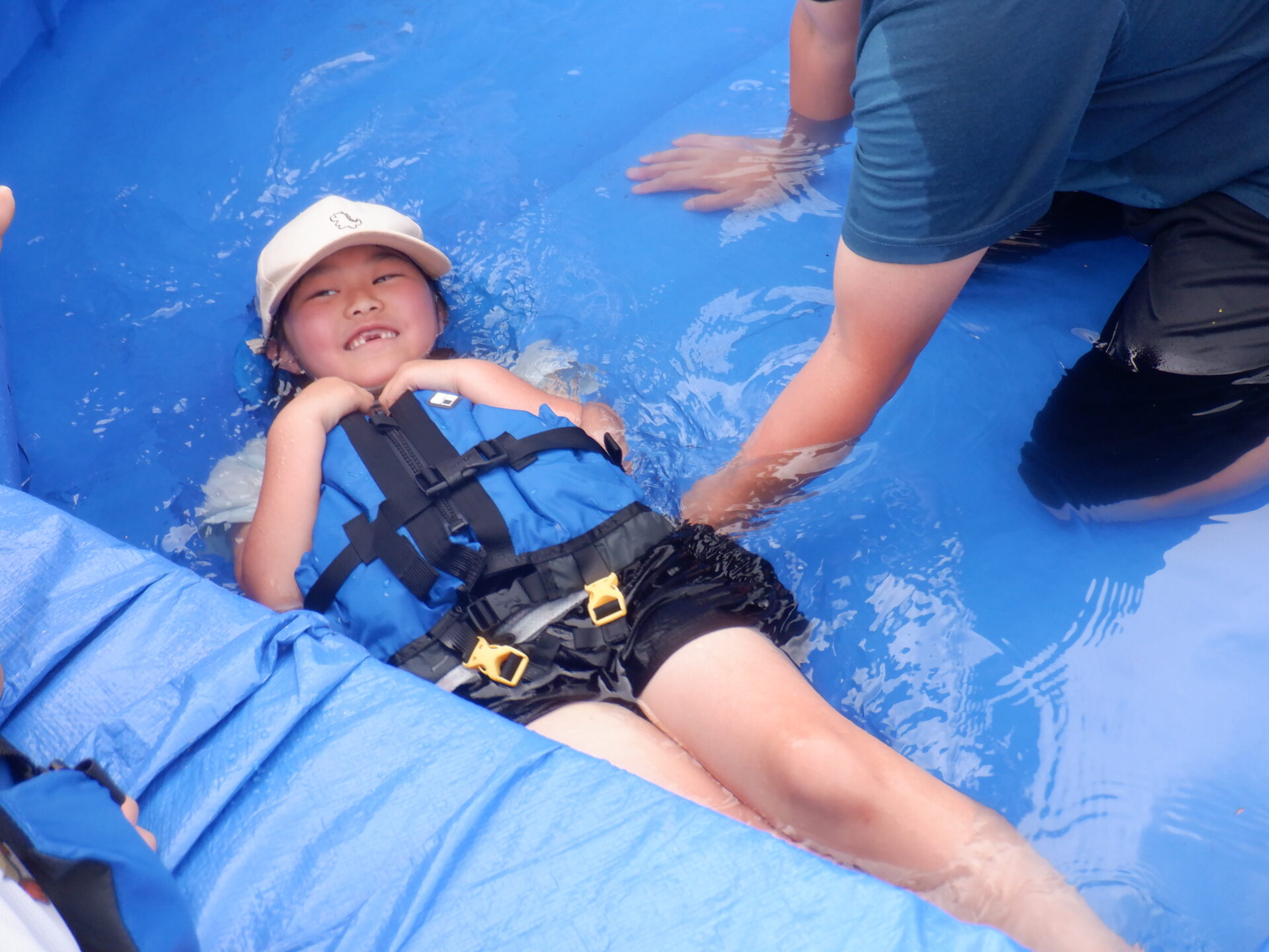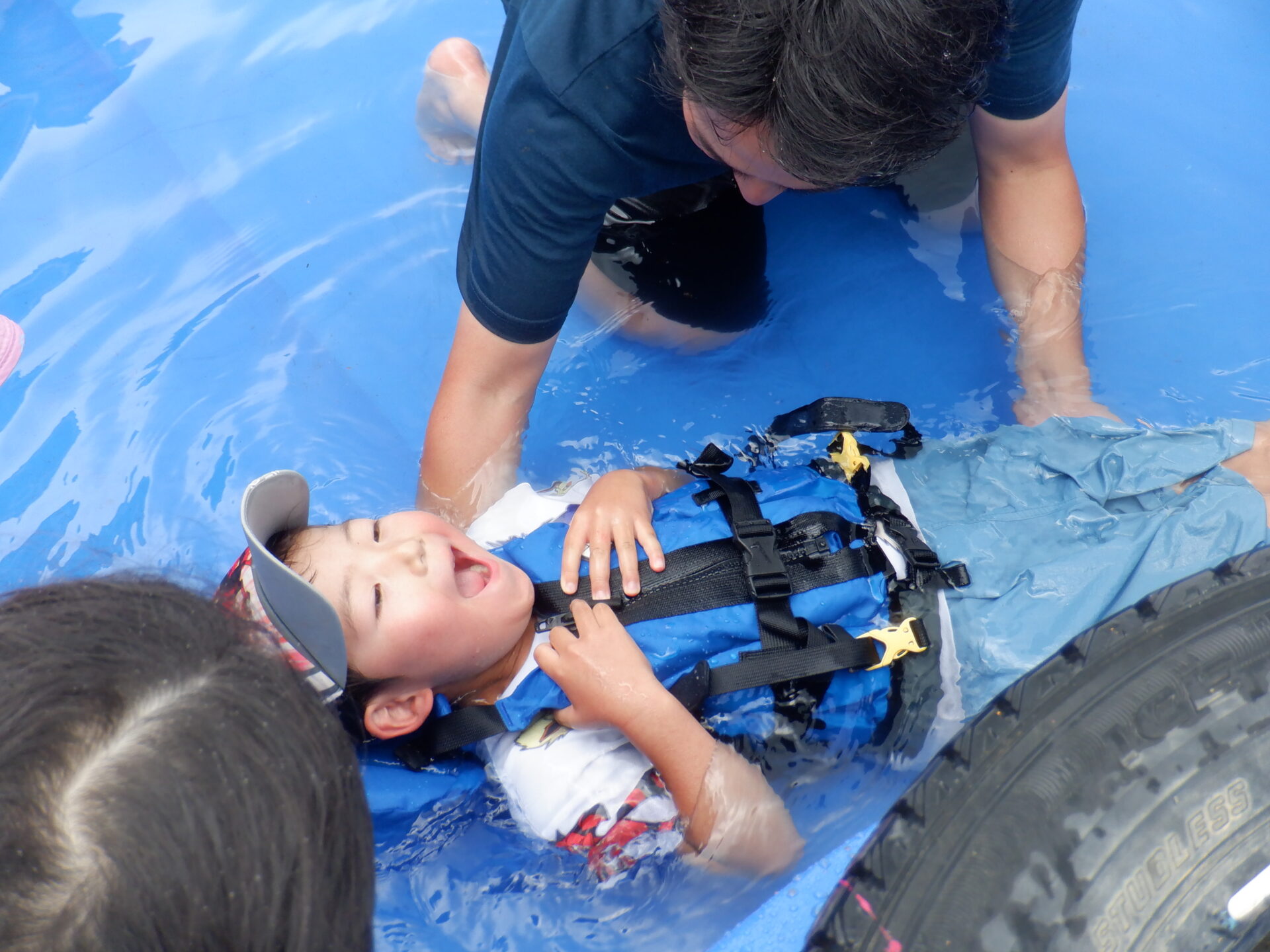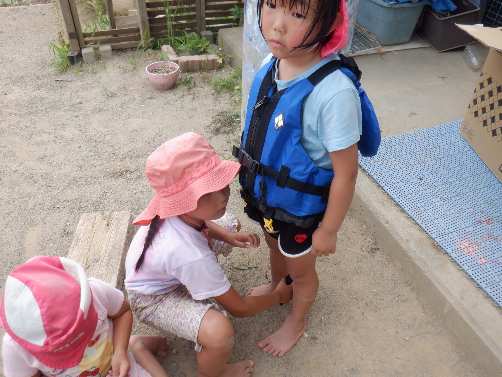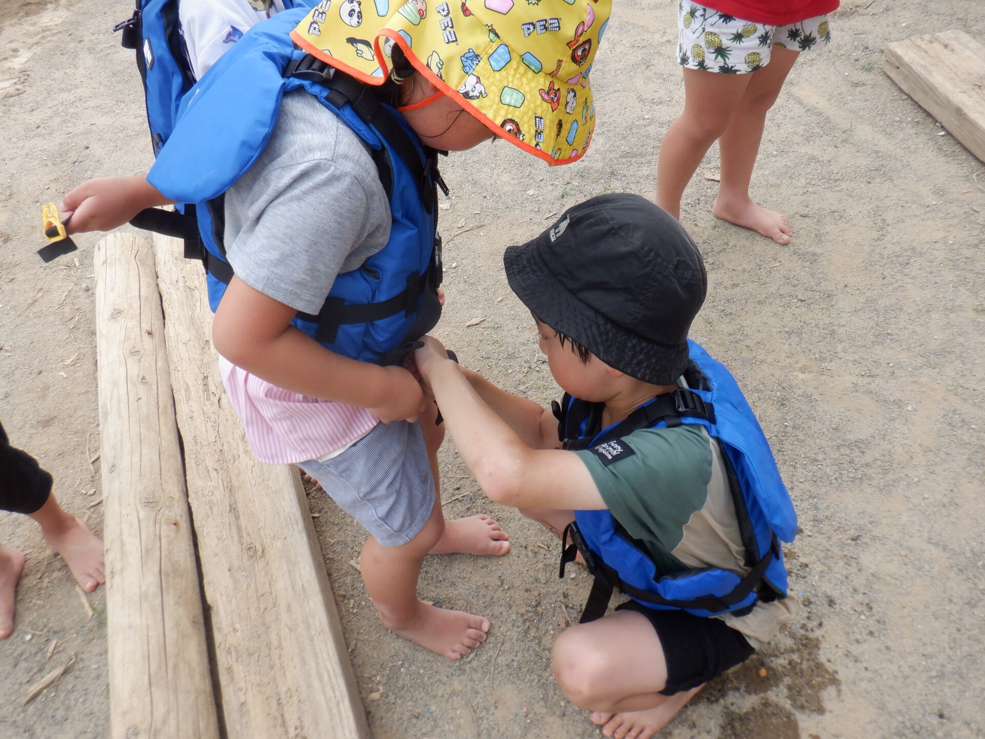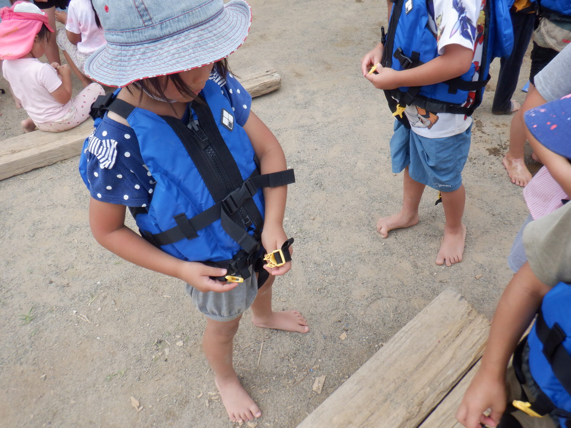 川遊びに向けてライフジャケットを着て遊んでみる事に。