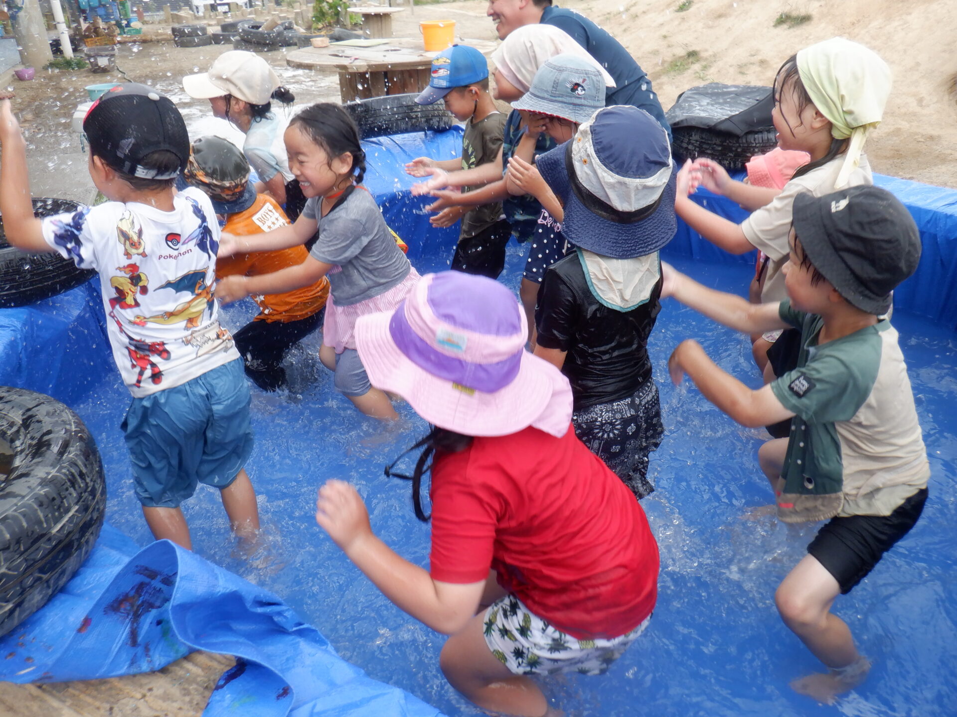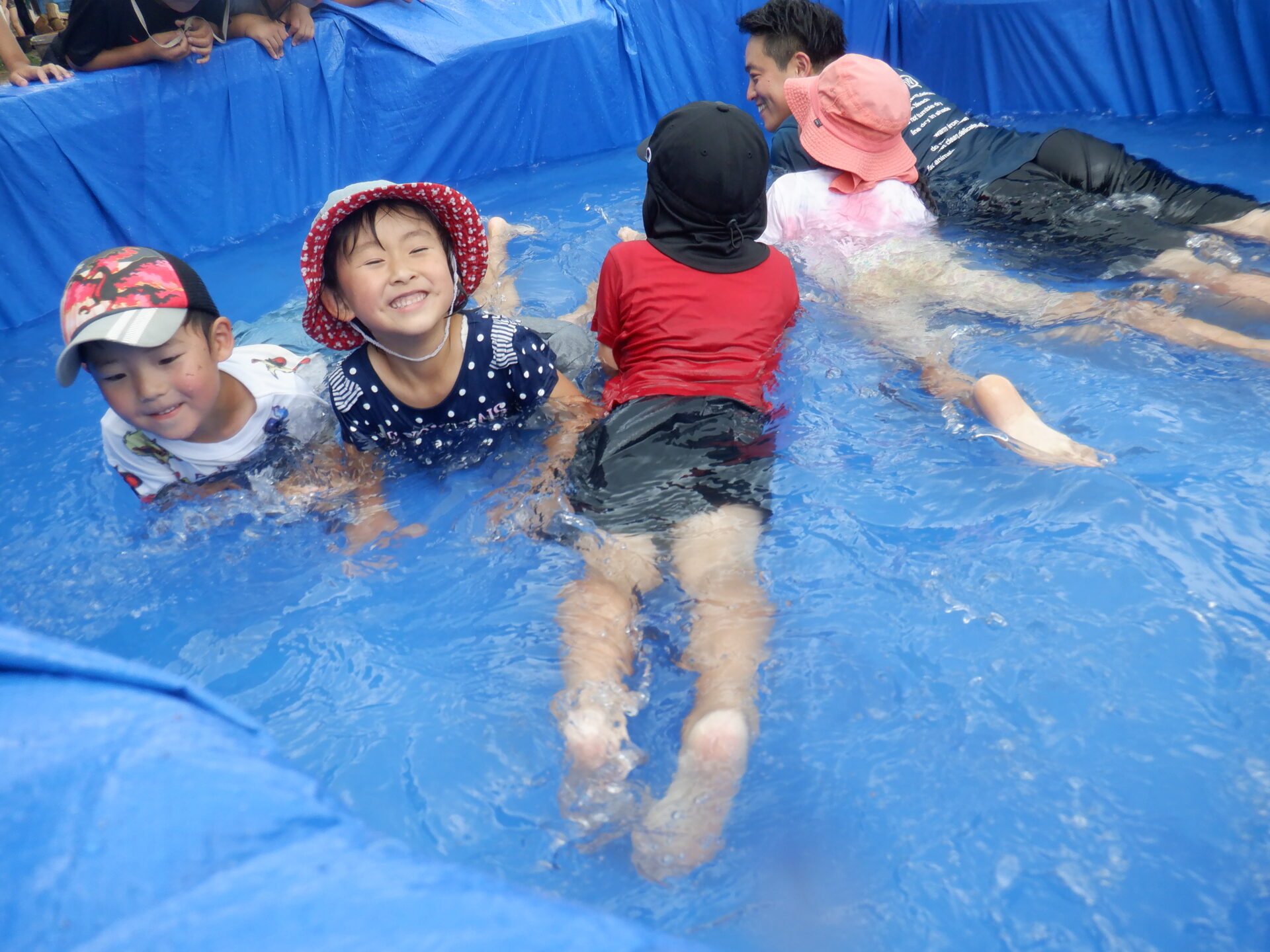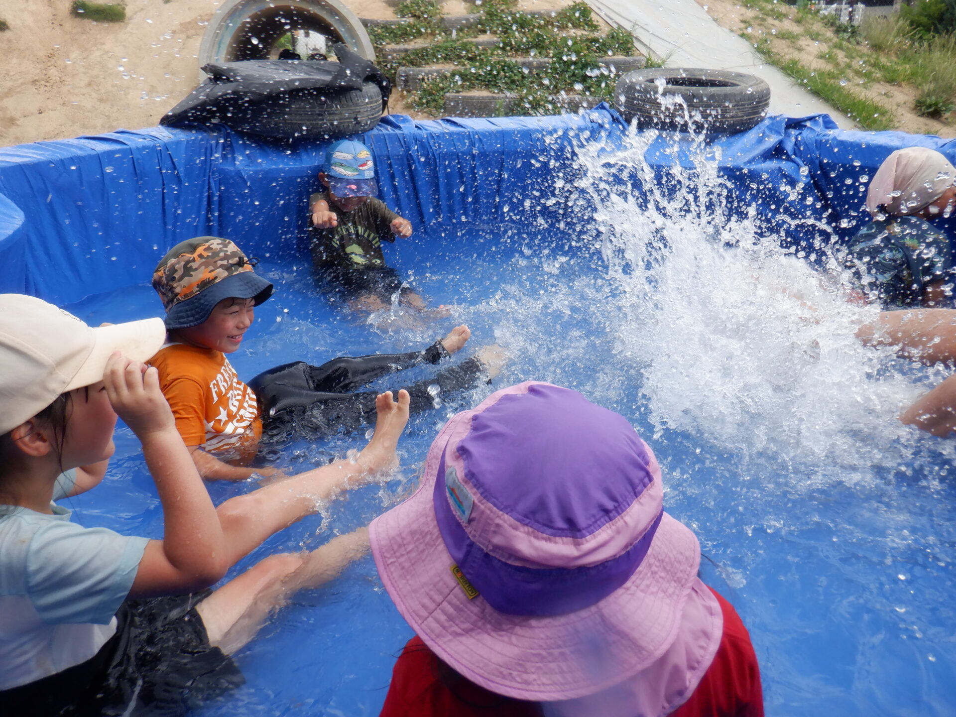 あっ、浮かんでいる所は手作りプールです。
