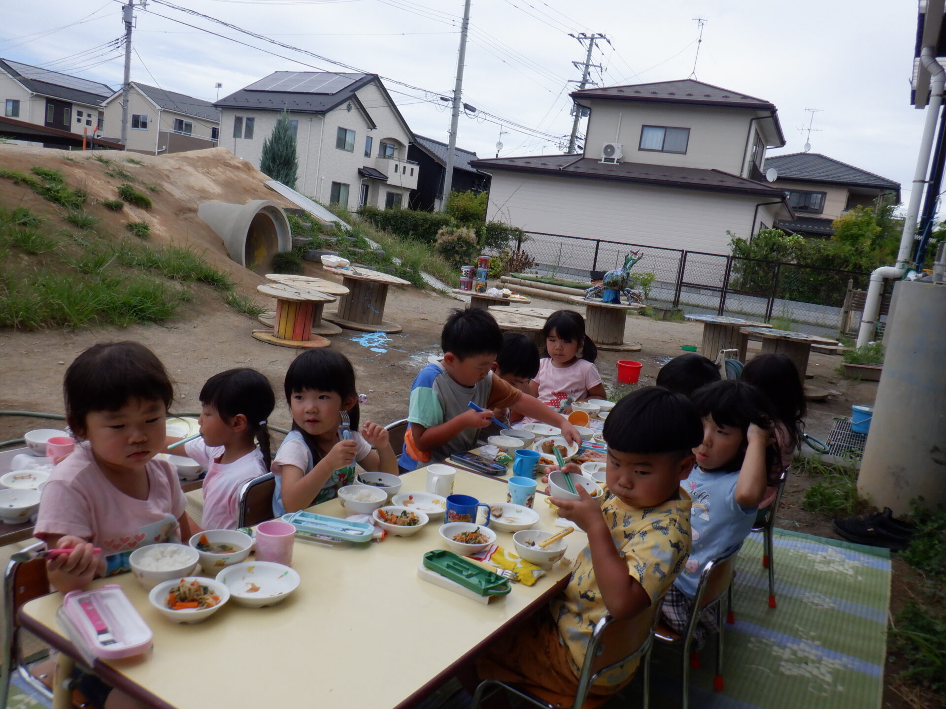 給食もみんな一緒にお外で食べちゃいました。