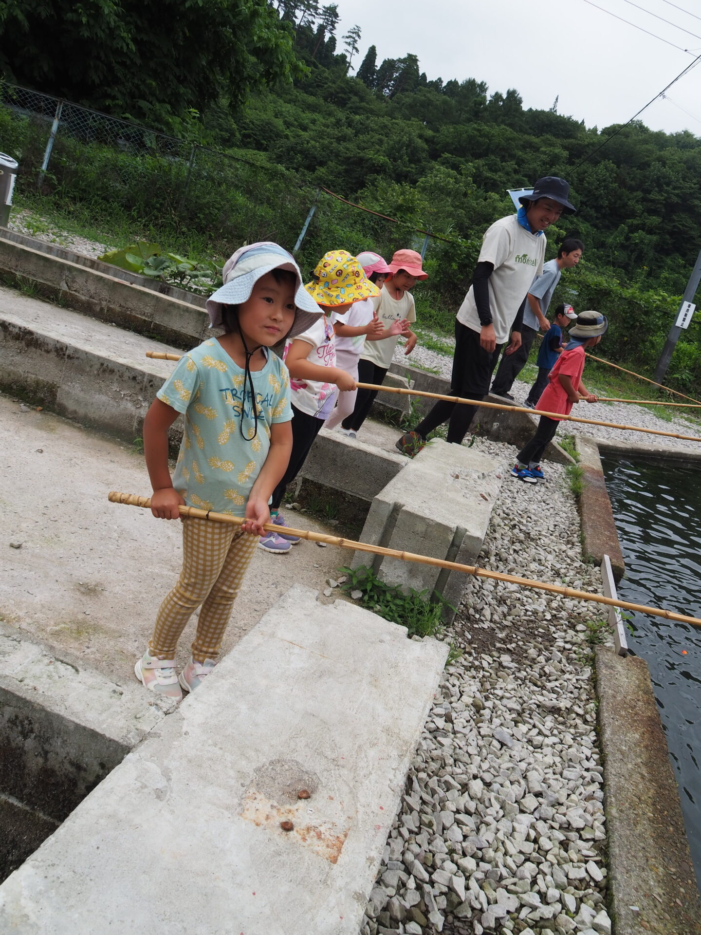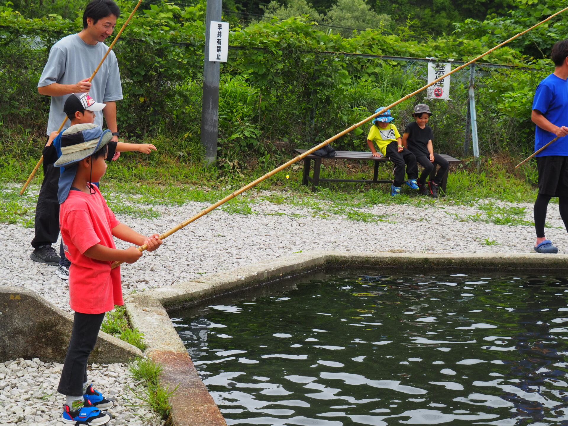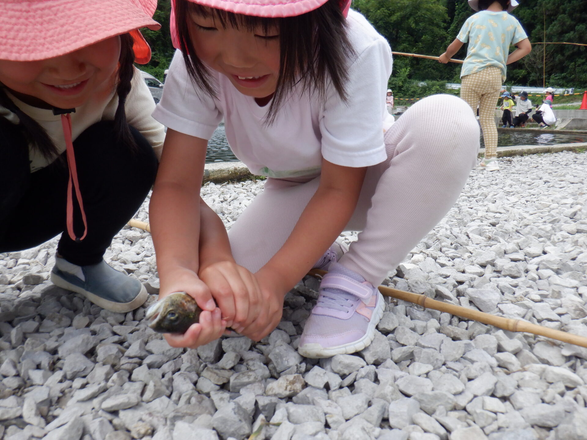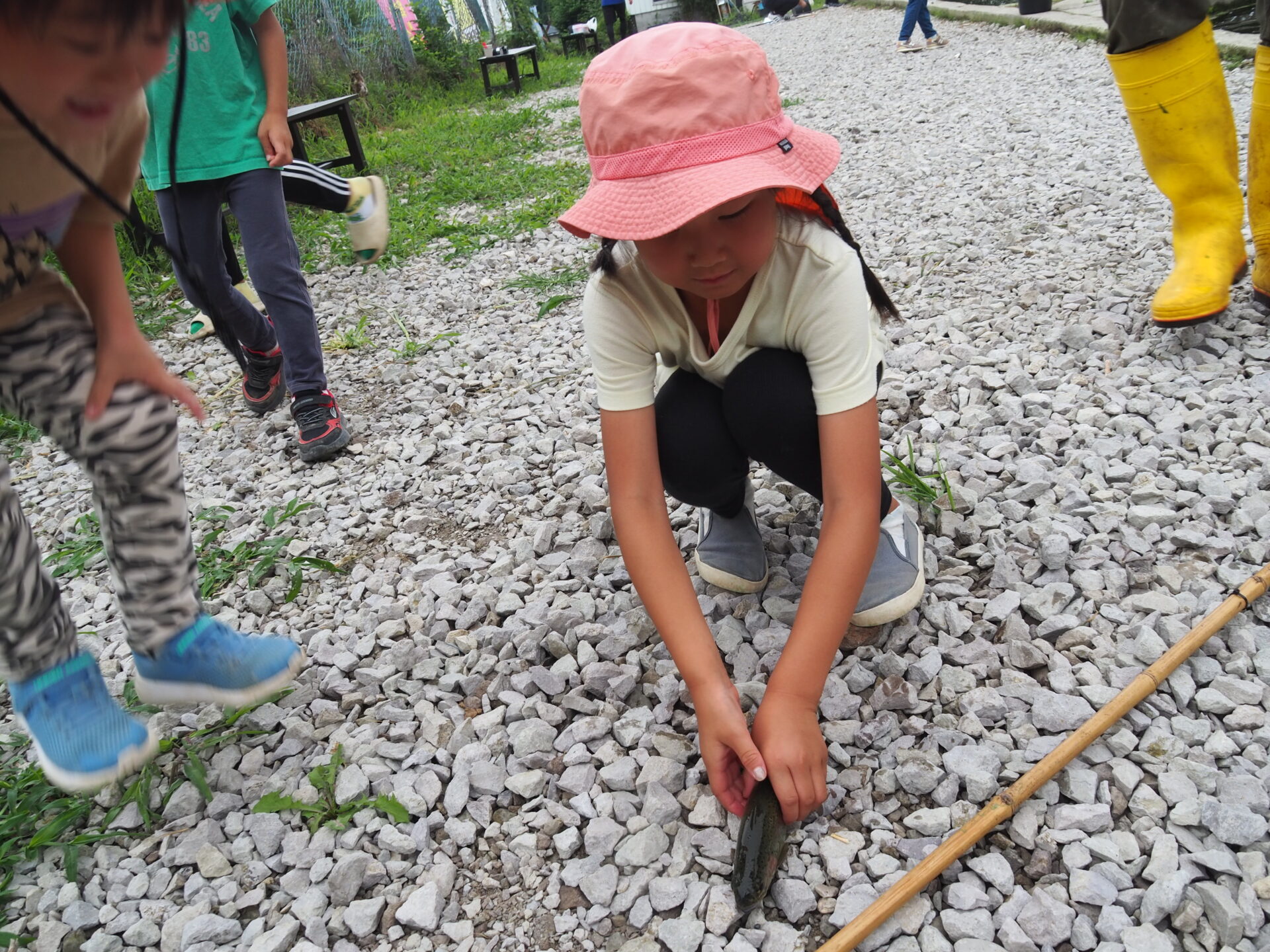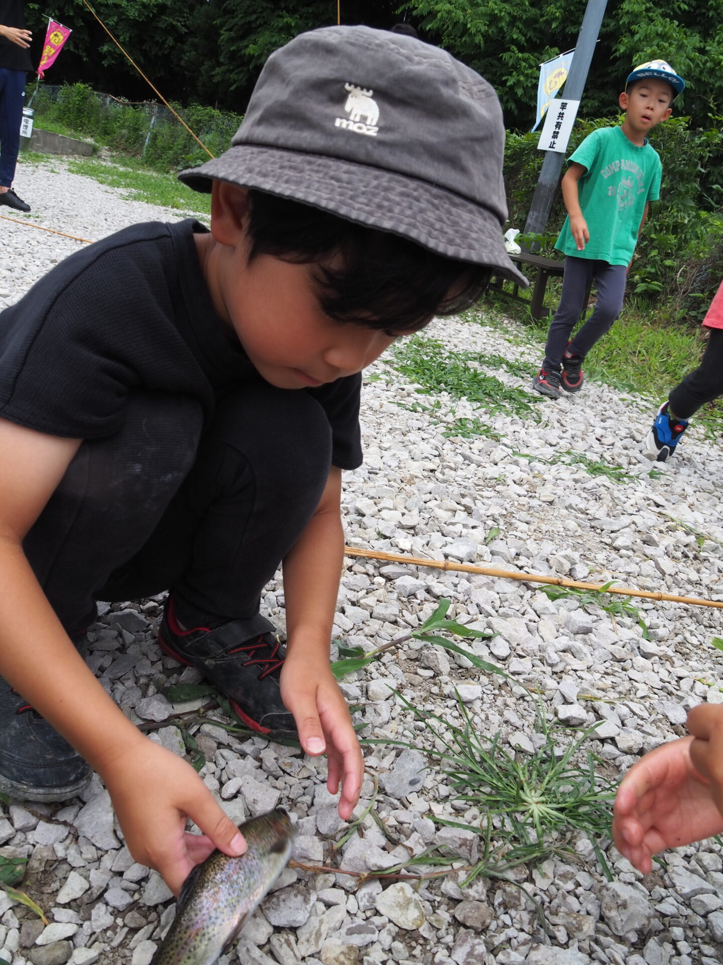 魚を釣れなかった子は何とかつかまえようと頑張り、