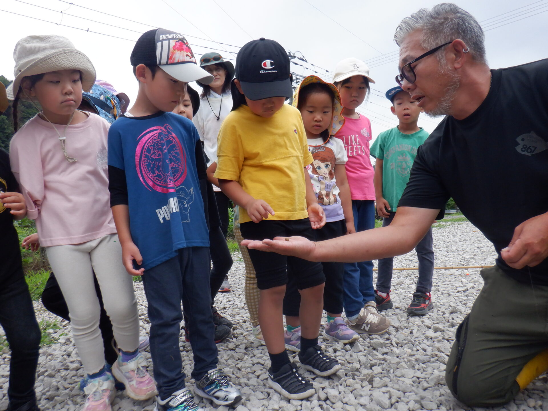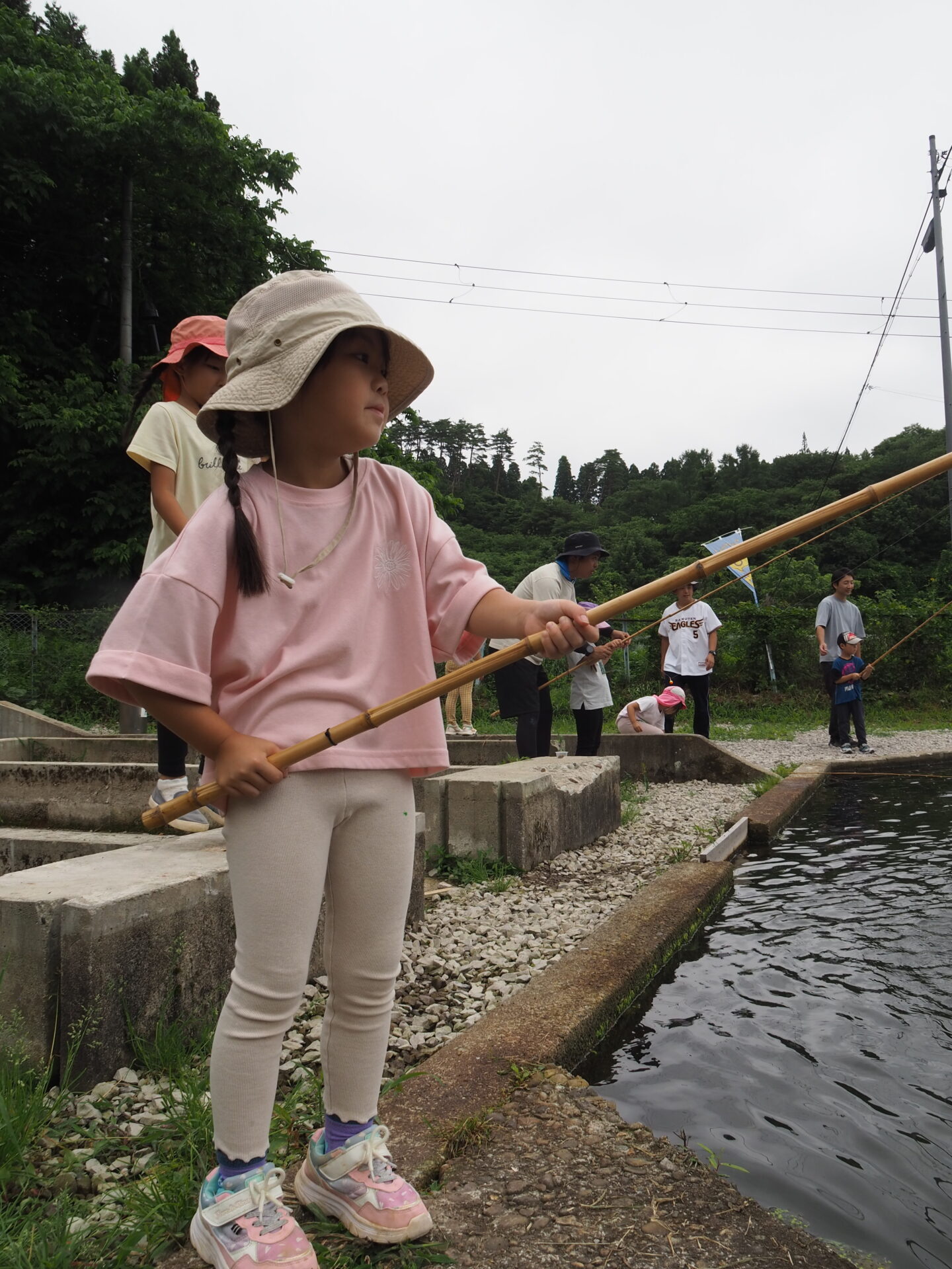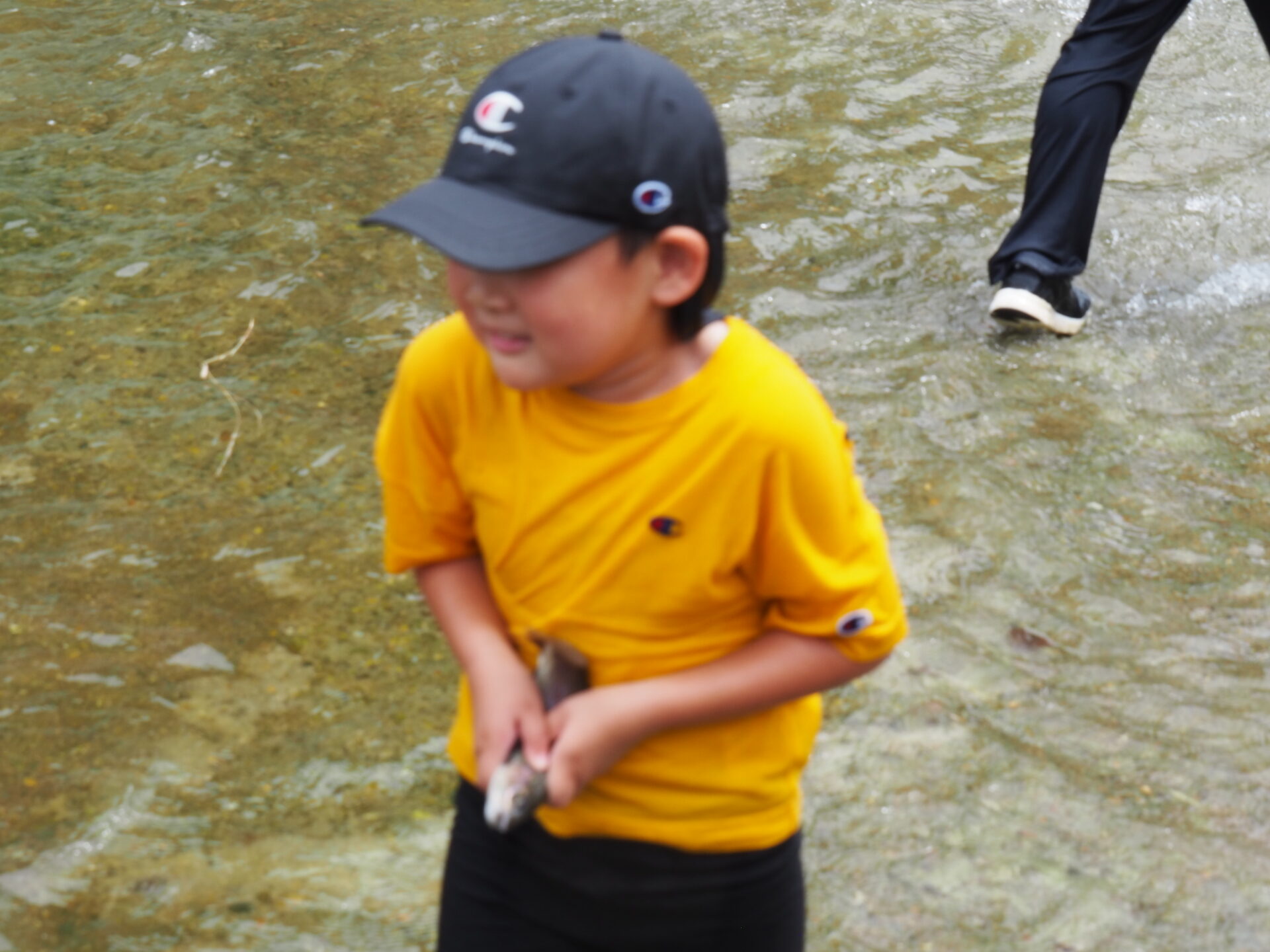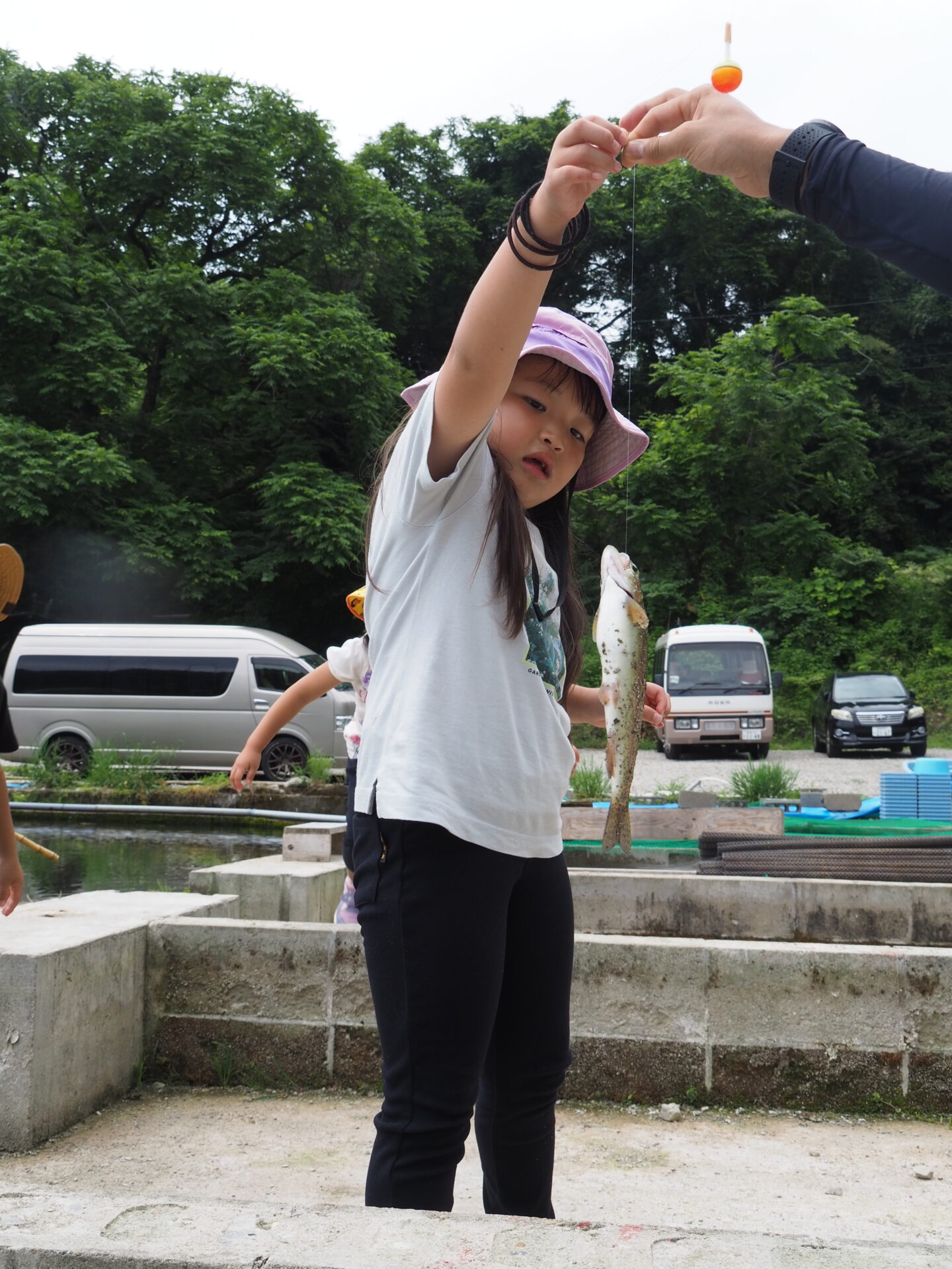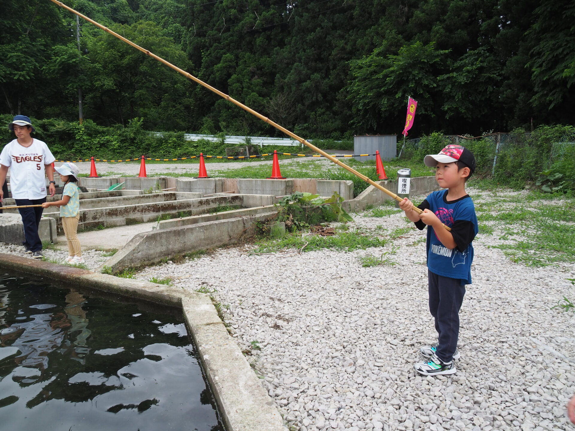 魚を釣れなかった子は何とかつかまえようと頑張り、