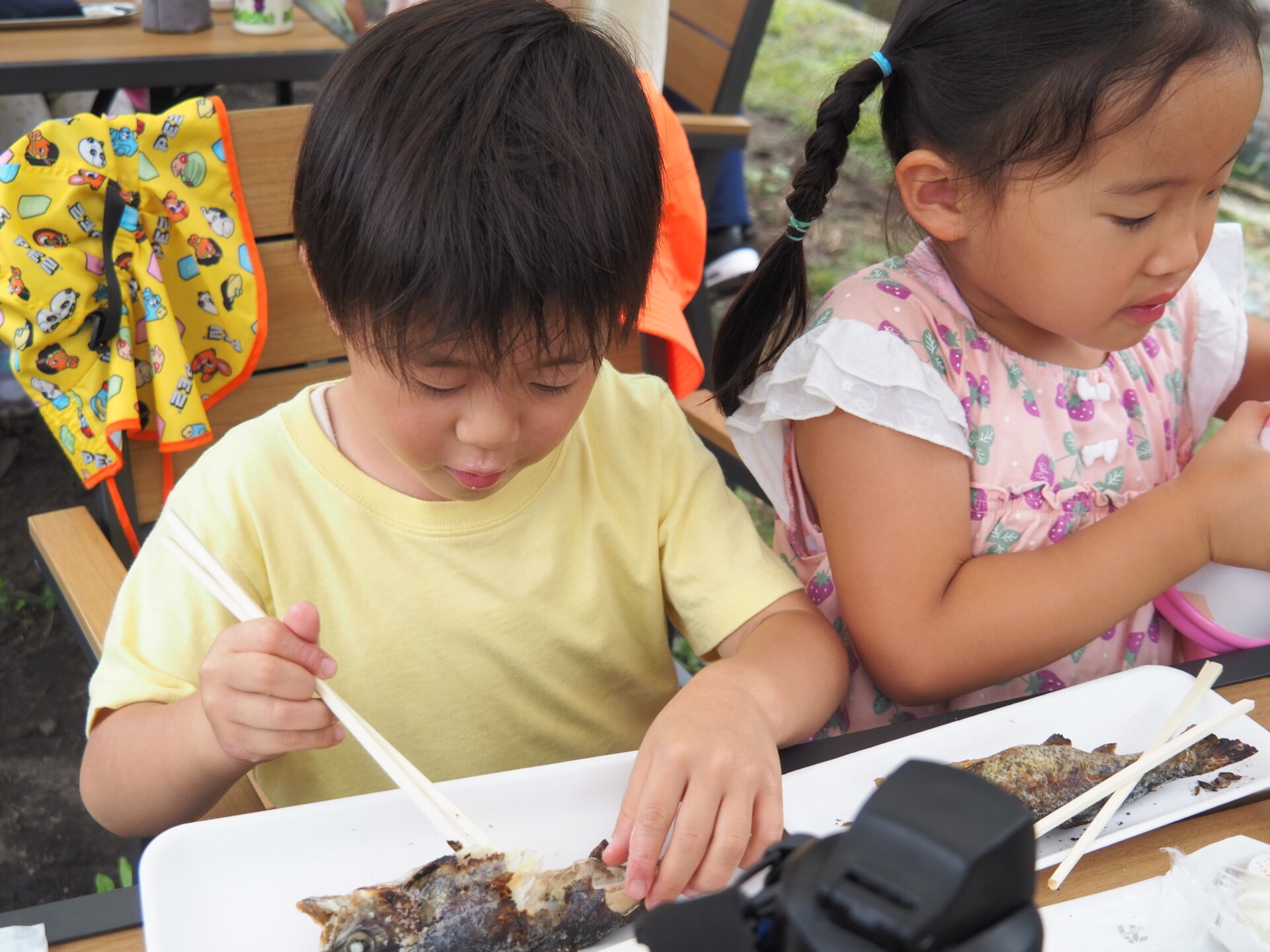 楽しかった釣り体験&つかみ取り体験を終えた子どもたちは、