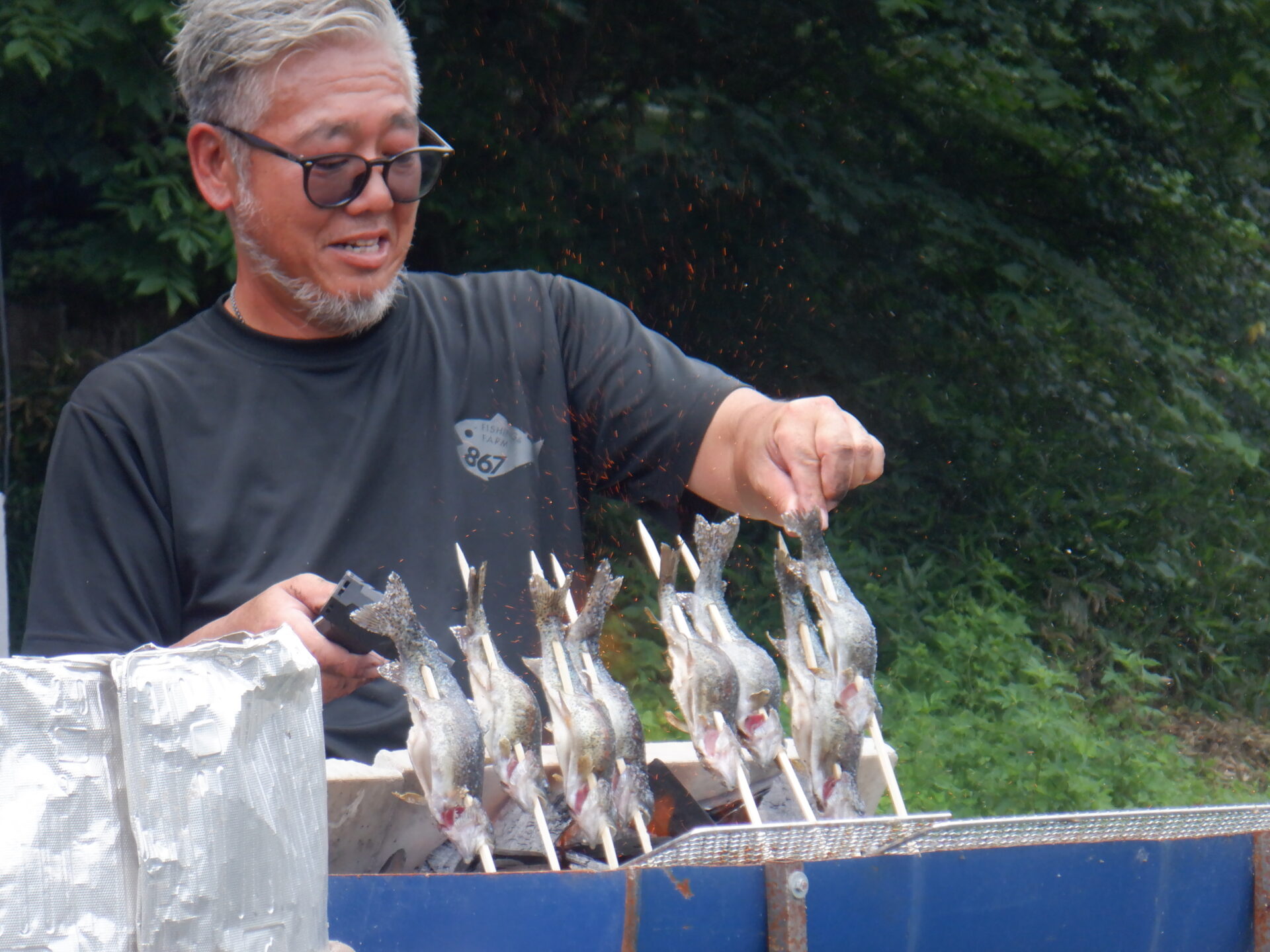 1日目の昼食はもちろん、自分たちで捕まえたニジマス!