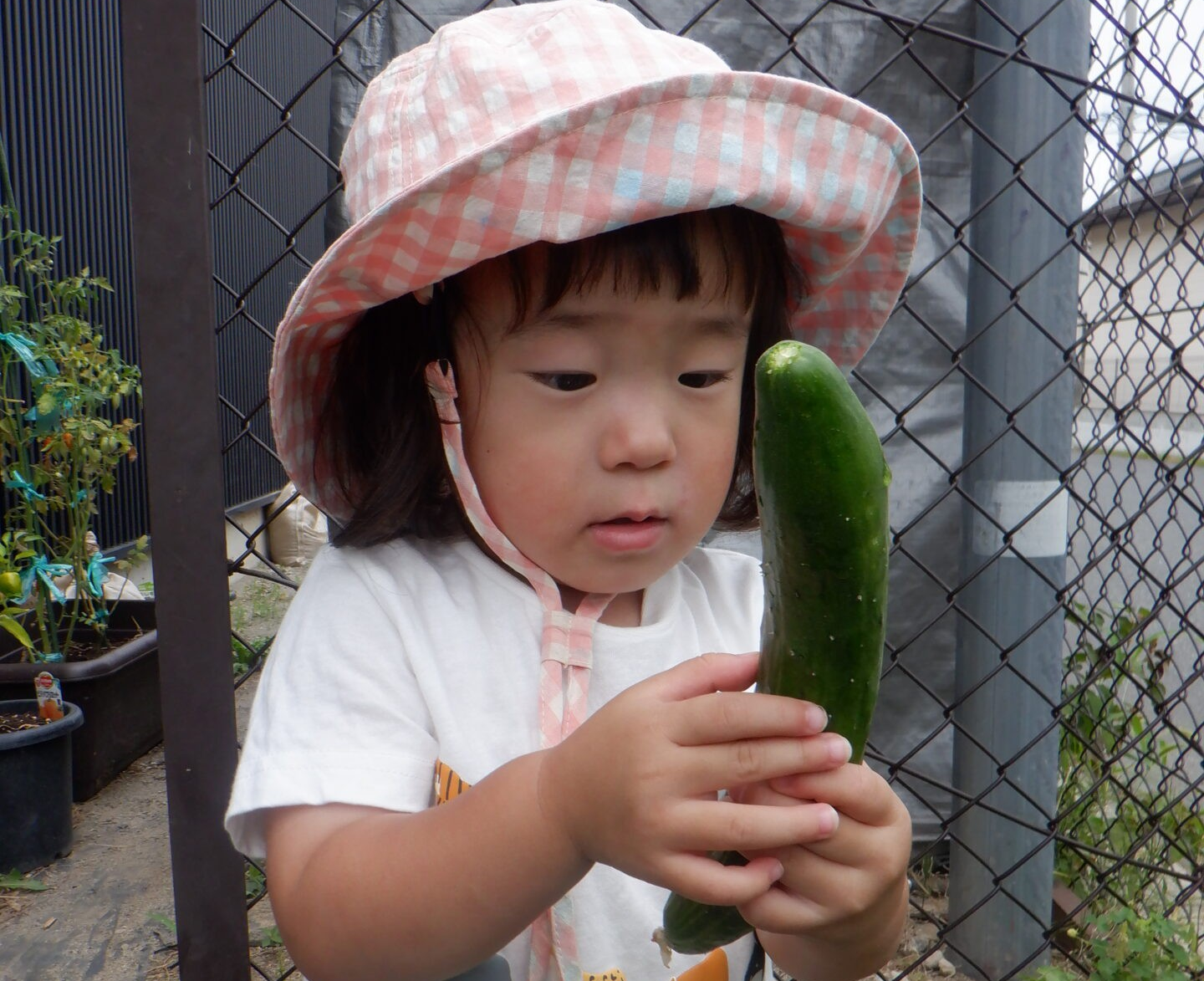 「収穫したきゅうり!」