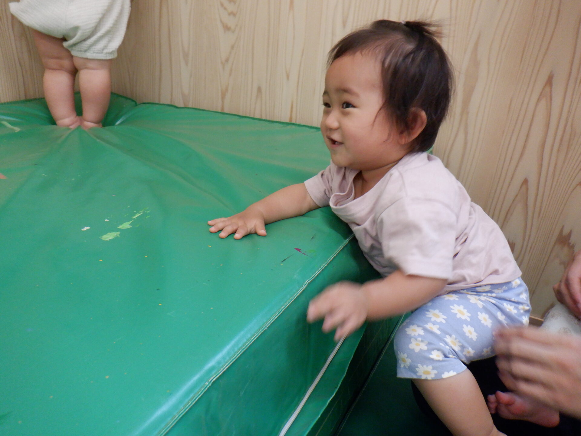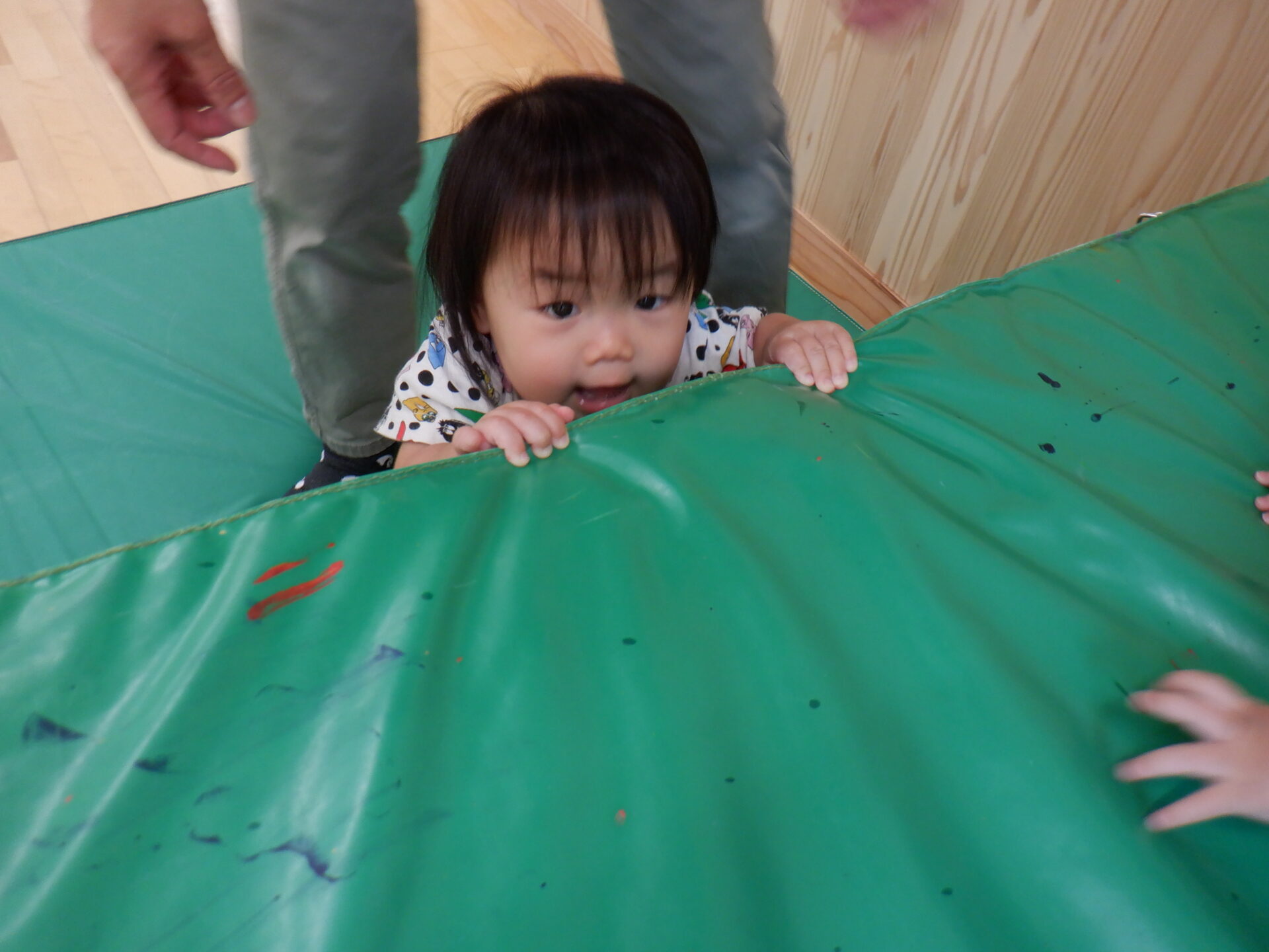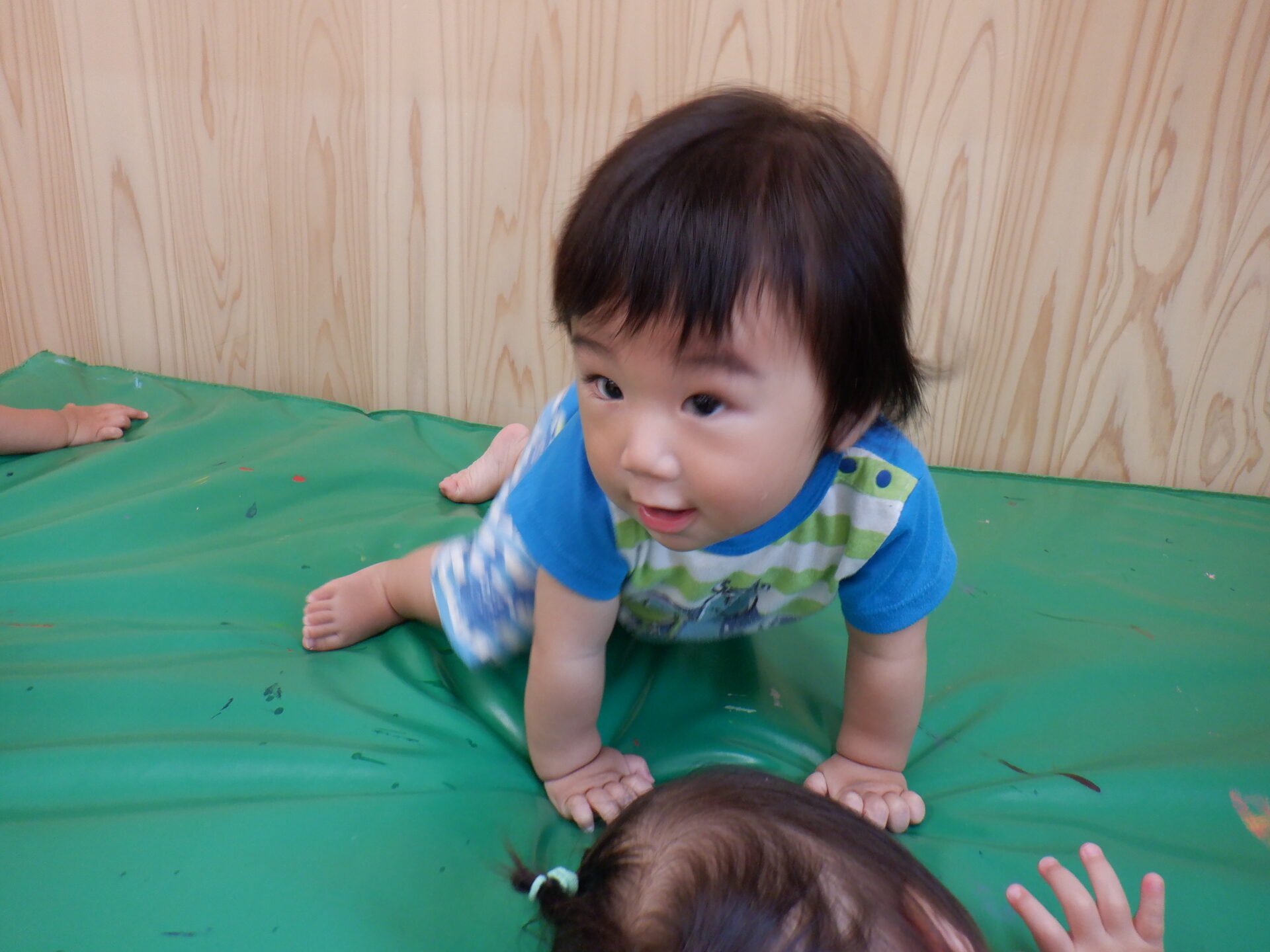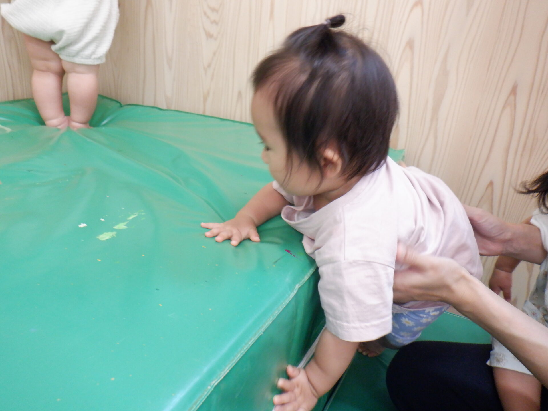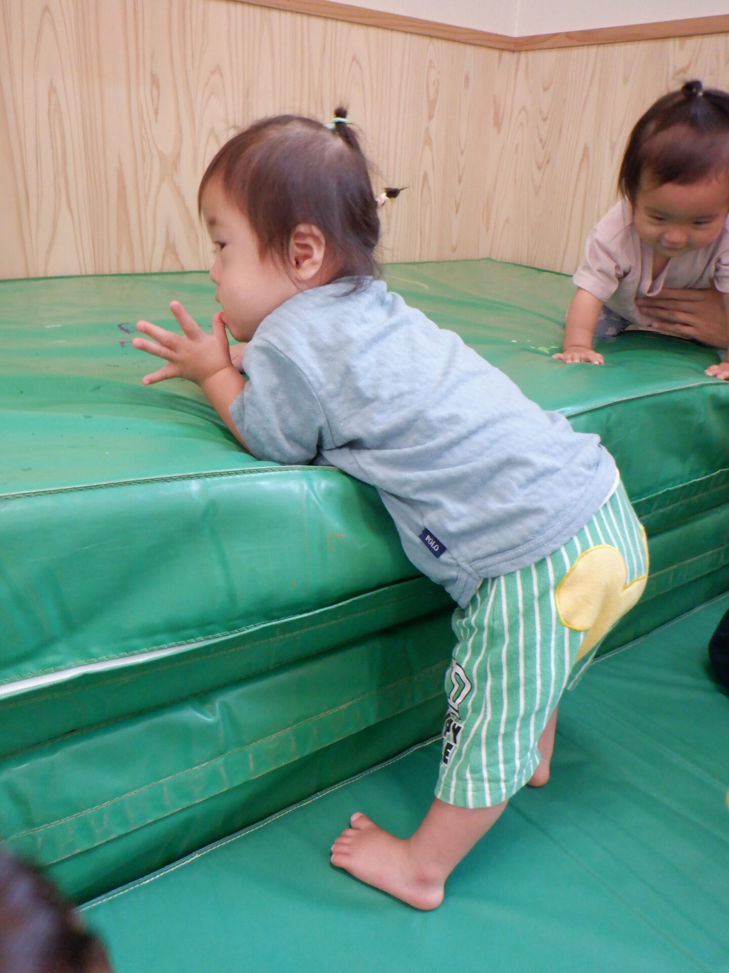 マットの上に登ってみたり、