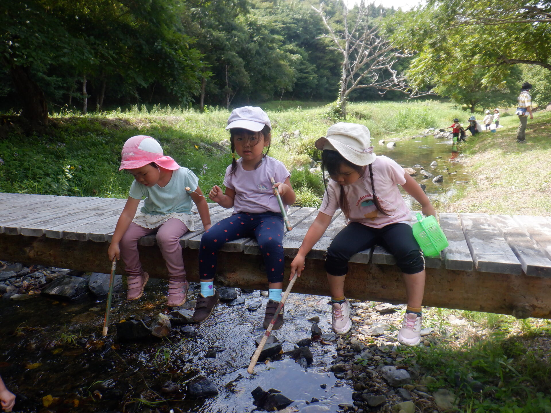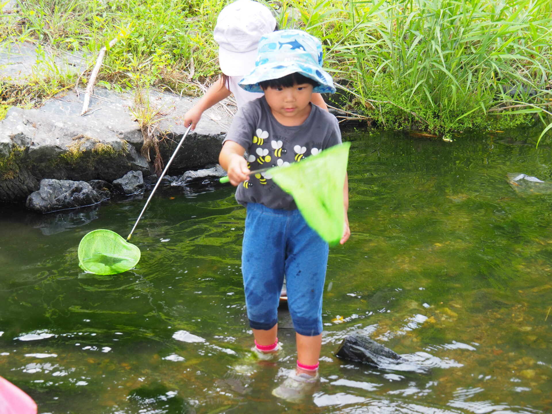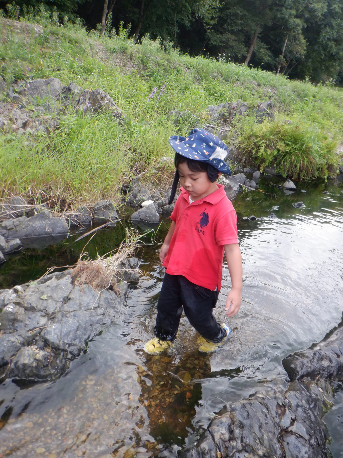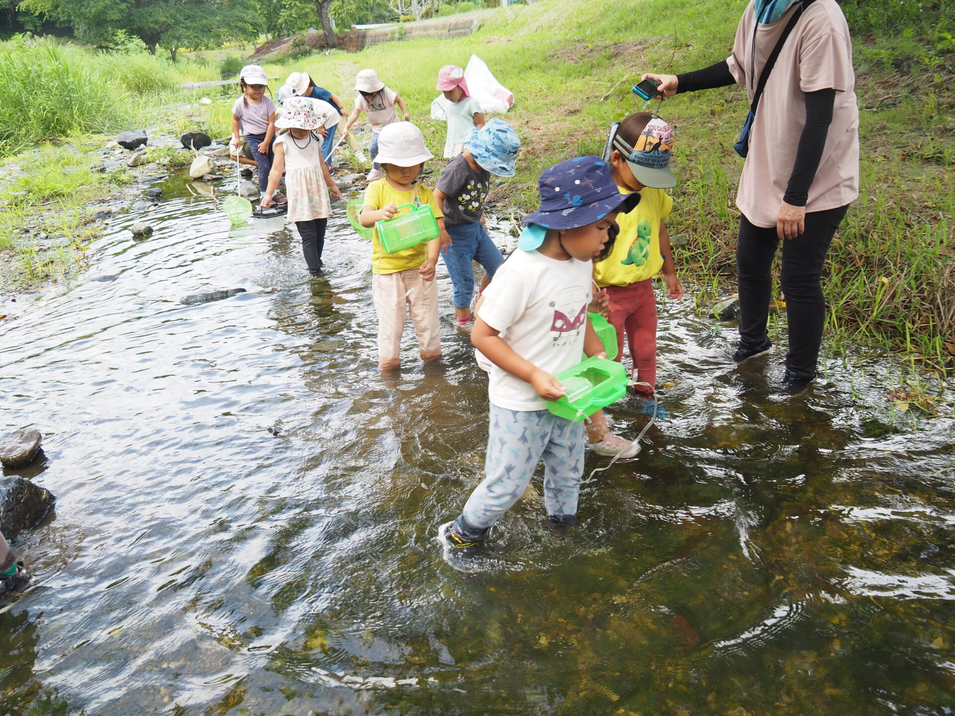 水遊びが苦手だった子達も普段の遊びで水にも慣れ、ザブザブとためらわず入っていました。