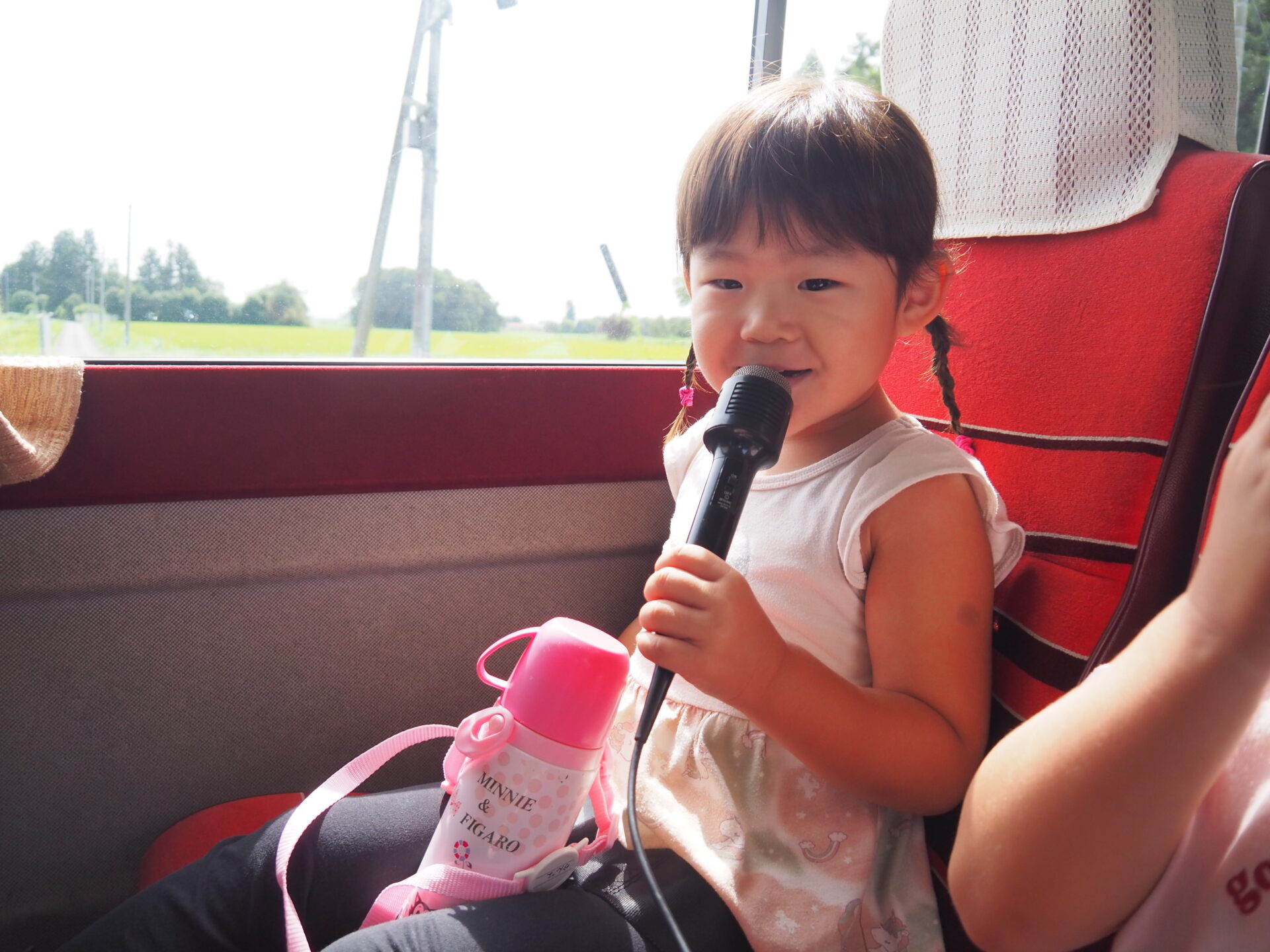 道中はカラオケで盛り上がり、熱唱する子も。