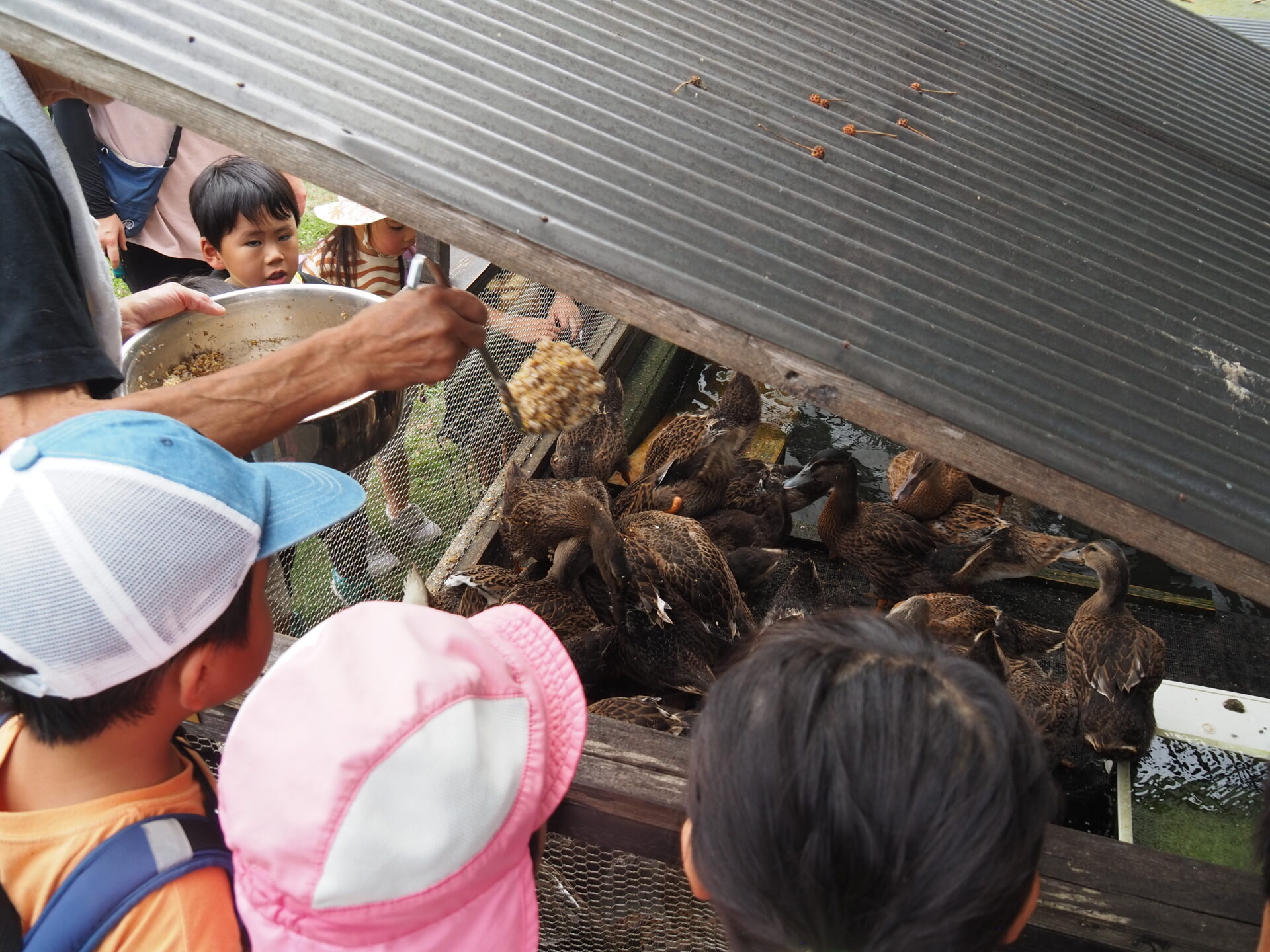 かじか村で育てている鶏、うずら、合鴨等…普段出会えない鳥たちも観察させてもらいました。
