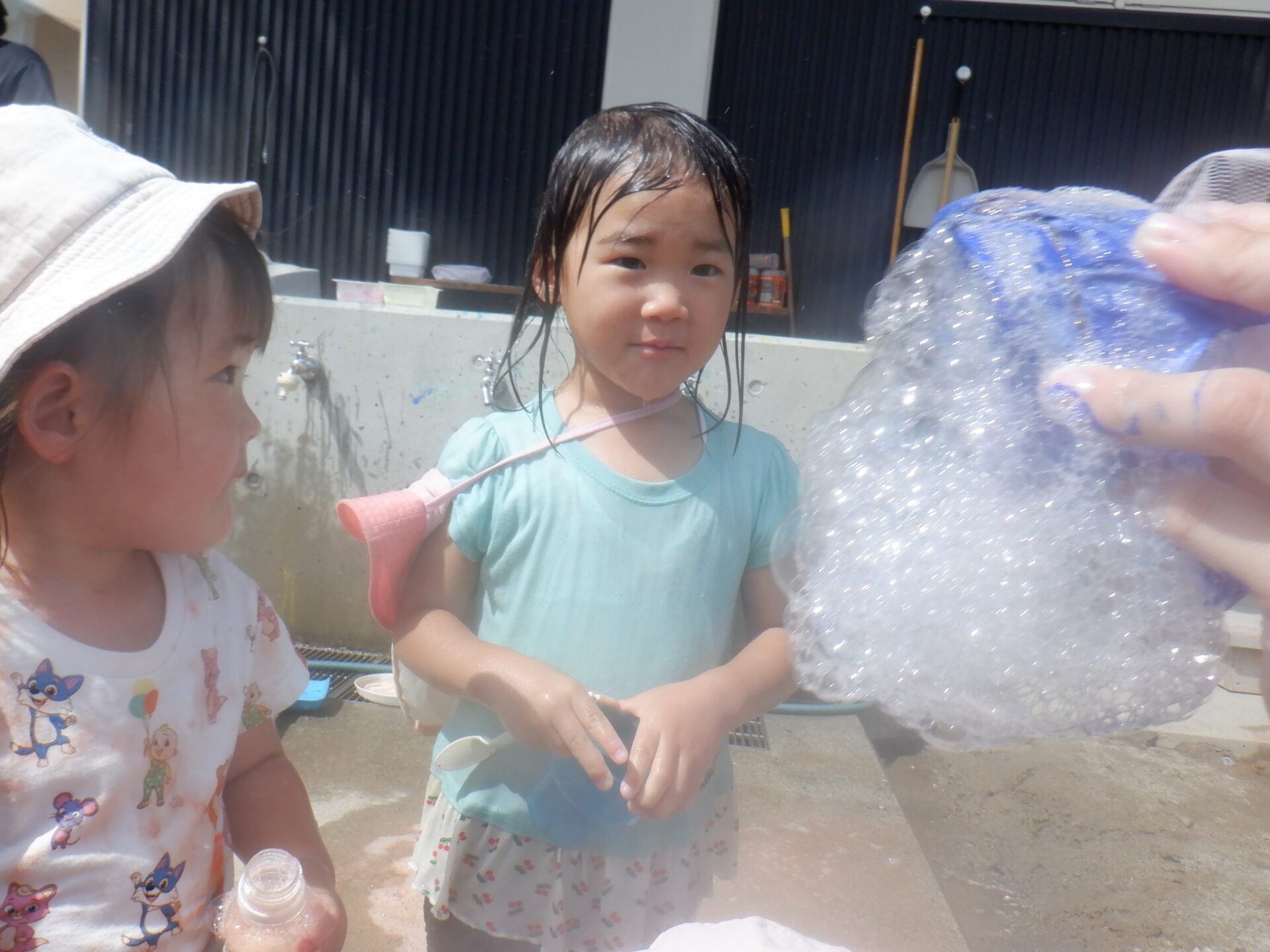 生まれた泡を、手ですくってみたり…。