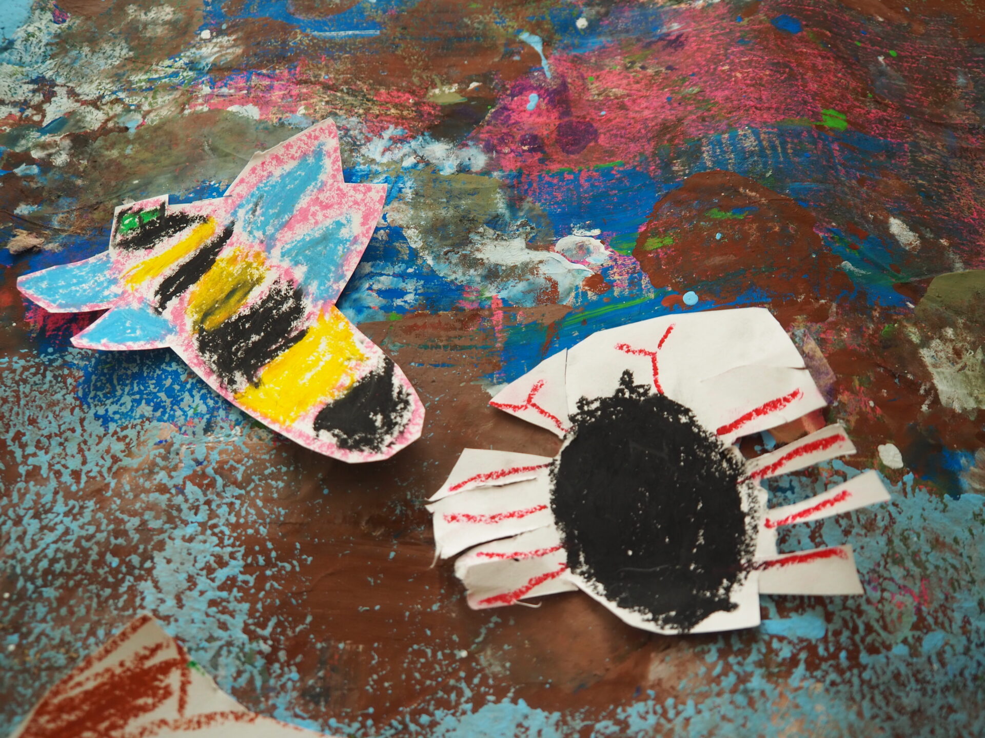 捕まえたもの、観察したものを皆で再現しました。
