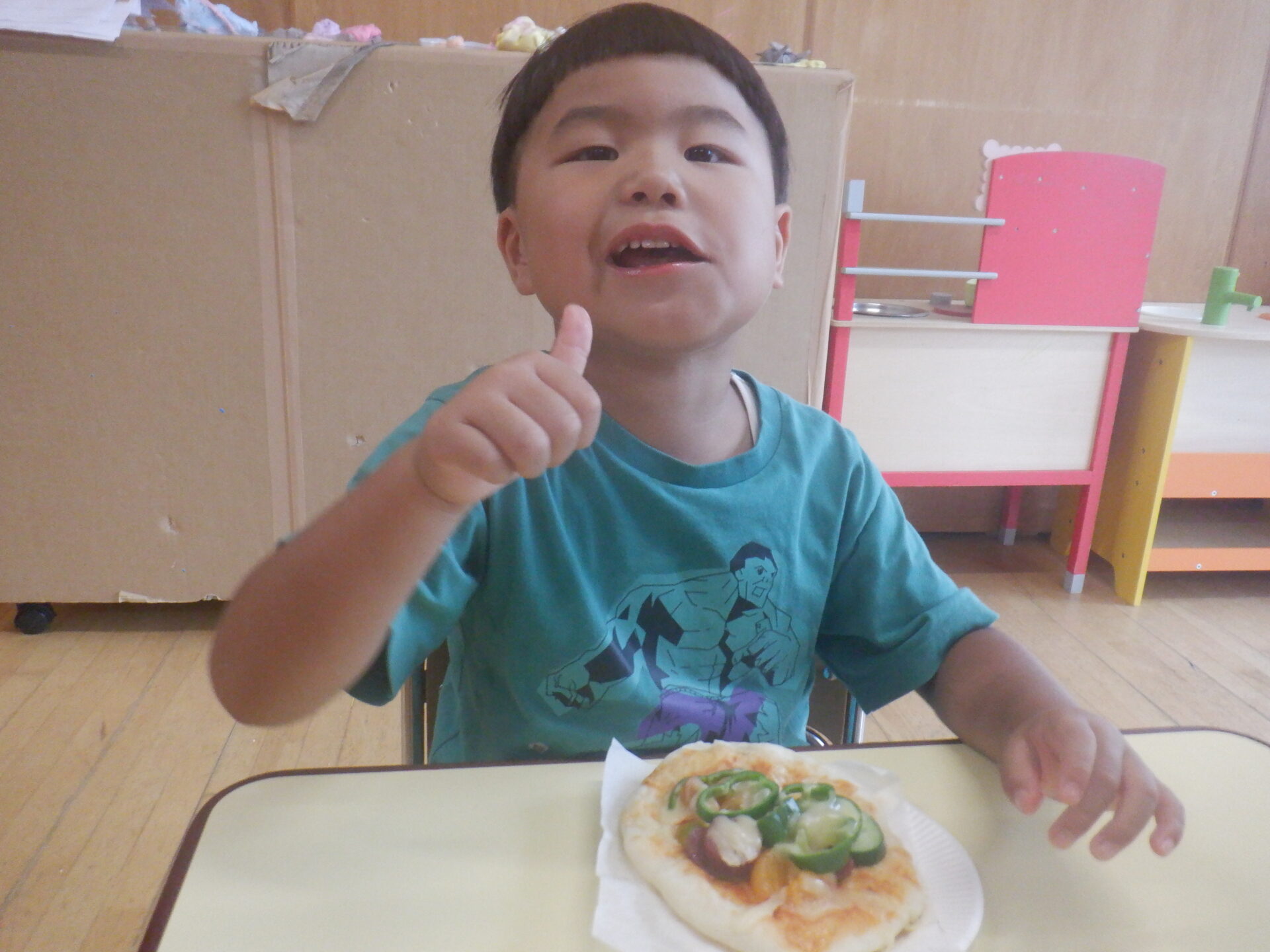 畑で収穫したピーマン・トマト・きゅうりを乗せた