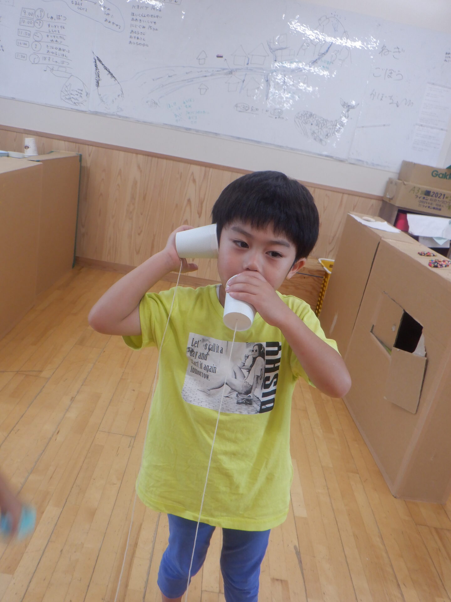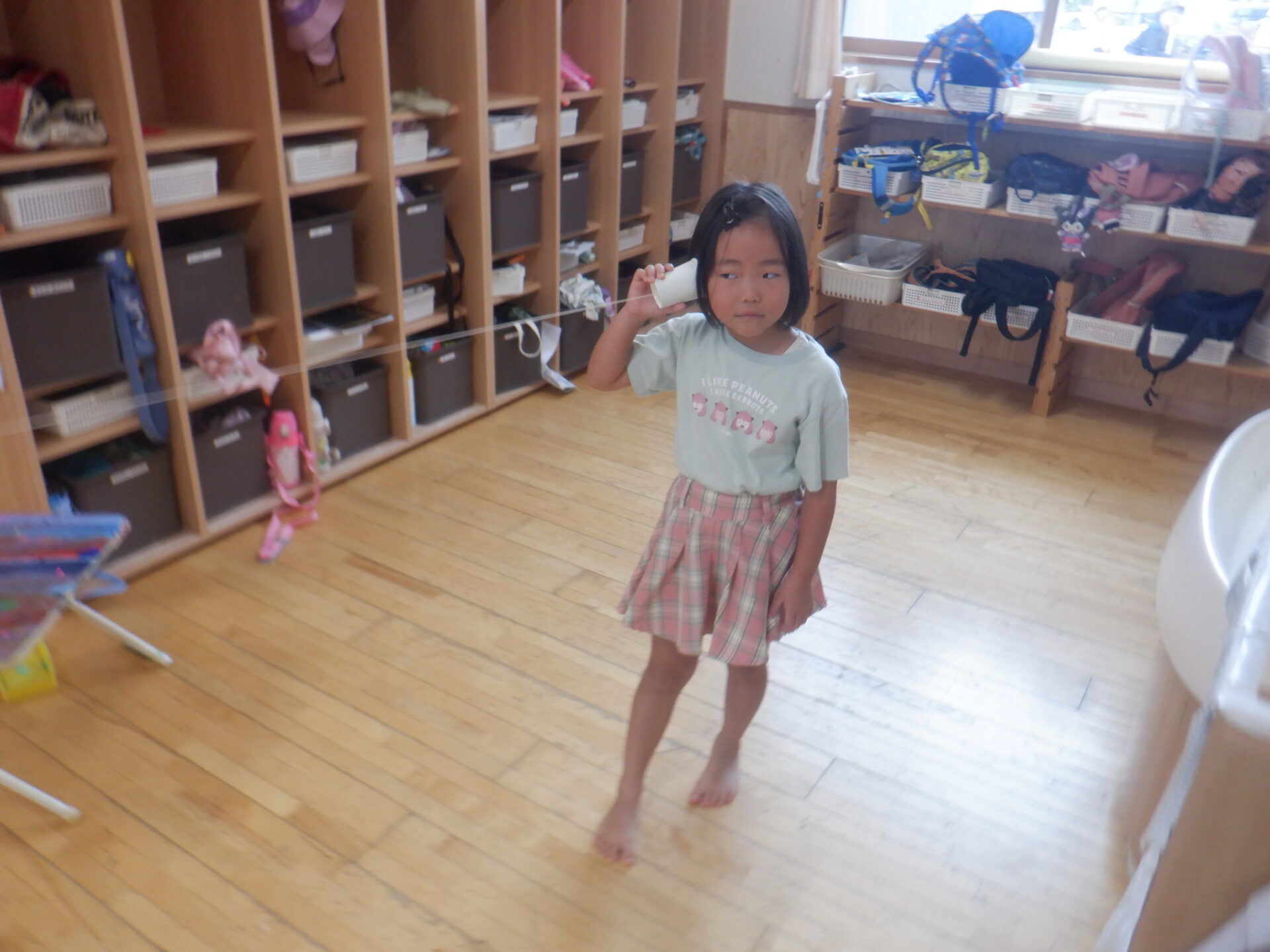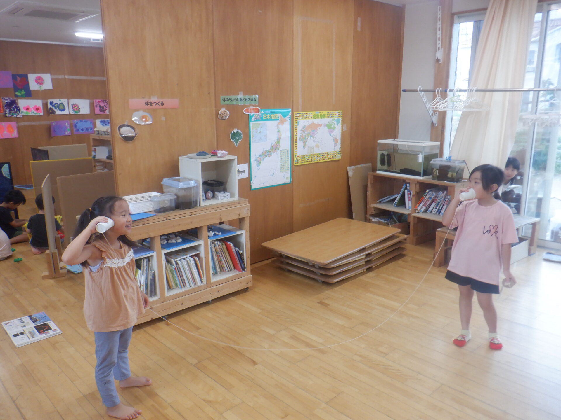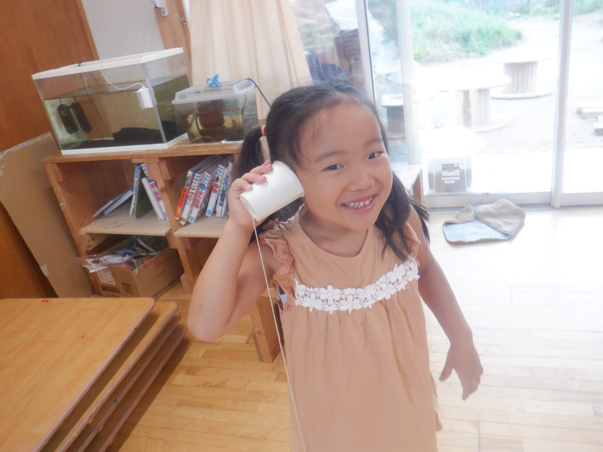 2025.09.30 バオバブ組(5歳児) ブログ レトロな遊びも健在さ! レトロな遊び…..それは糸電話! お友達と糸電話で秘密のおはなし。 「きこえますか?」 「きこえるよ~」 相手の声が聞こえると嬉しくて笑顔になっちゃいます。 そんなレトロな遊びも引き継いでいきたいものです。 一覧へ戻る