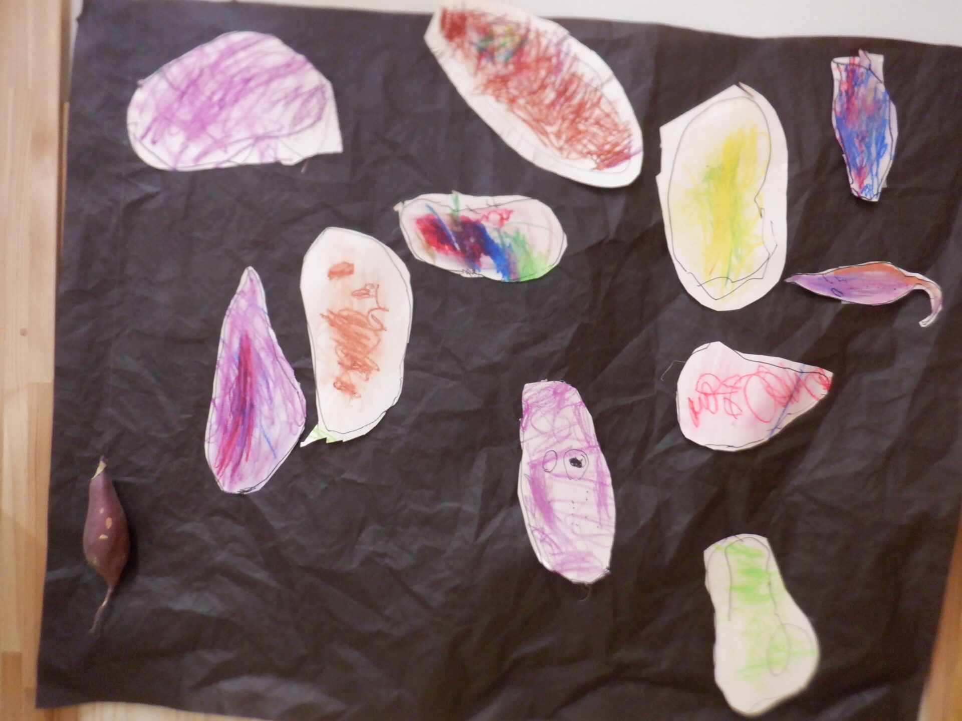 2025.10.08 未満児 ゆめ組(2歳児) ブログ どうやって食べようかなー ゆめ組畑で採れたおおきなさつまいもをどうやって食べたいか考えているうちに、部屋にカラフルなさつま芋畑が出来上がってしまいました。 一覧へ戻る