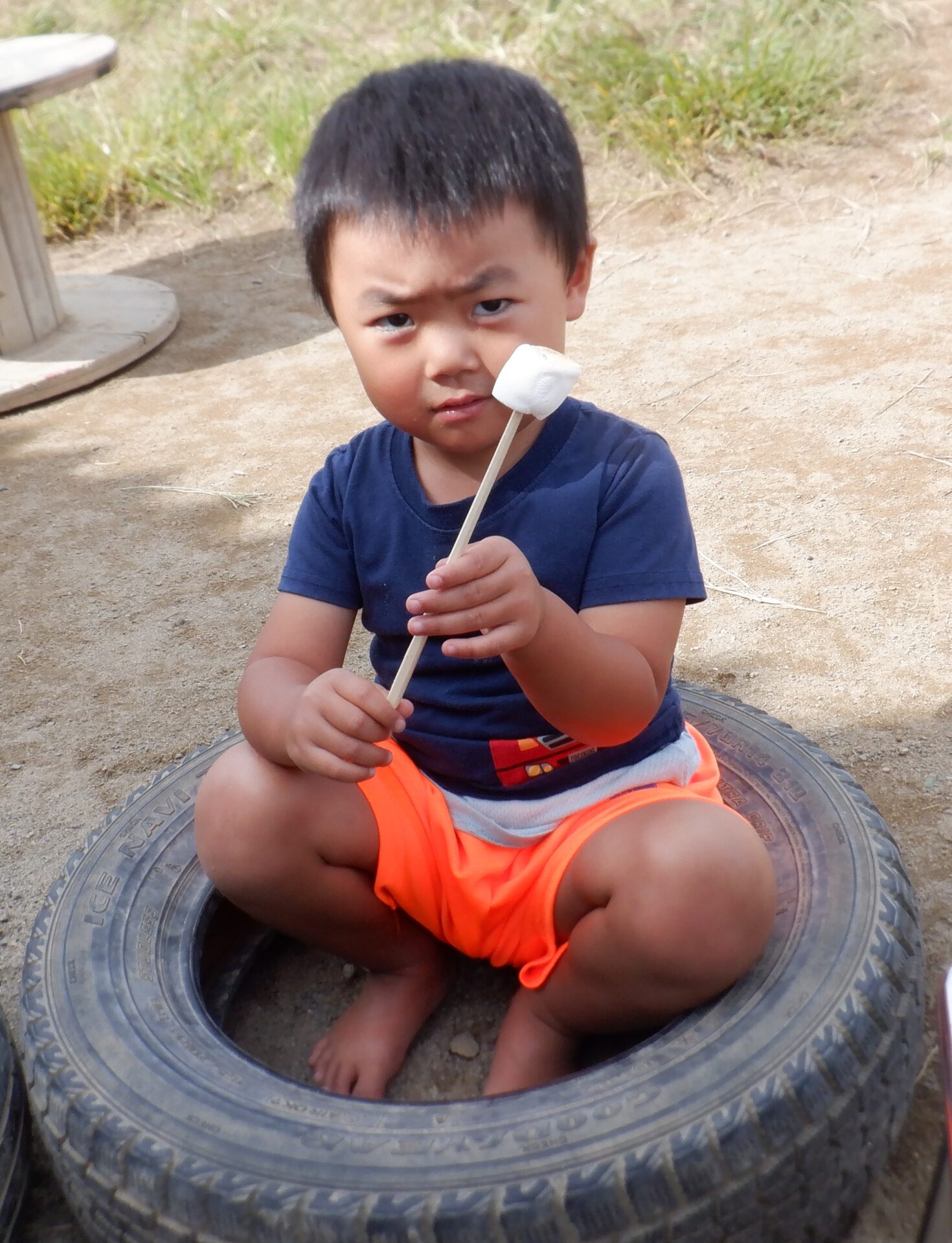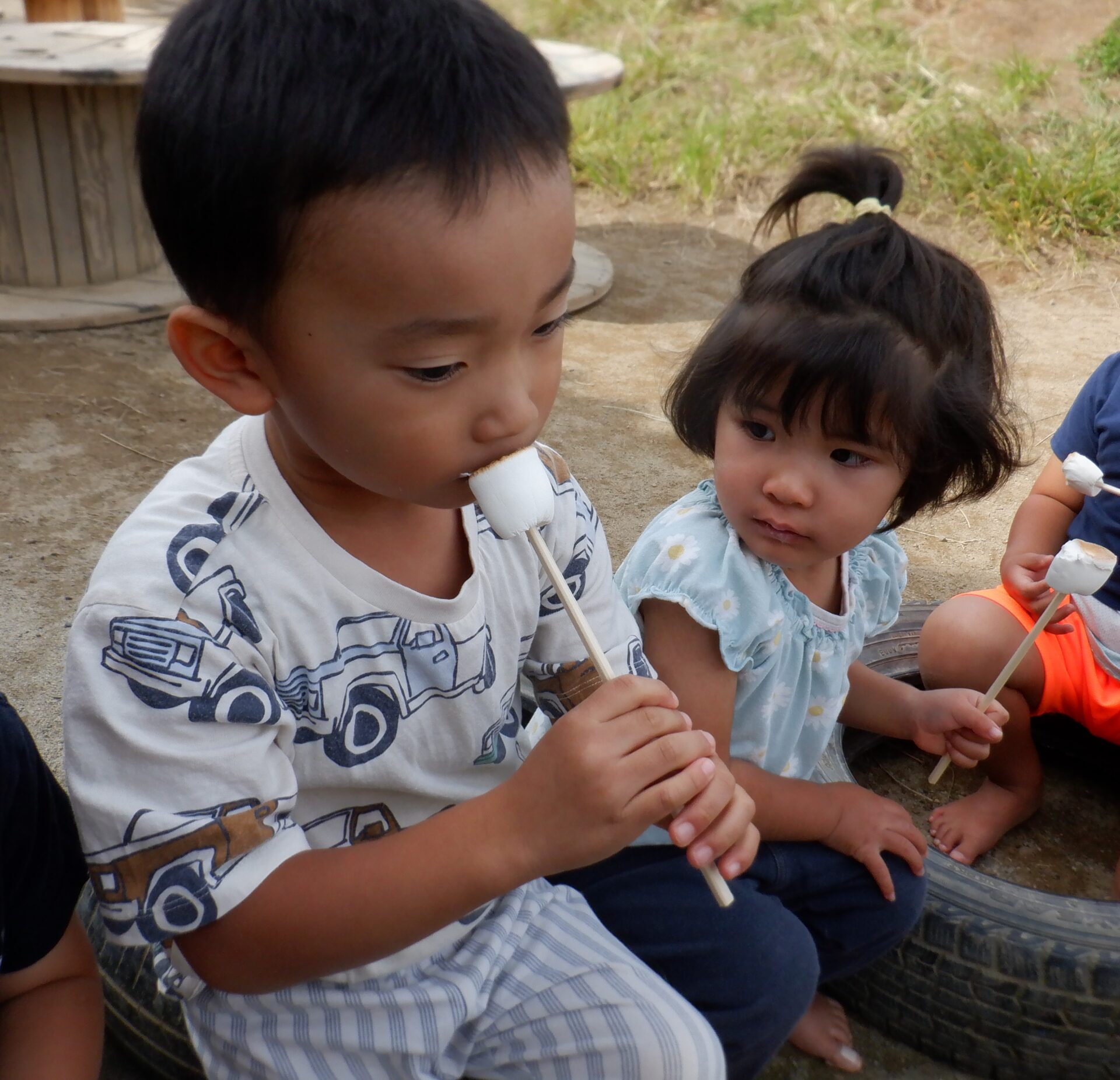 おまけ・・・大きい園庭で食べた焼きマシュマロも美味しかったね!!