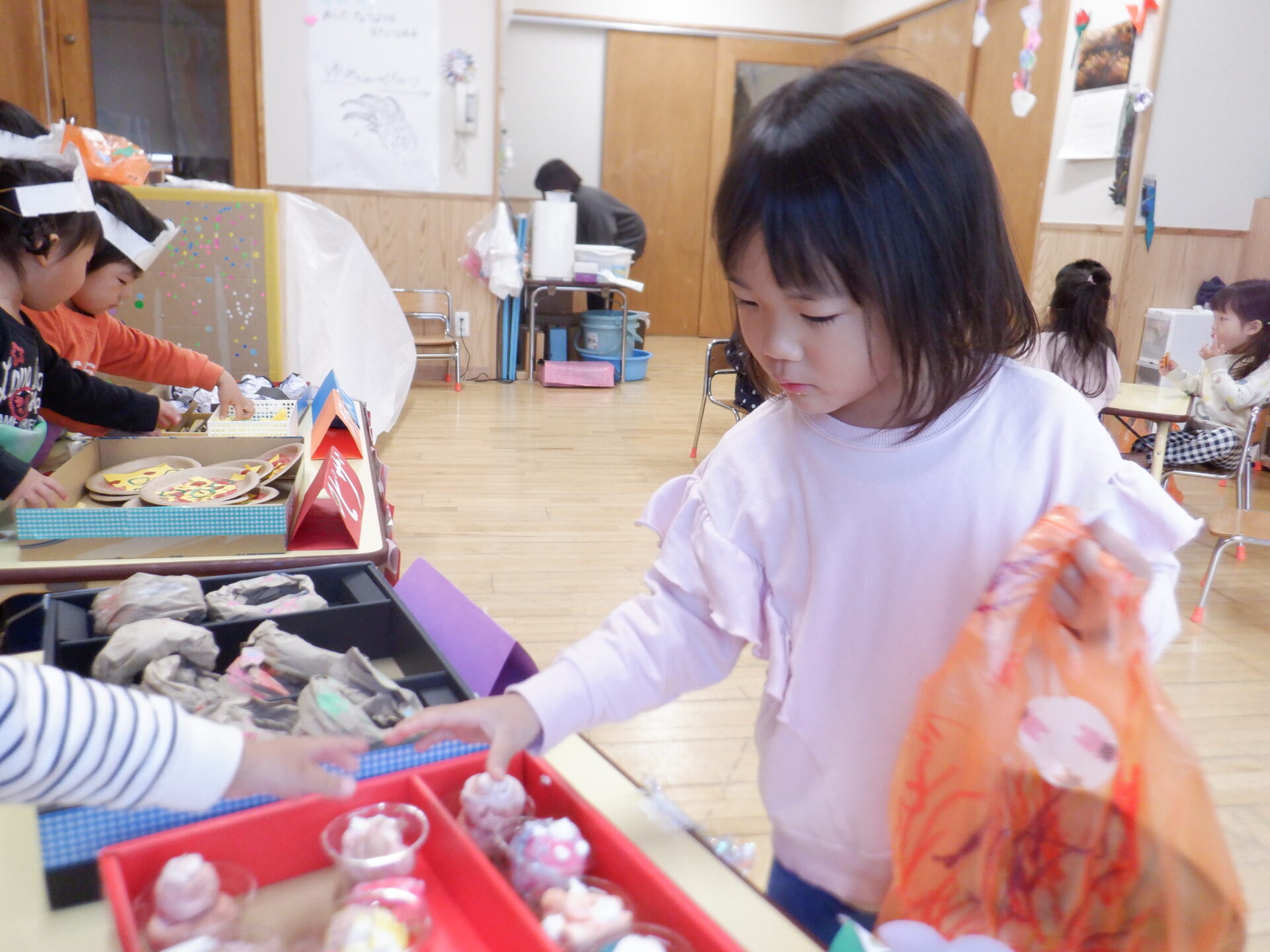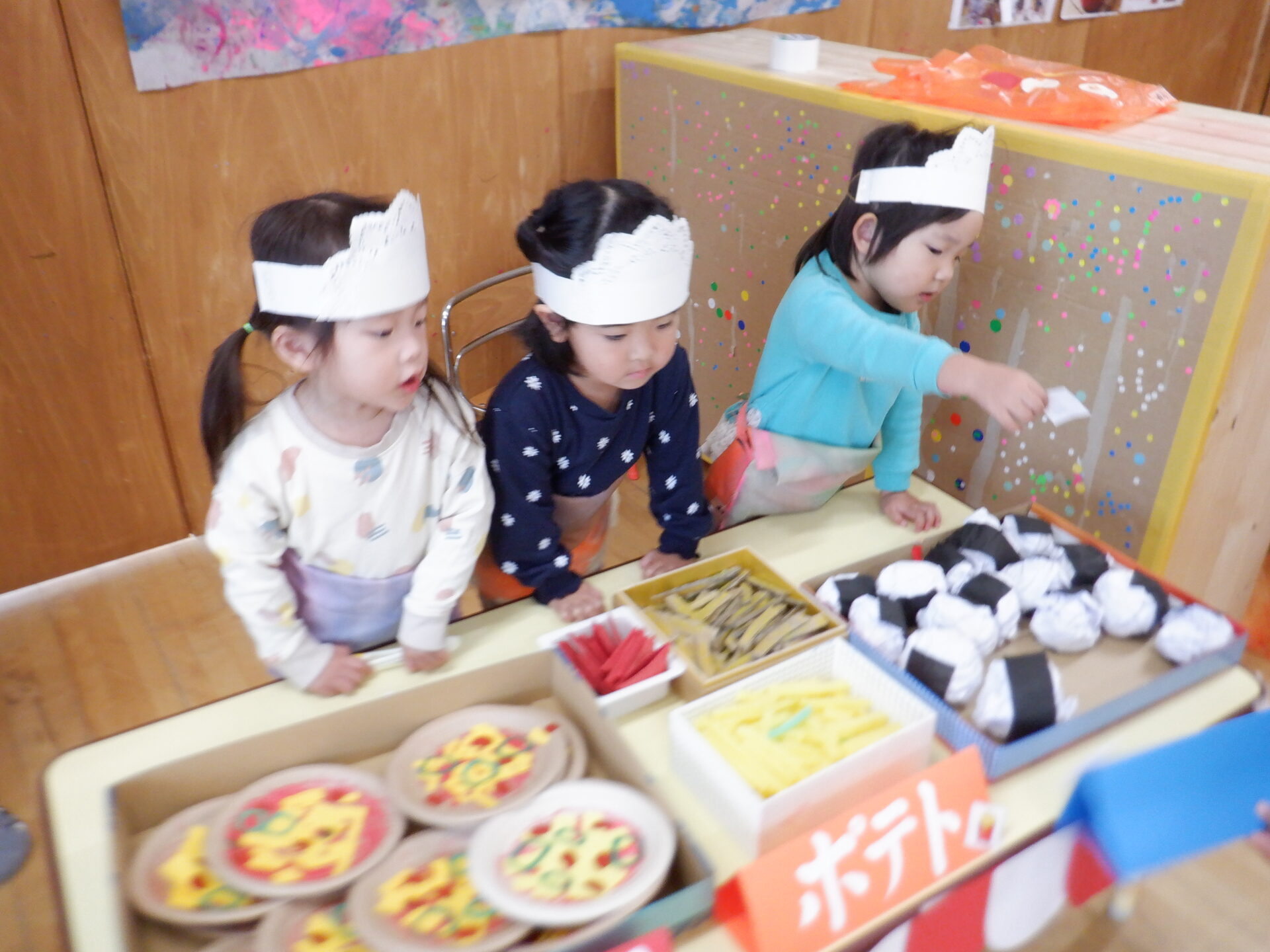 つい先日コープにクッキングの買い物に行ってきたので、みんなでお店屋さんをしました。