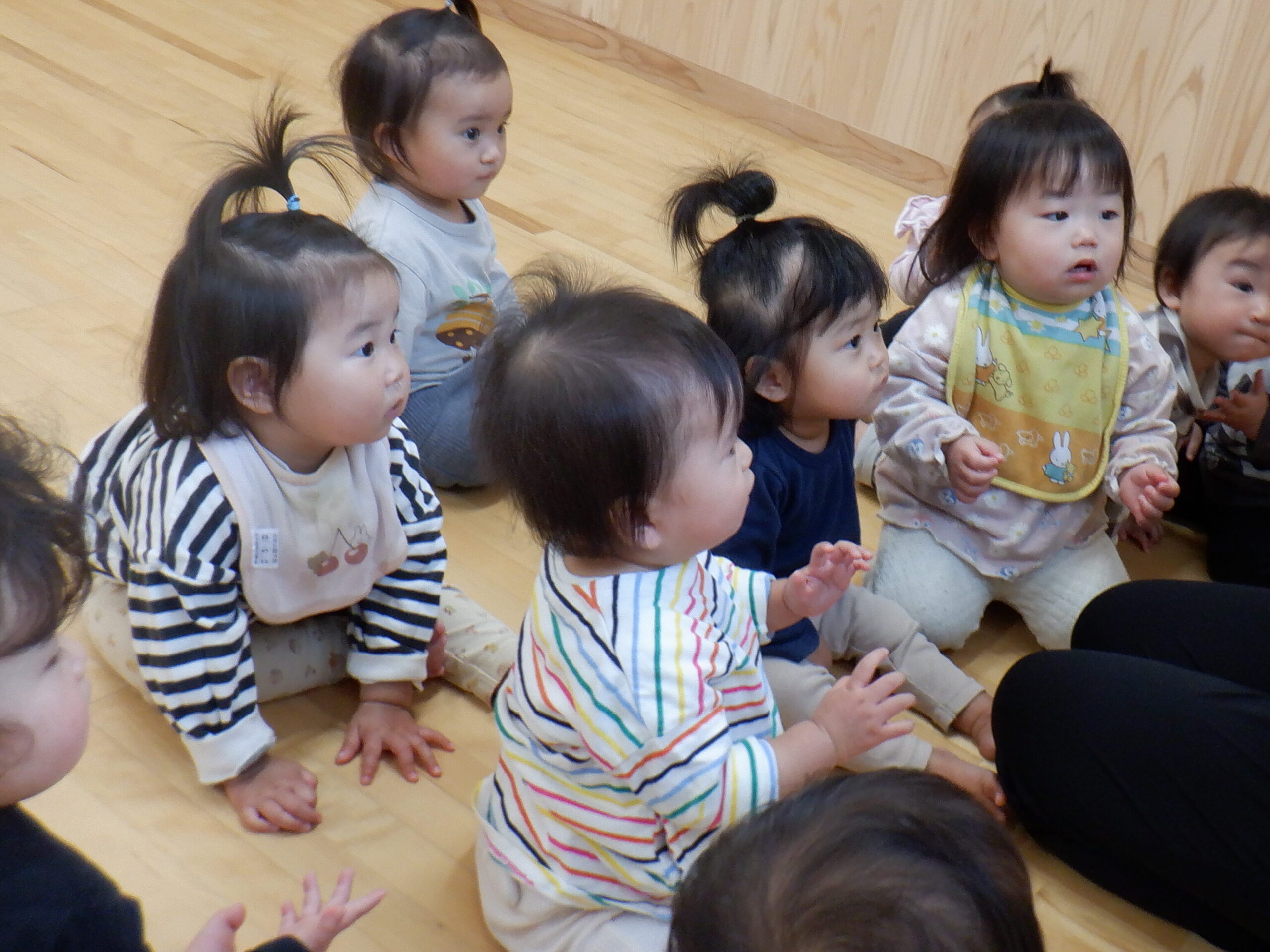 保育者の言葉にキラキラと目を輝かせる子ども達。
