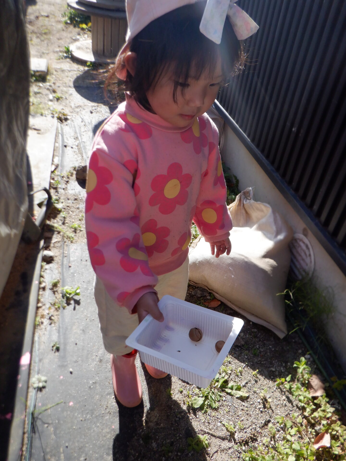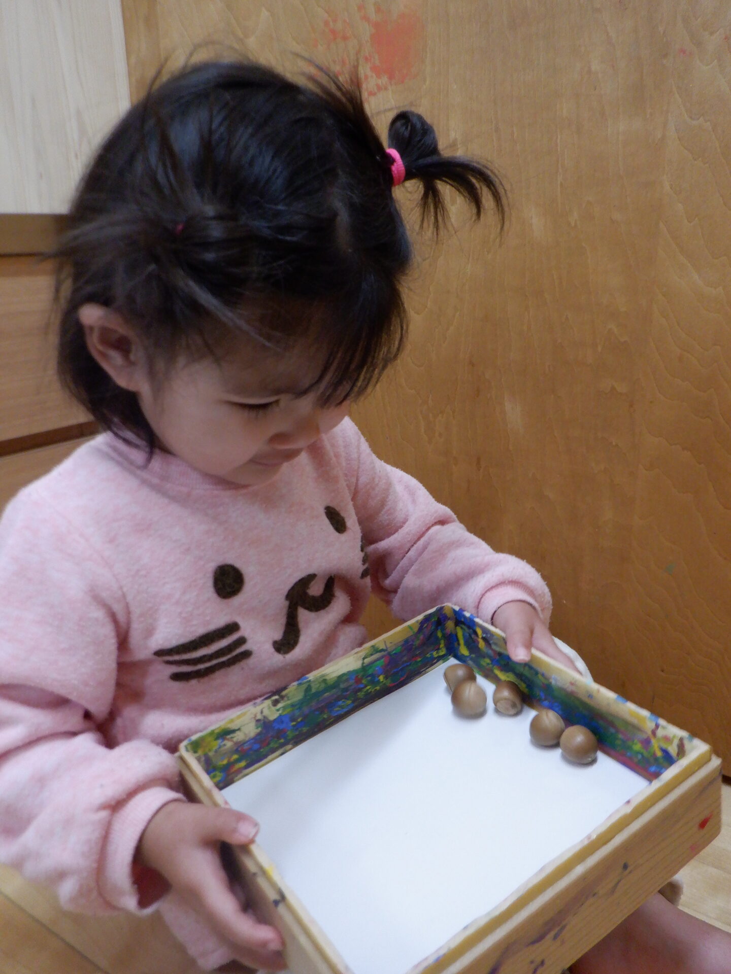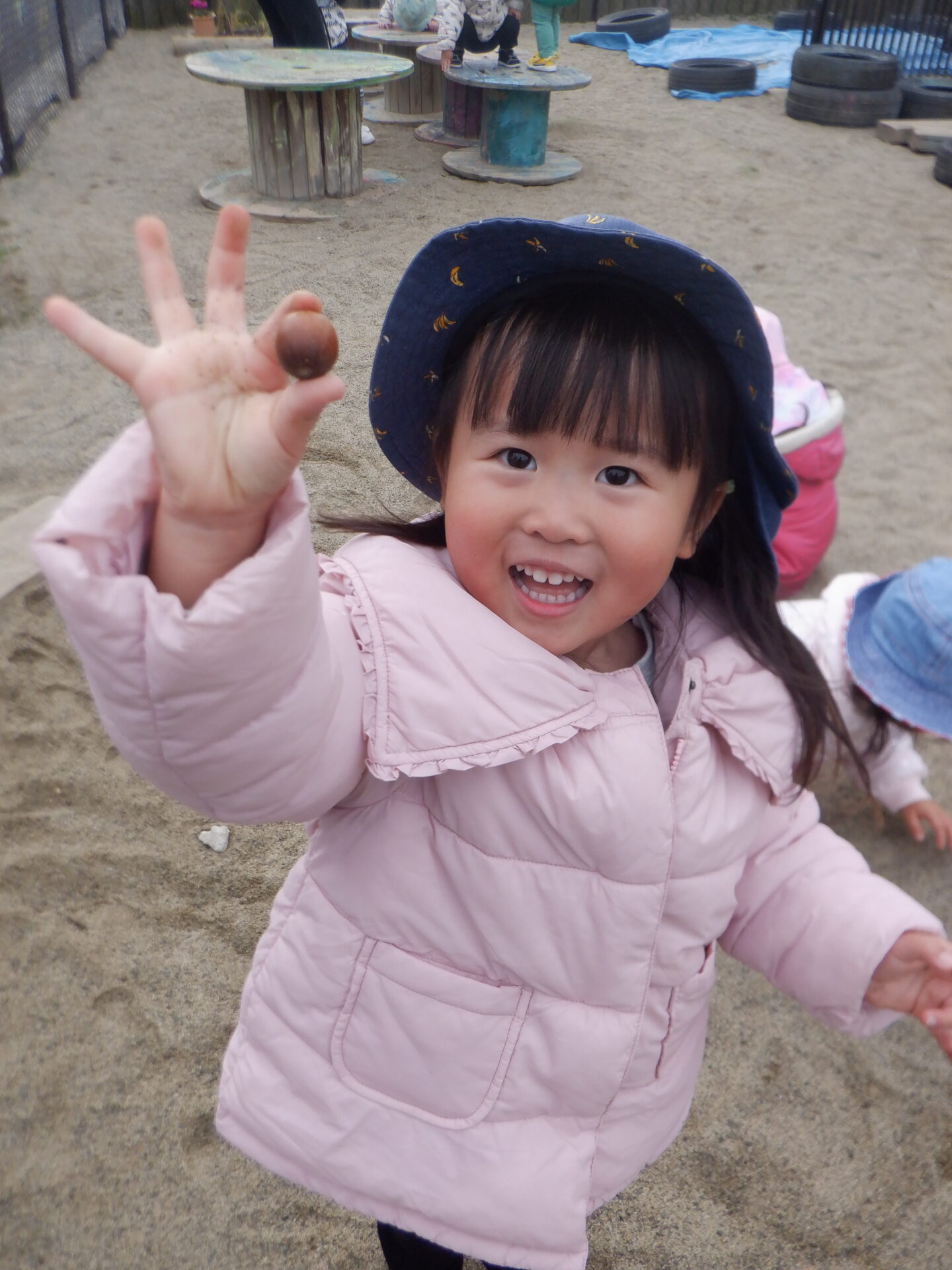 見つけた宝(どんぐり)で、さっそく遊んじゃいました!