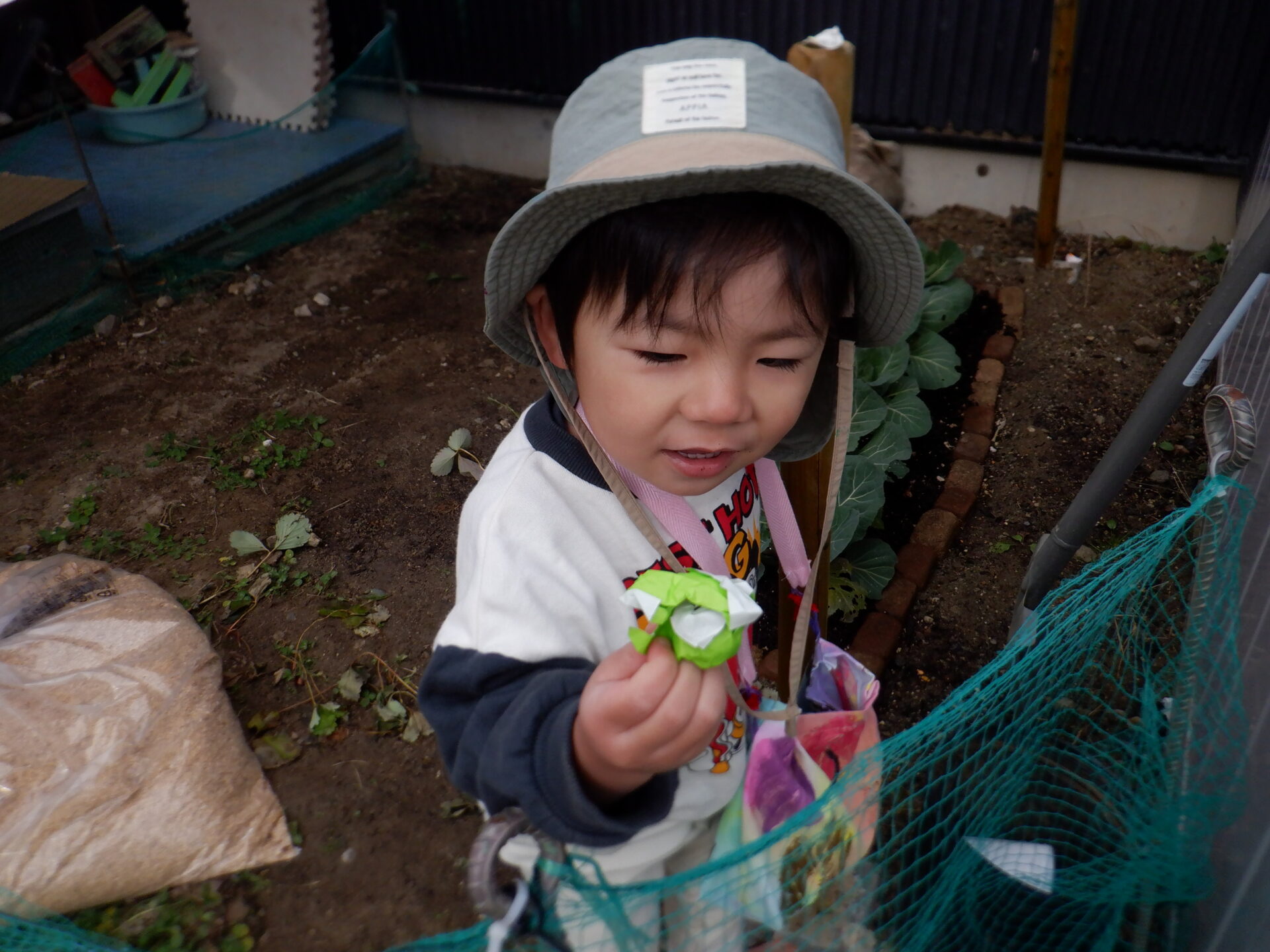次の日も見つけた宝を折り紙で包んで宝探し第二弾もスタート。自分達で作った素敵なバッグに見つけた宝をどんどん入れていました。
