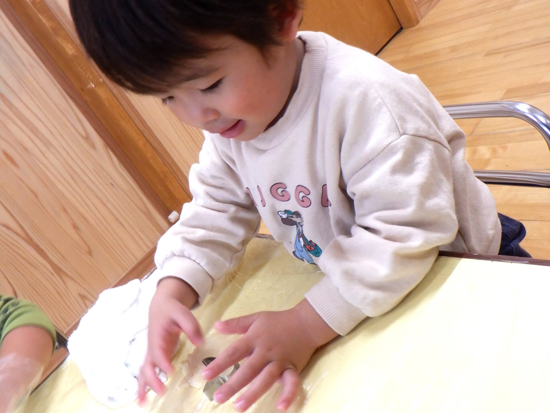 パン粉や小麦粉粘土をたくさんこねこねしていたしずく組さん。