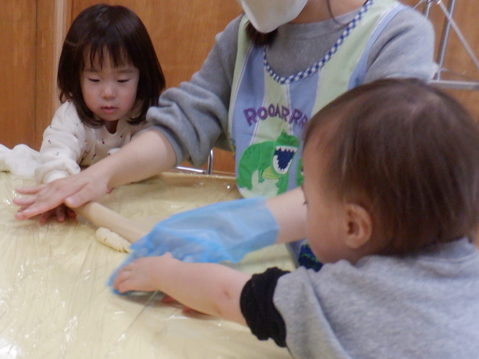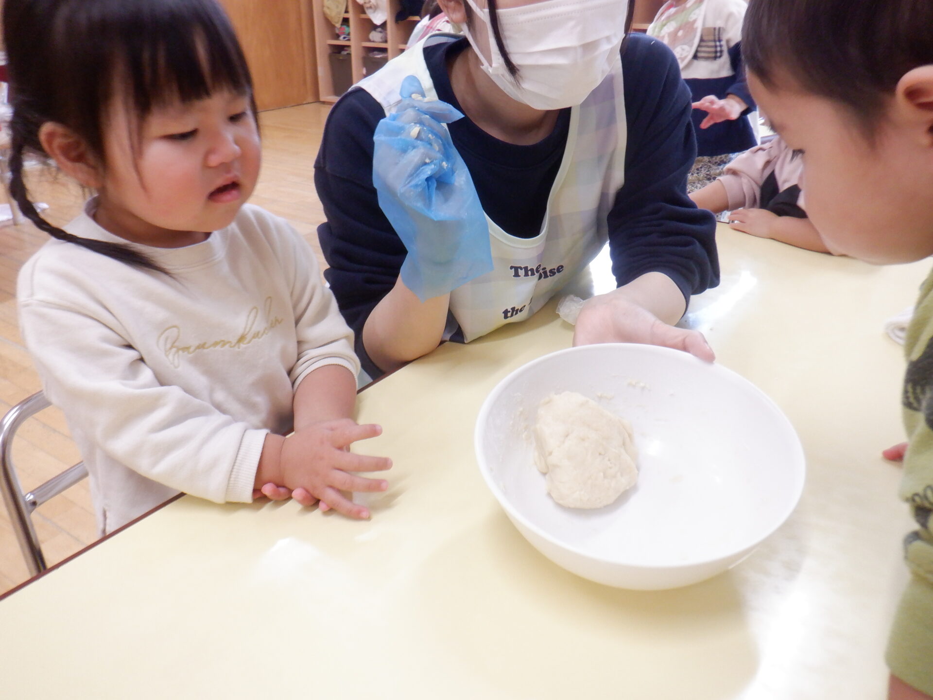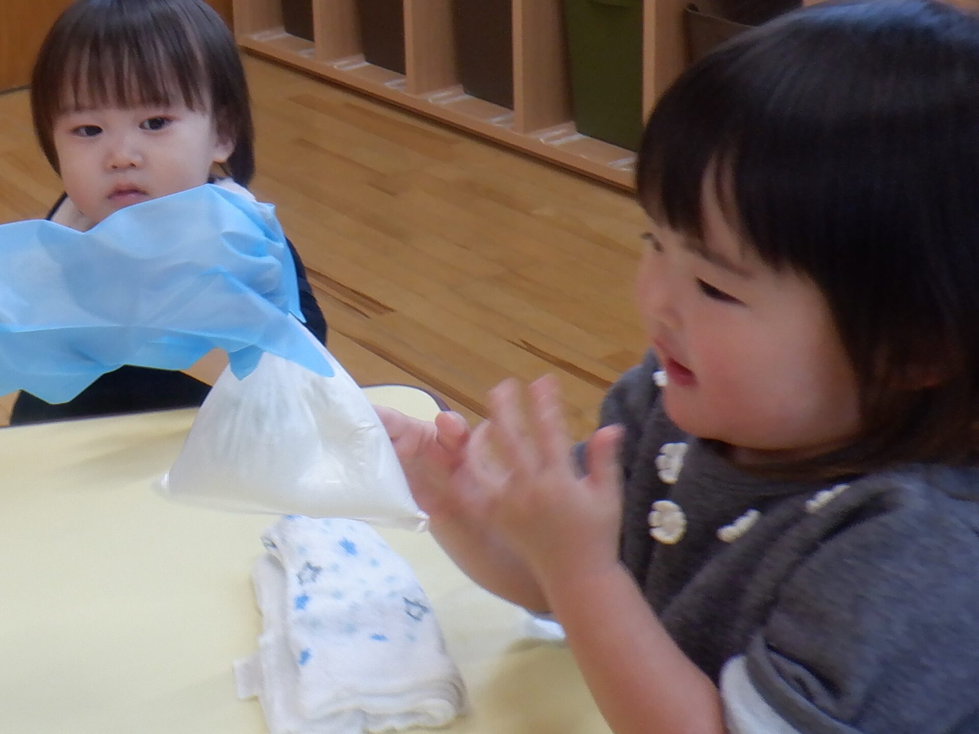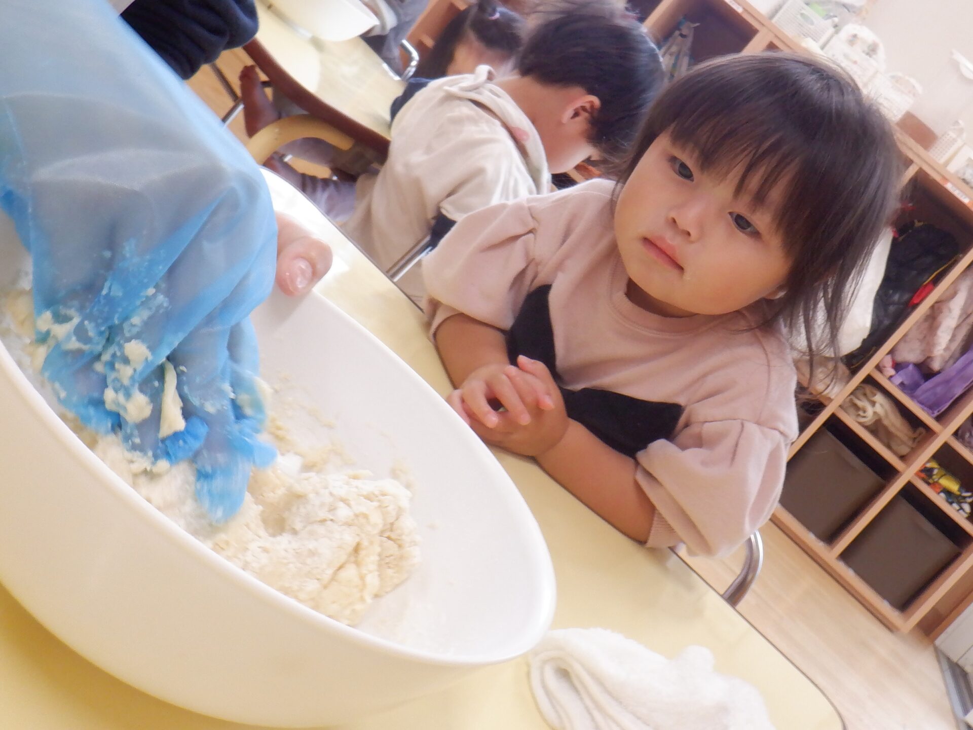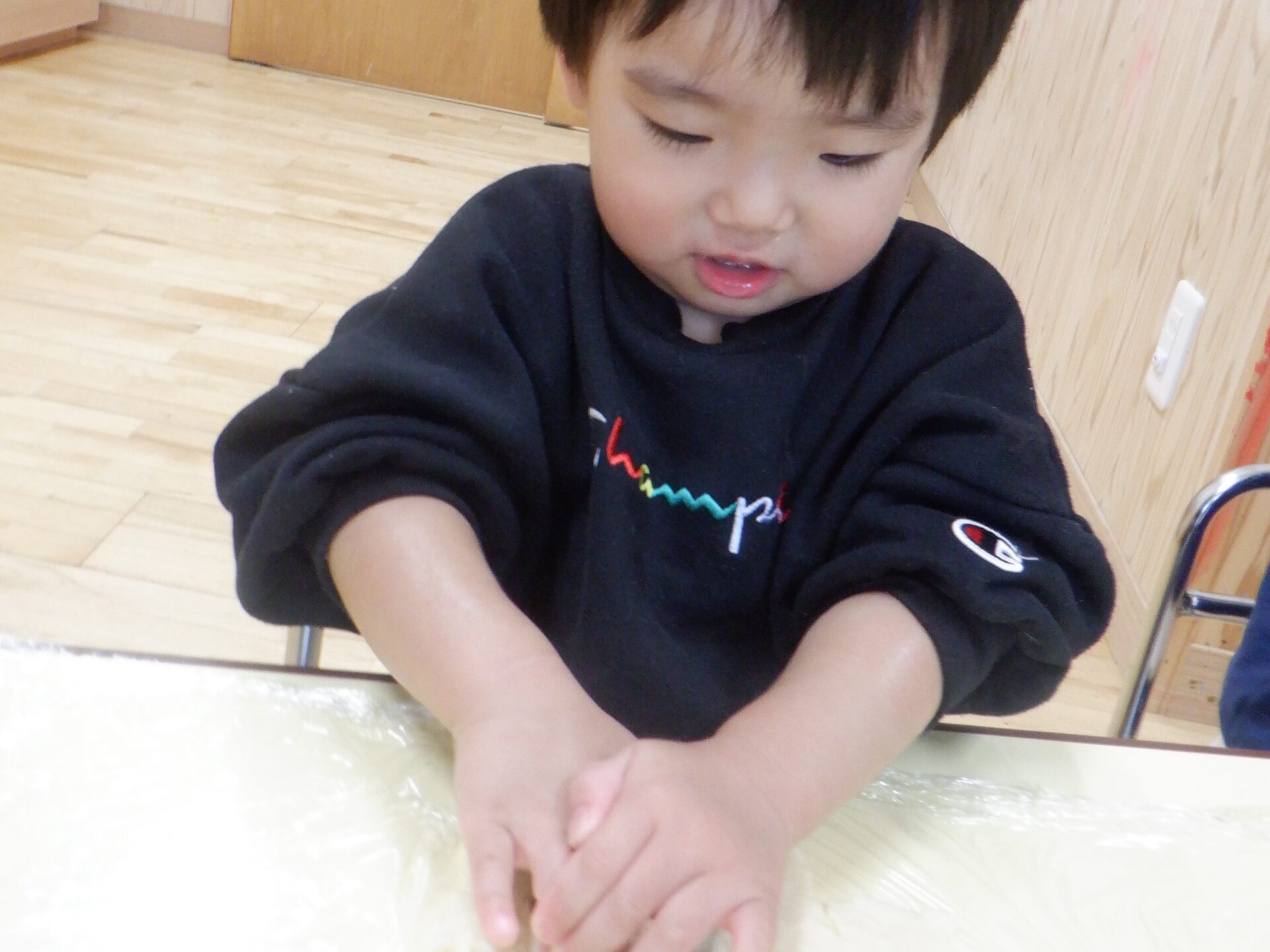 パン粉や小麦粉粘土をたくさんこねこねしていたしずく組さん。