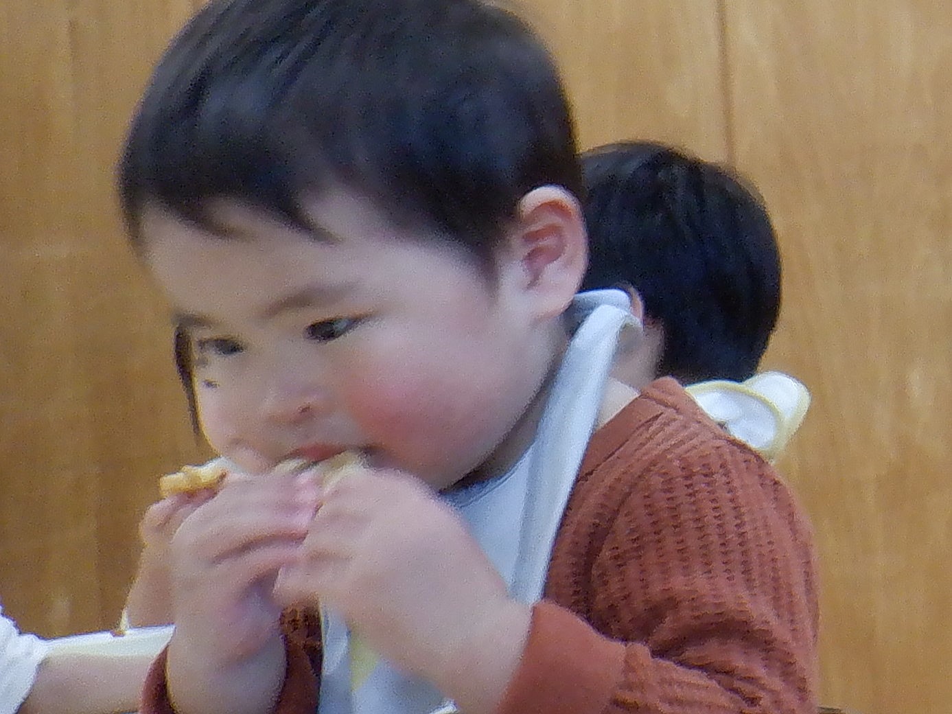 サクサク、ふかふか、食べるのに夢中になり、だんだん静かに…。