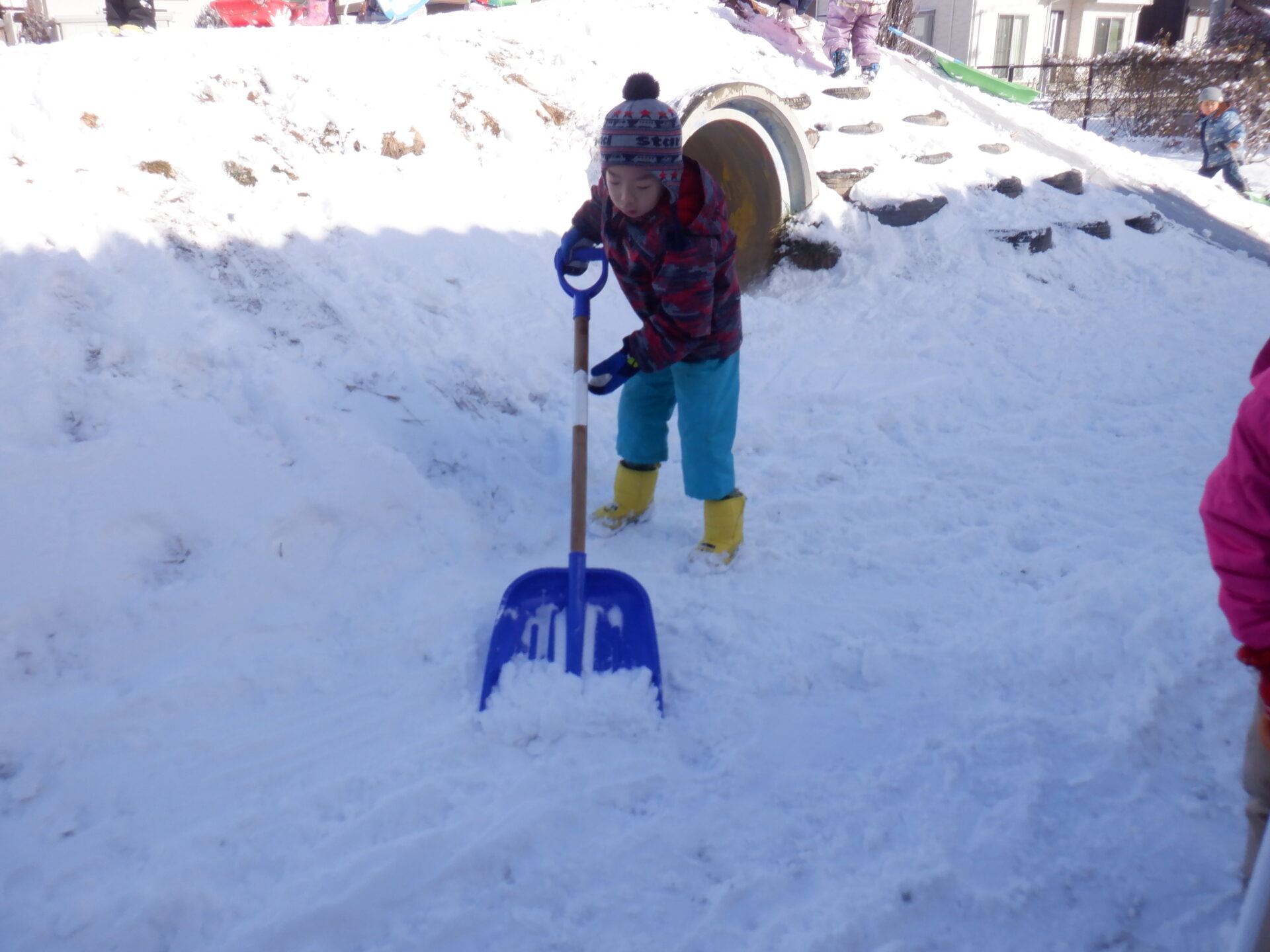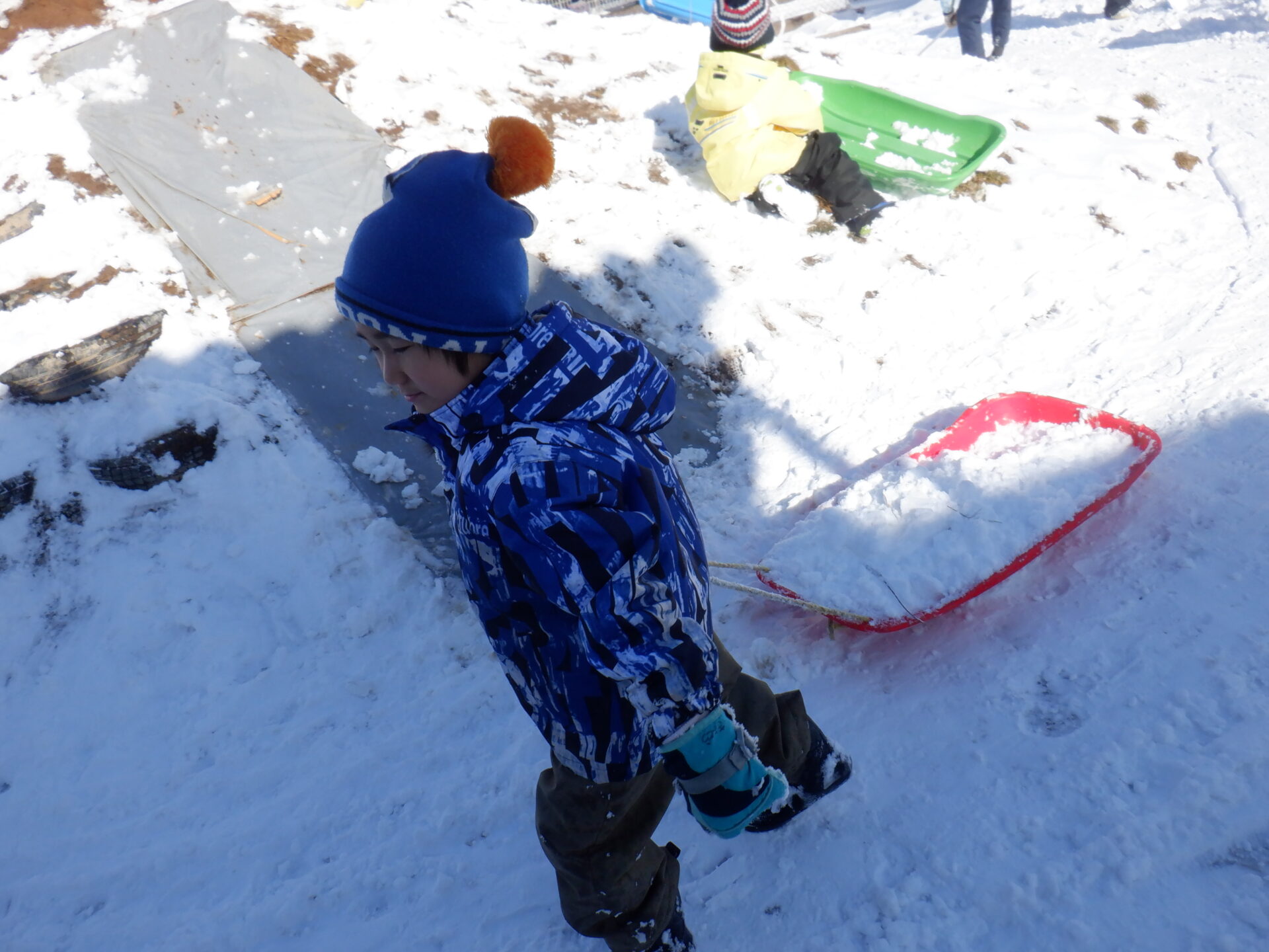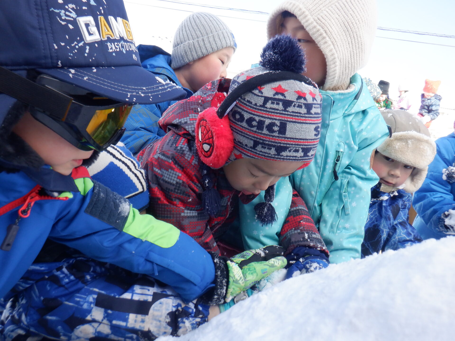 話し合いをして、雪を集める人・雪を運ぶ人決め、協力して作っています。