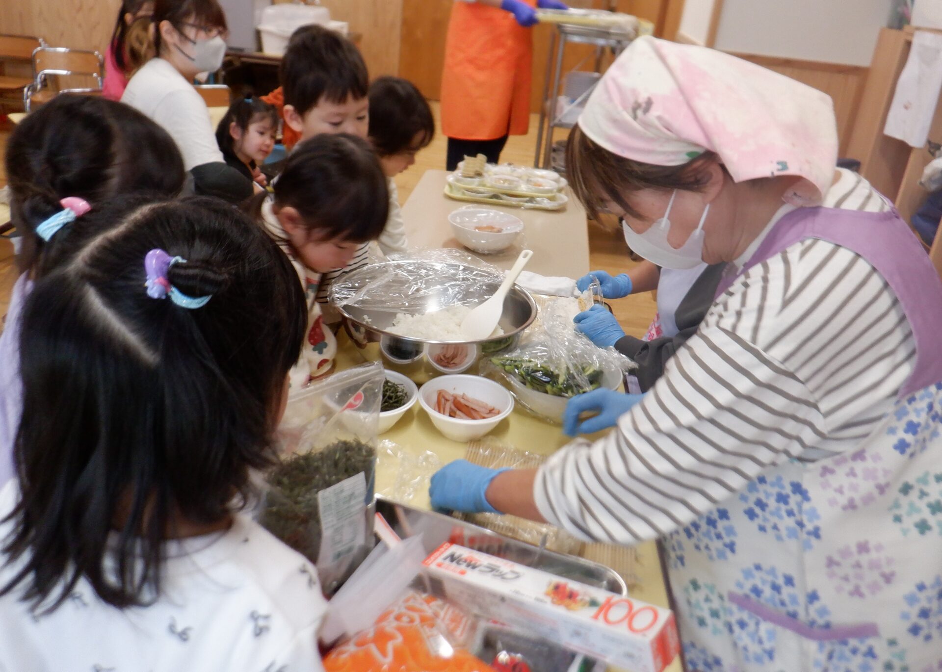 自分の好きな具を選んで目の前で巻いてもらい喜んでいた子ども達。