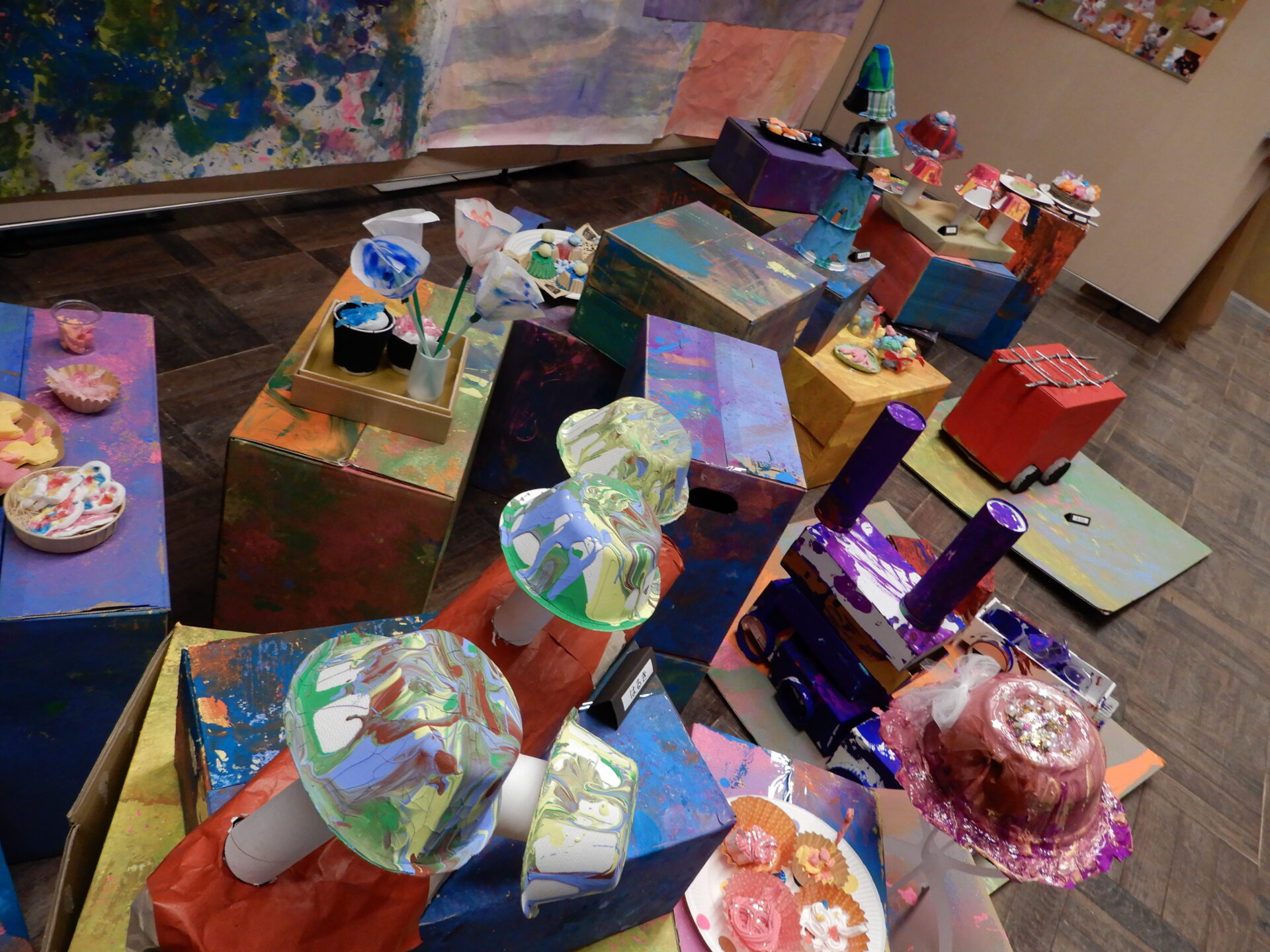 先生たちが工夫しながら、かわいい世界で1つだけの「きのこ」「ぼうし」「ケーキ」など