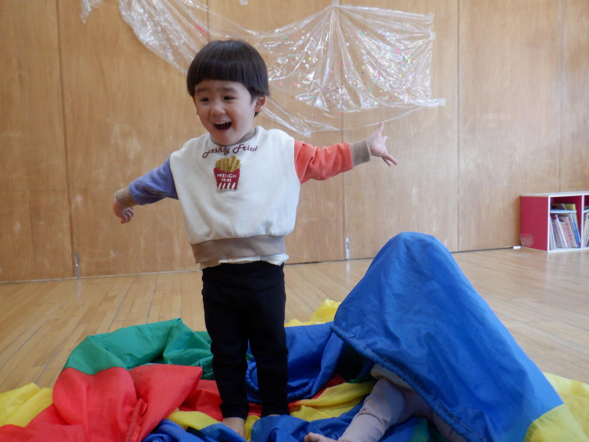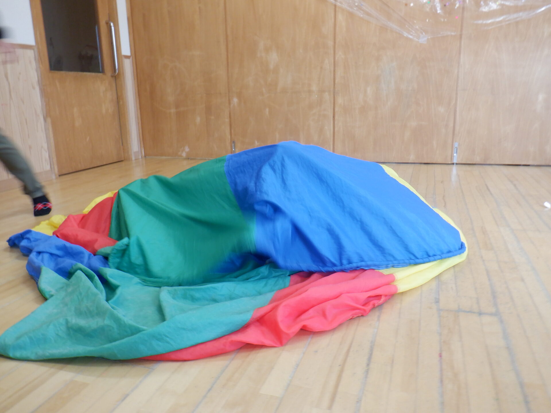 パラシュートの中に隠れ、