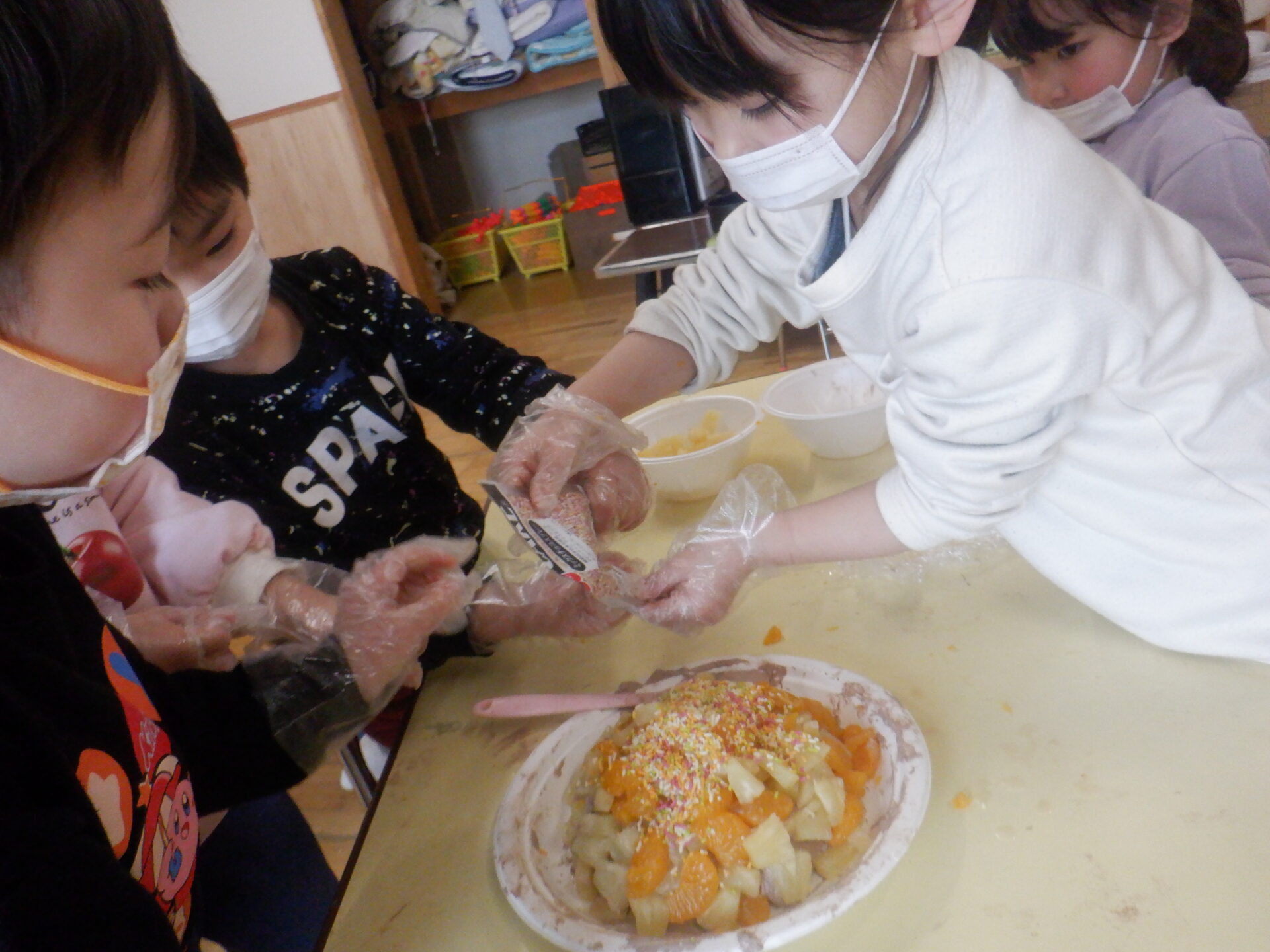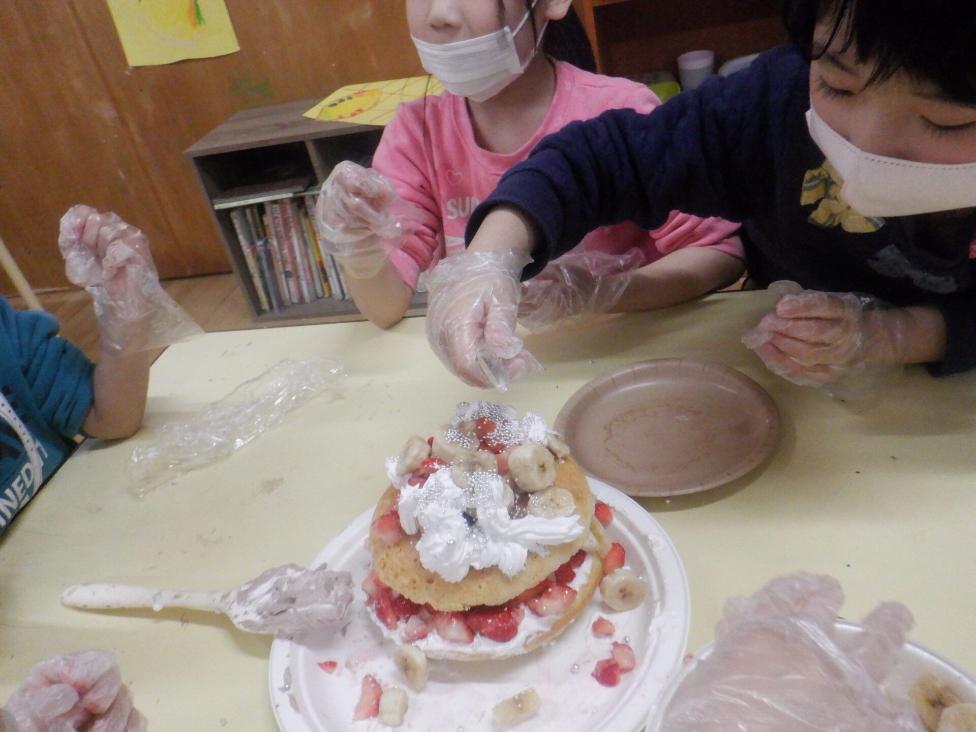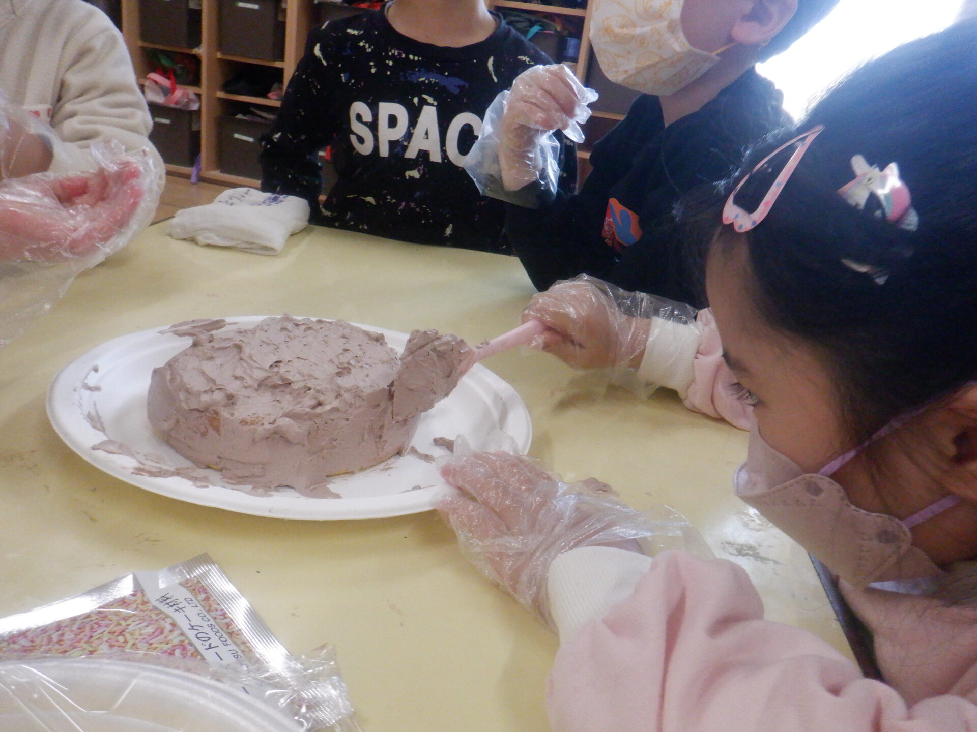 ふわふわなスポンジケーキが完成し仕上げに入ります。