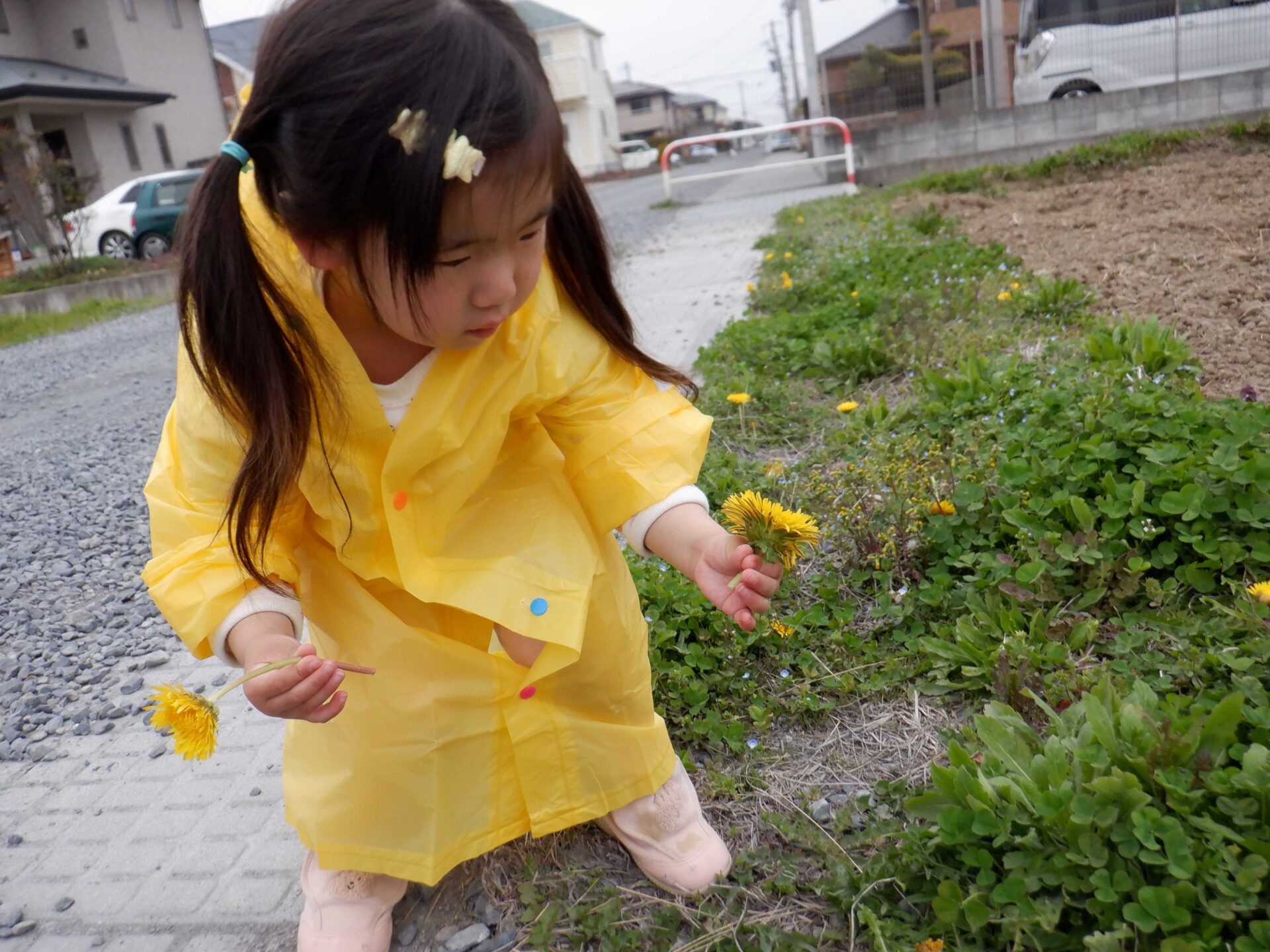 2023.04.07 ブログ あめ・さんぽ ~ゆめぐみ~ あか・きいろ・あおいろ・ピンクのカッパをみて大喜び すきな色のカッパをきて、ウキウキでお散歩です。 大好きなタンポポを沢山つんできました。 一覧へ戻る