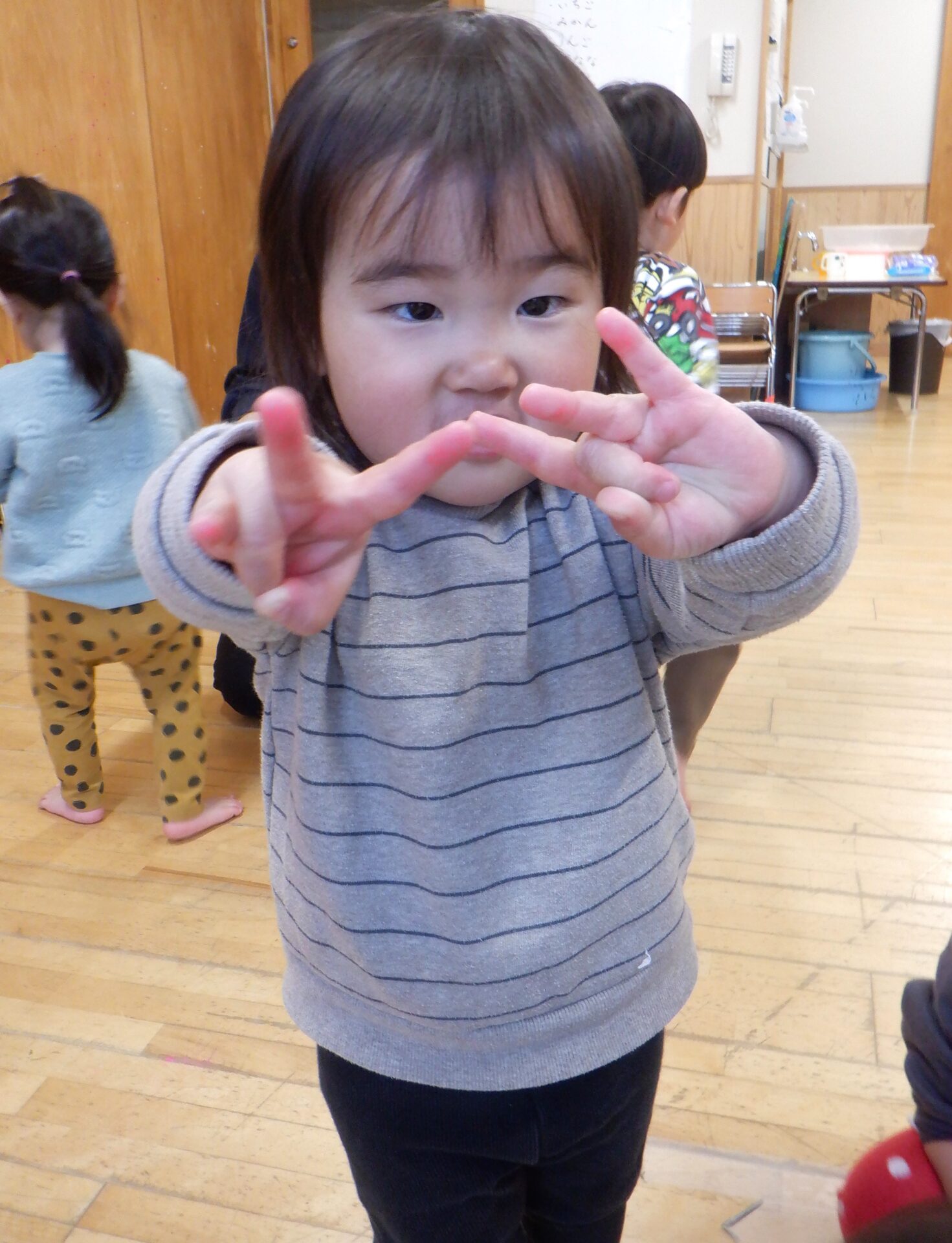2026.03.24 しずく組(1歳児) ブログ カメラを向けると・・・? 保育者がカメラを持っていると、 「何してるの?」 「撮って!」と 興味津々の子ども達。 「へんな顔~」 自分の手を使ってポーズを作ってみるお友だちも♪ みんな良い顔!最高! 一覧へ戻る