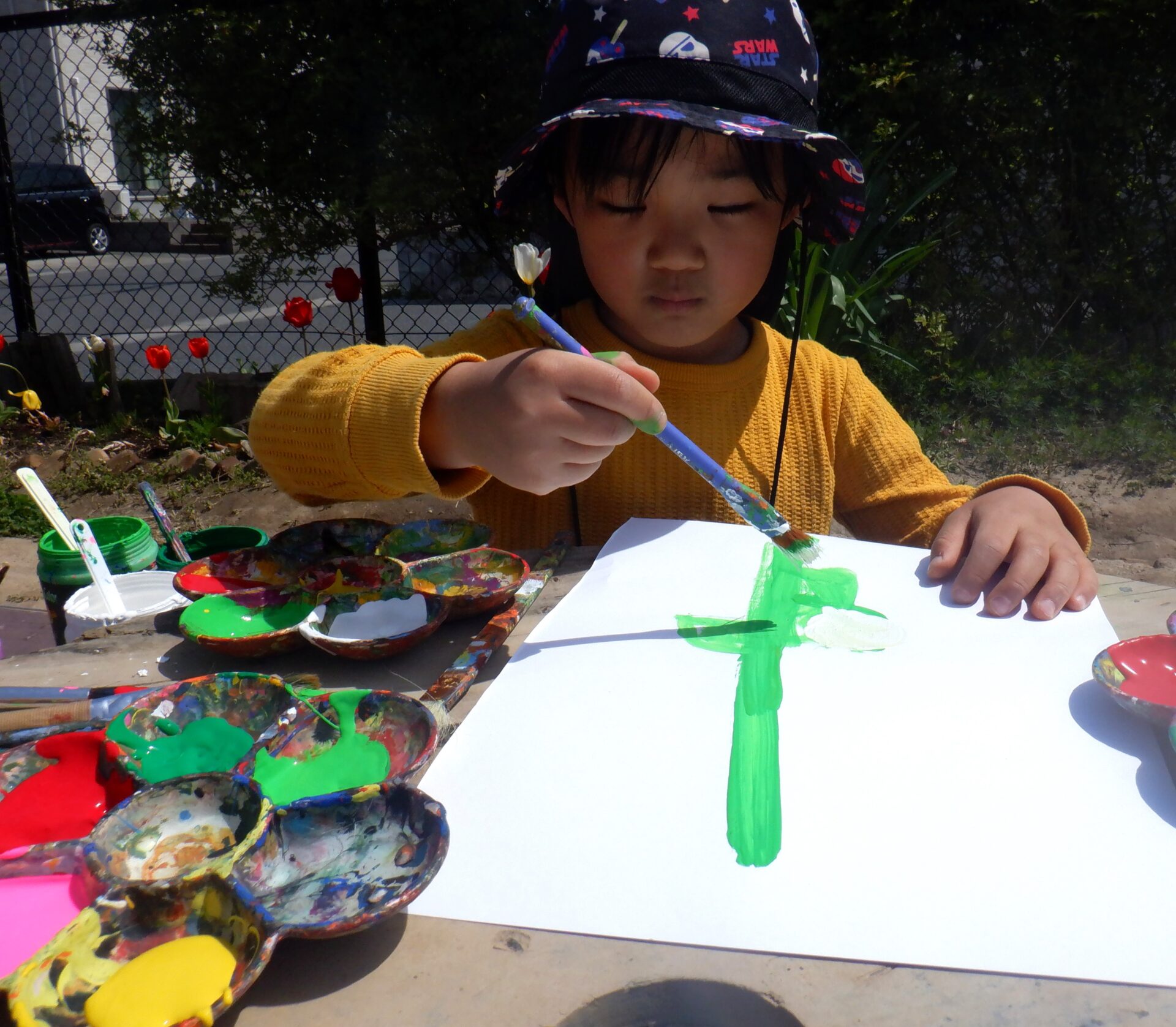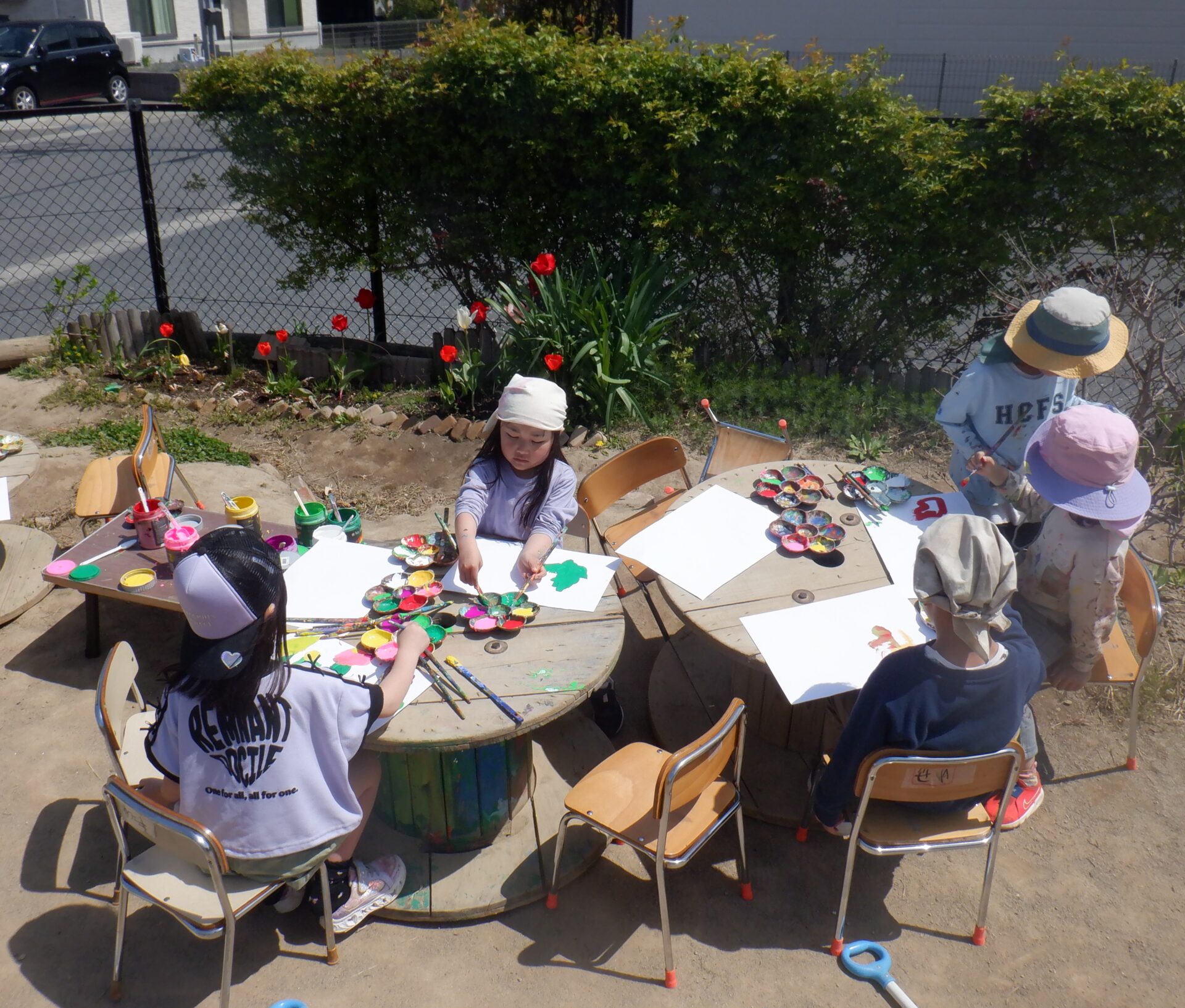 2026.04.21 バオバブ組(5歳児) ブログ 以上児 春を描いてみた。 園庭に咲いたチューリップ・・・。 子ども達と一緒に描いてみました。 花壇の前にコイルやテーブルを置いて絵画開始!! チューリップをよーく観察・・・。 様々な絵の具を使って、思い思いのチューリップを表現していました。 一覧へ戻る