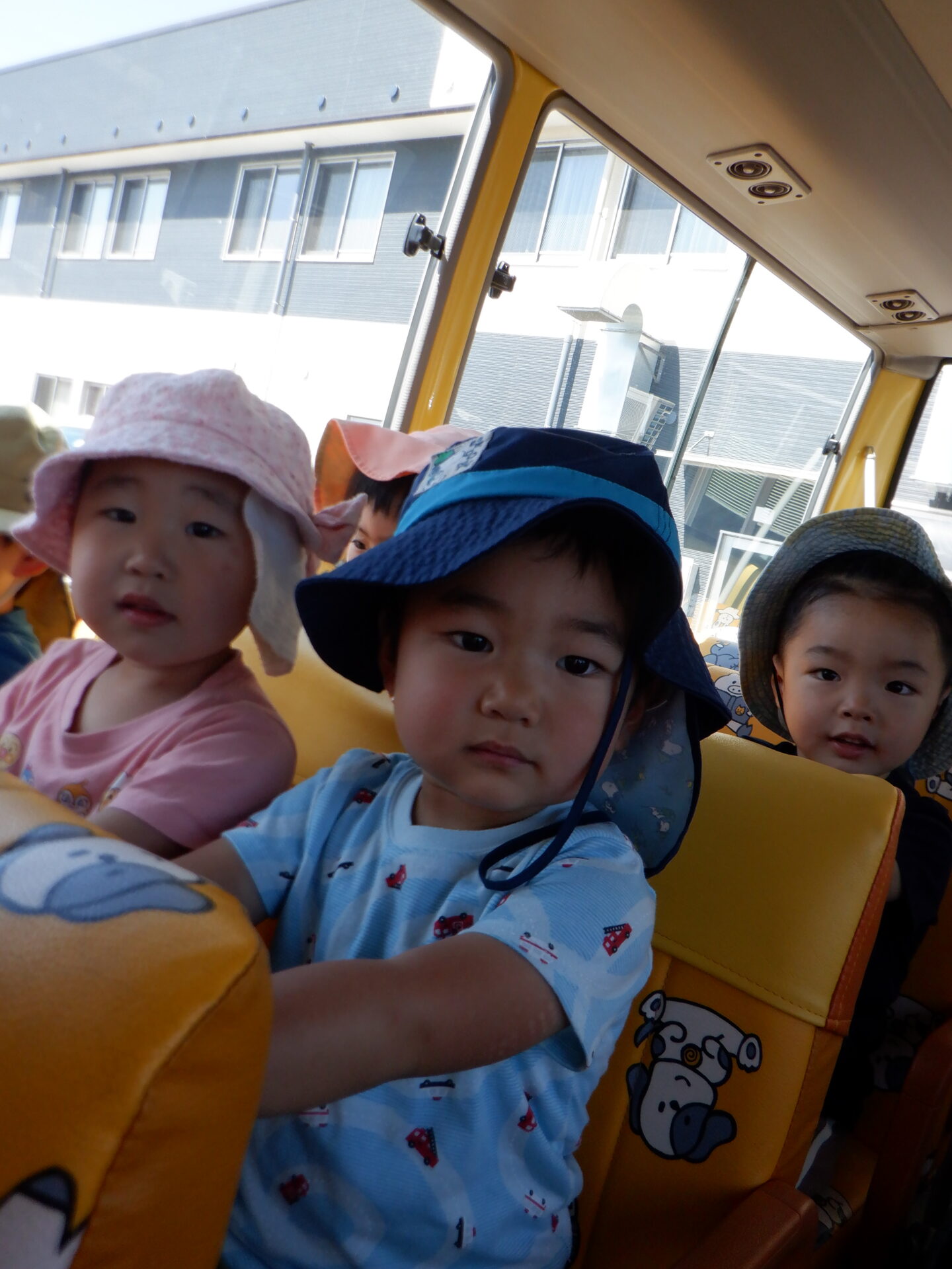 幼稚園バスに乗って・・見晴らしがいいので みんな大興奮です。