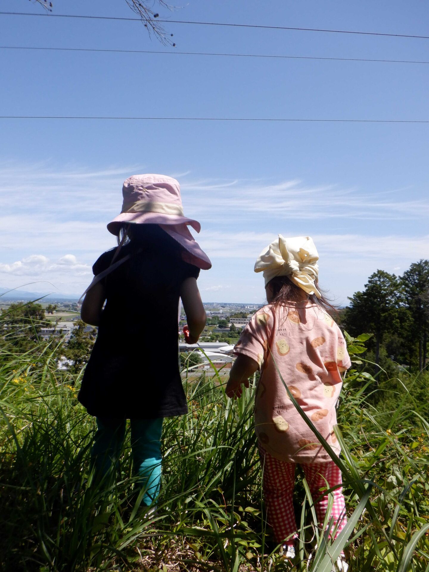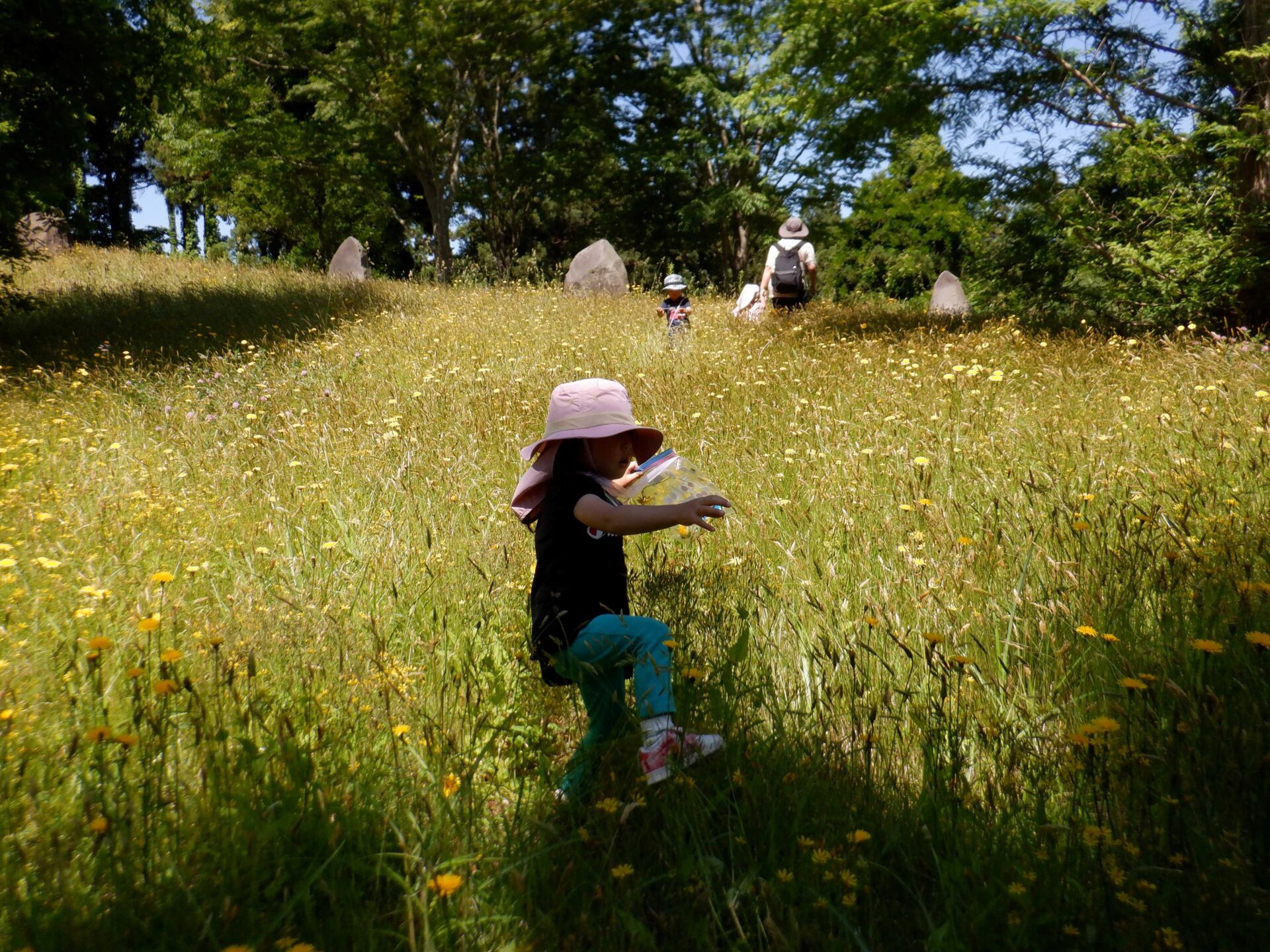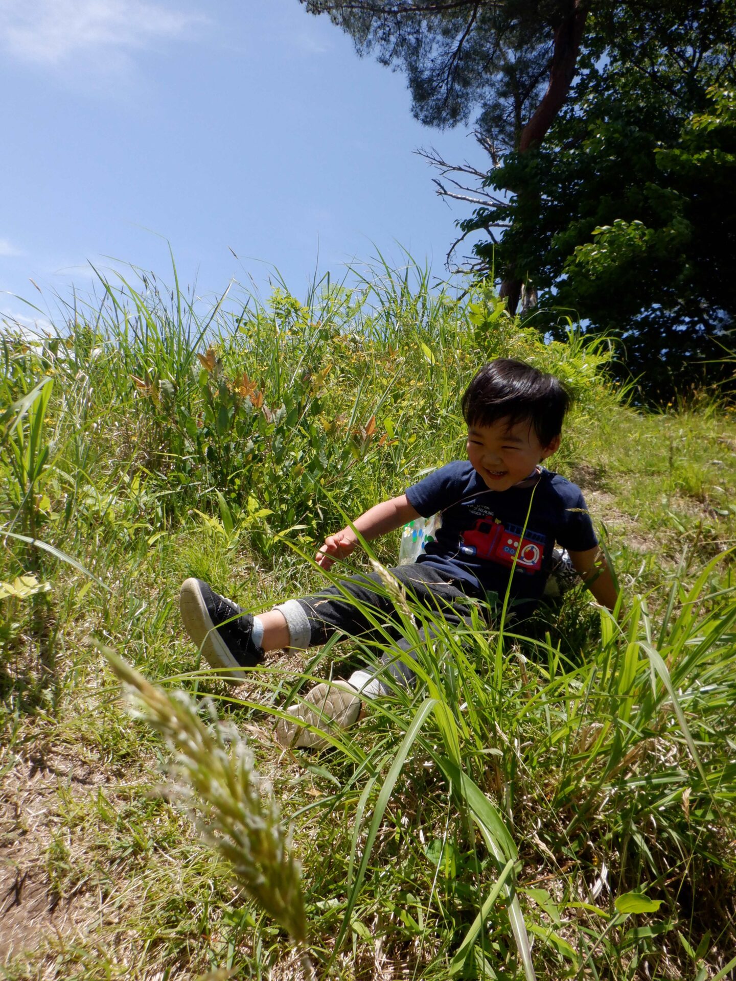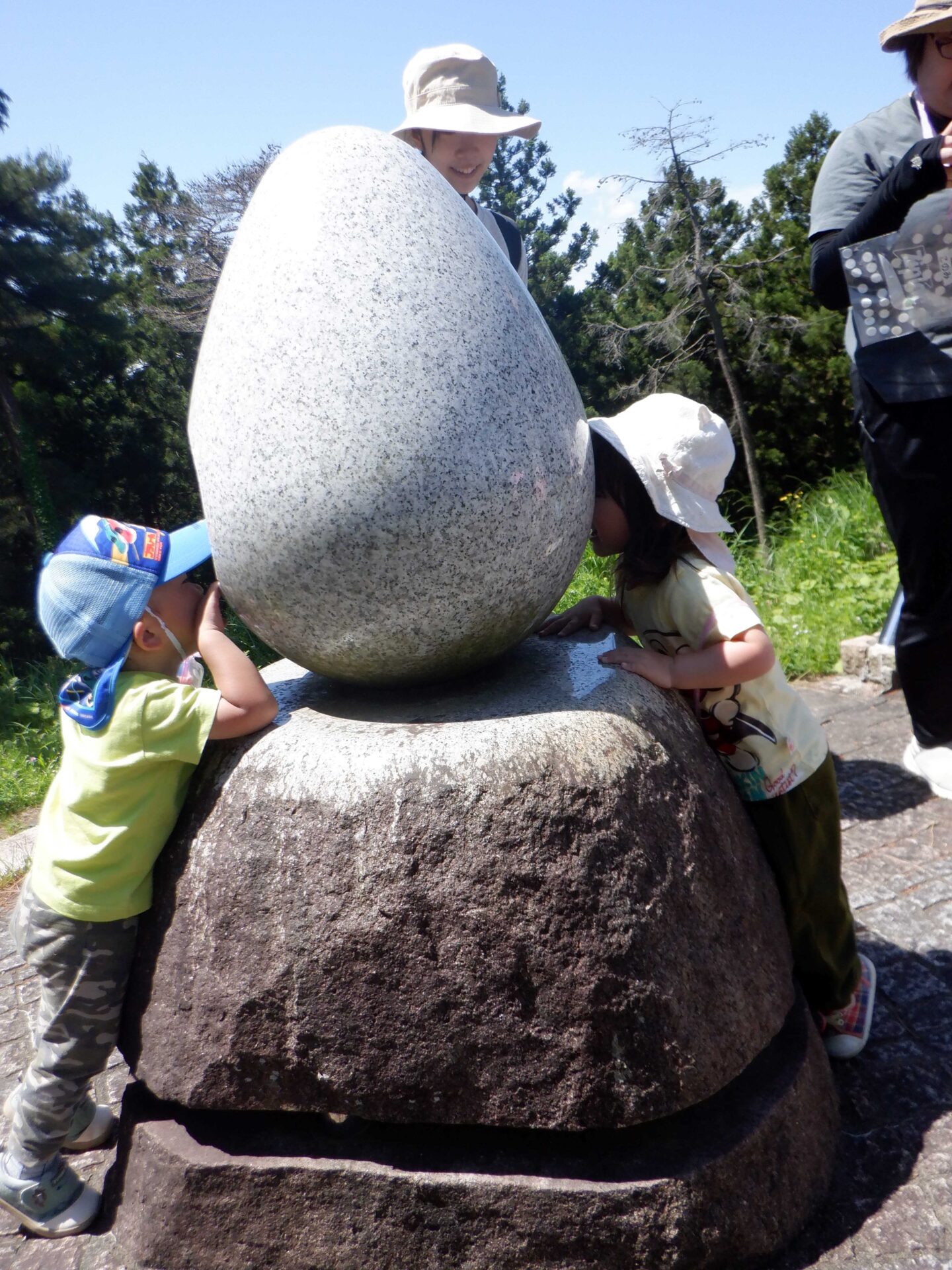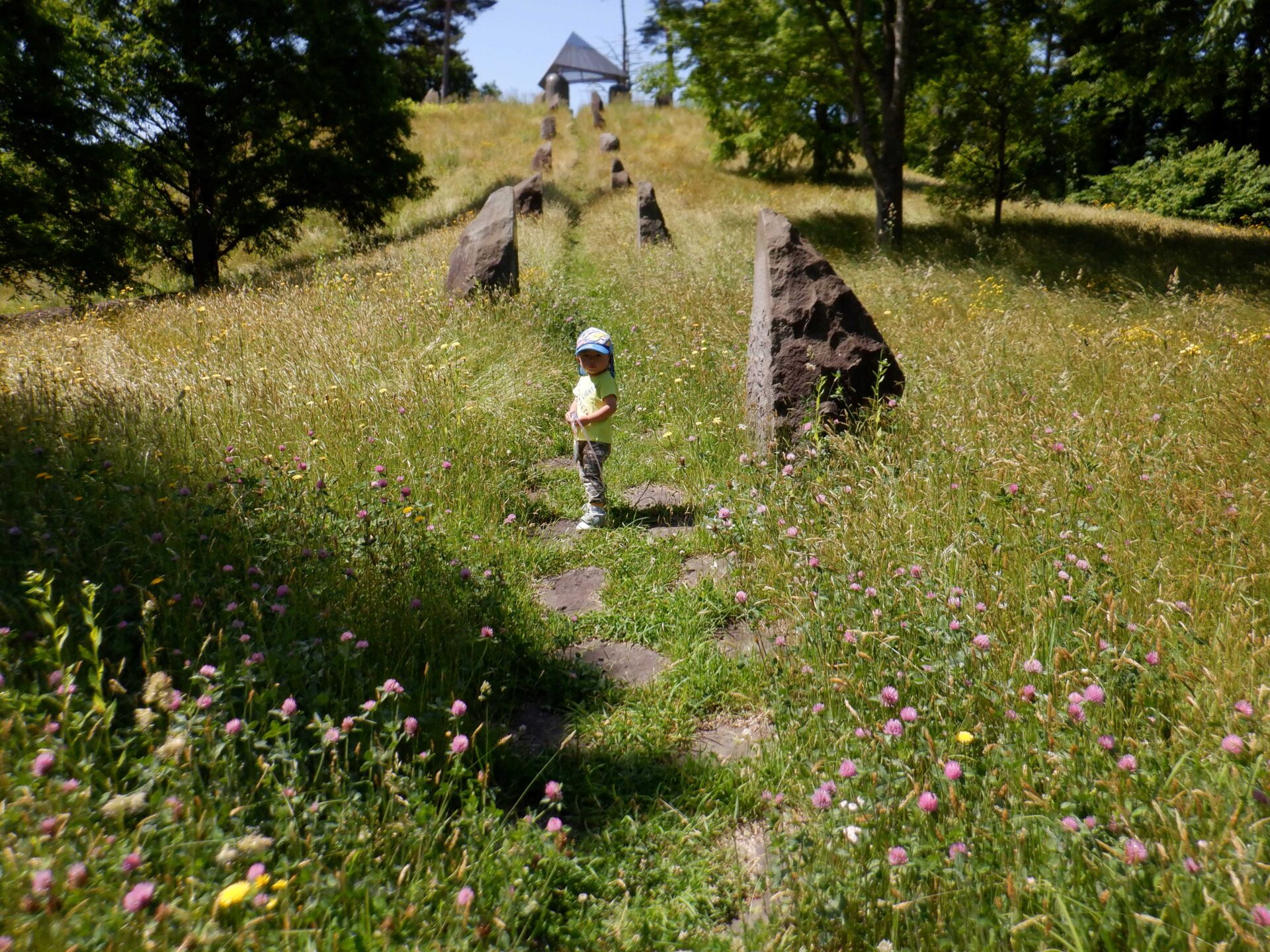 公園は小高い丘になっていて、土手を登ってみたり、草すべりをしたり、オブジェを覗いてみたり