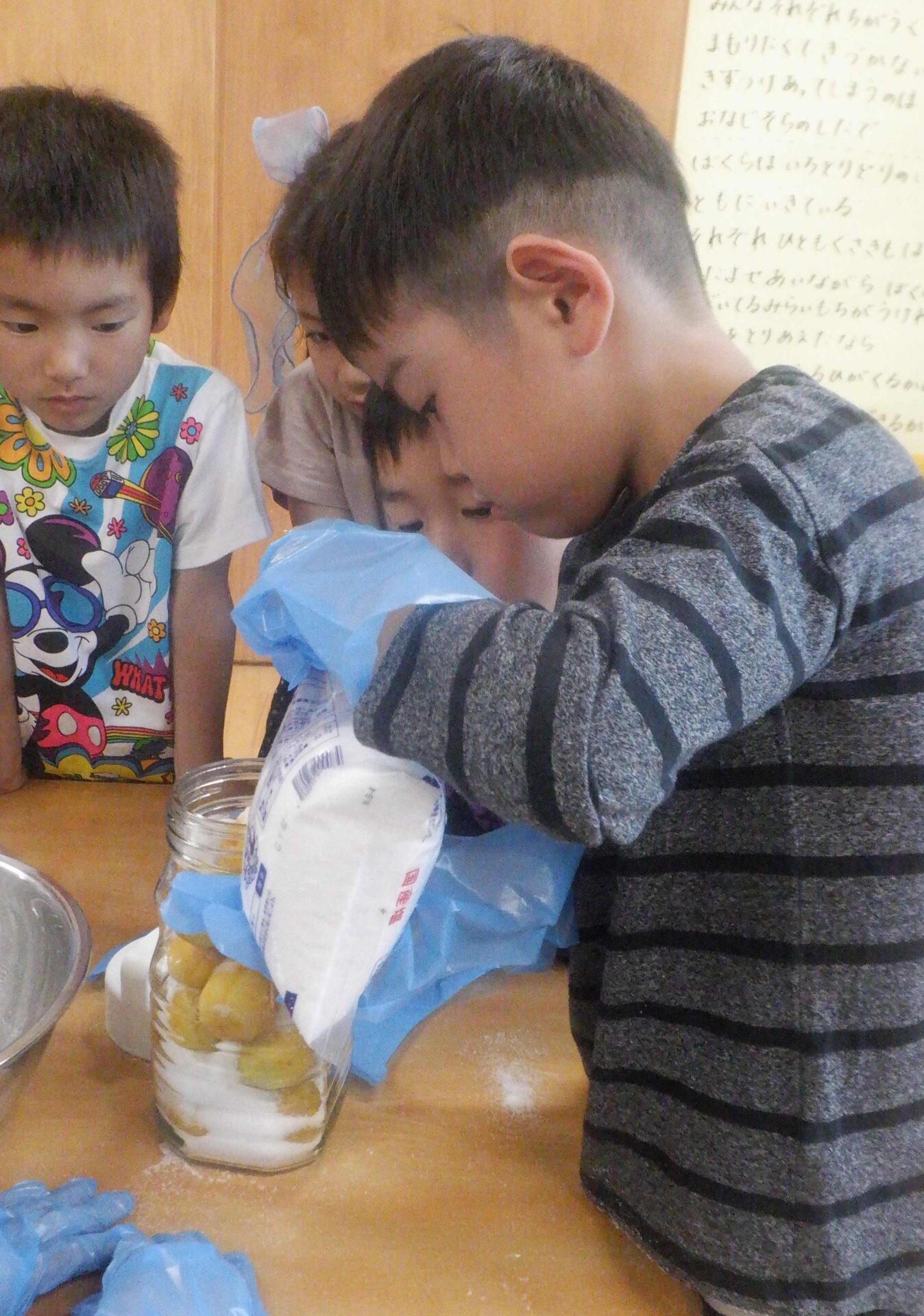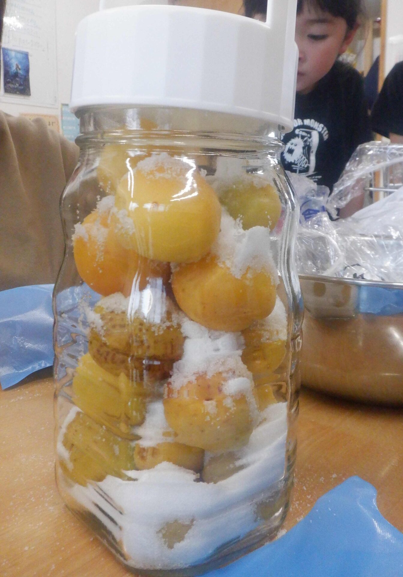 梅を給食室で消毒してもらい、手違いでヘタも取られてしまい