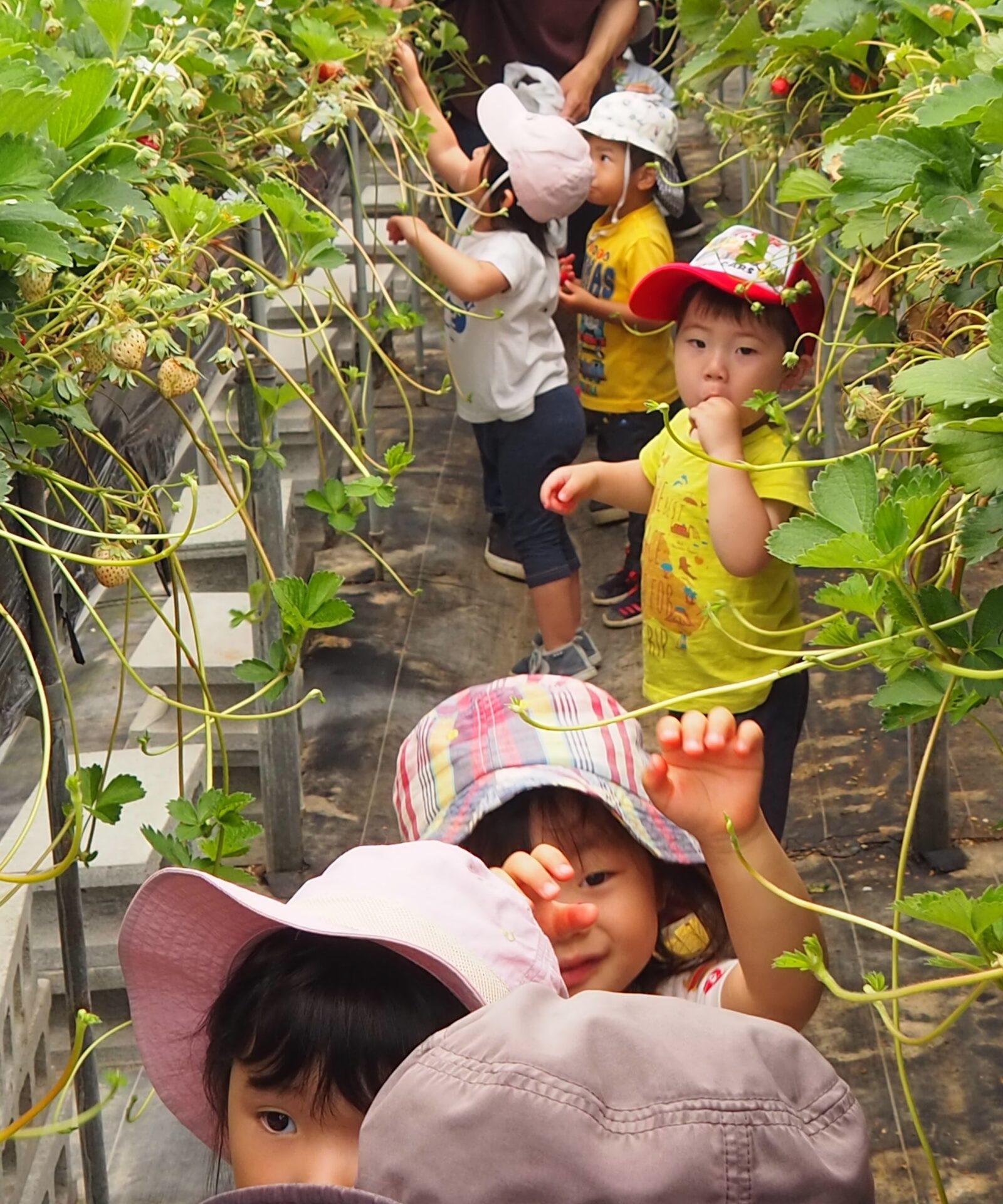 保育園の近くのいちごハウスでいちご狩り・・