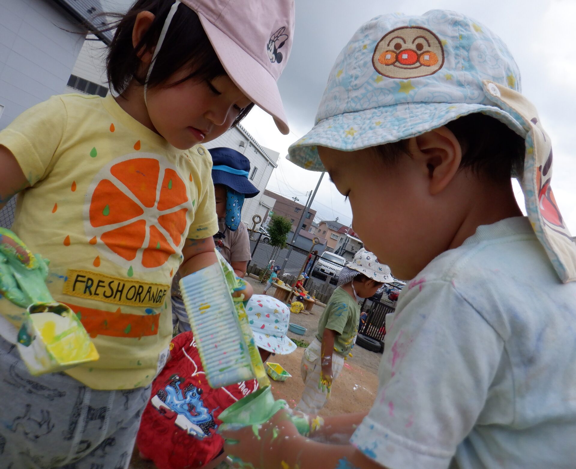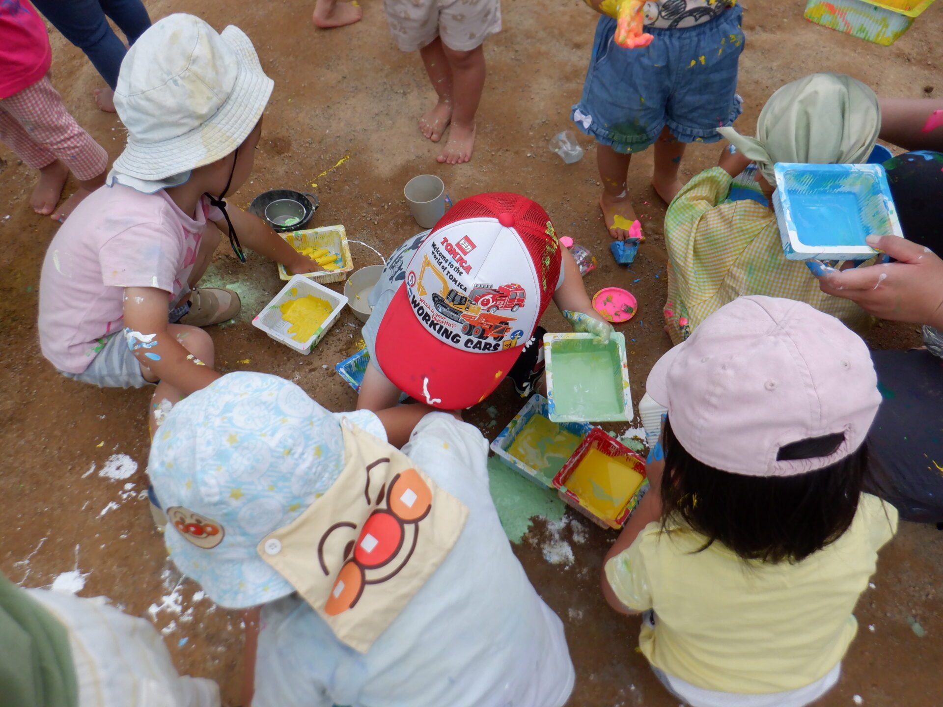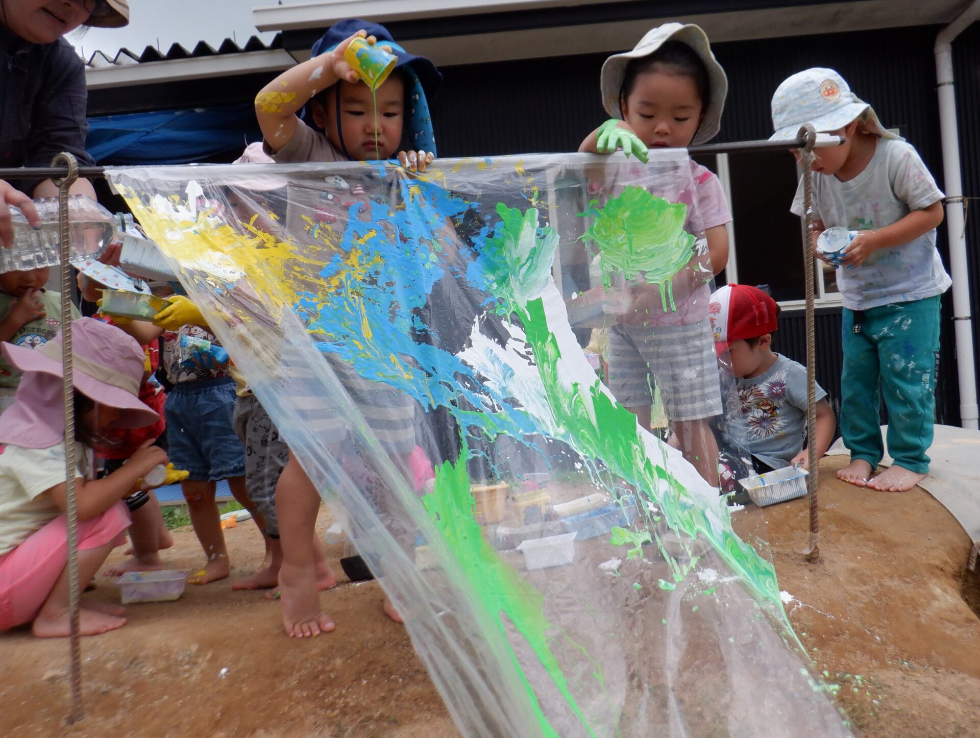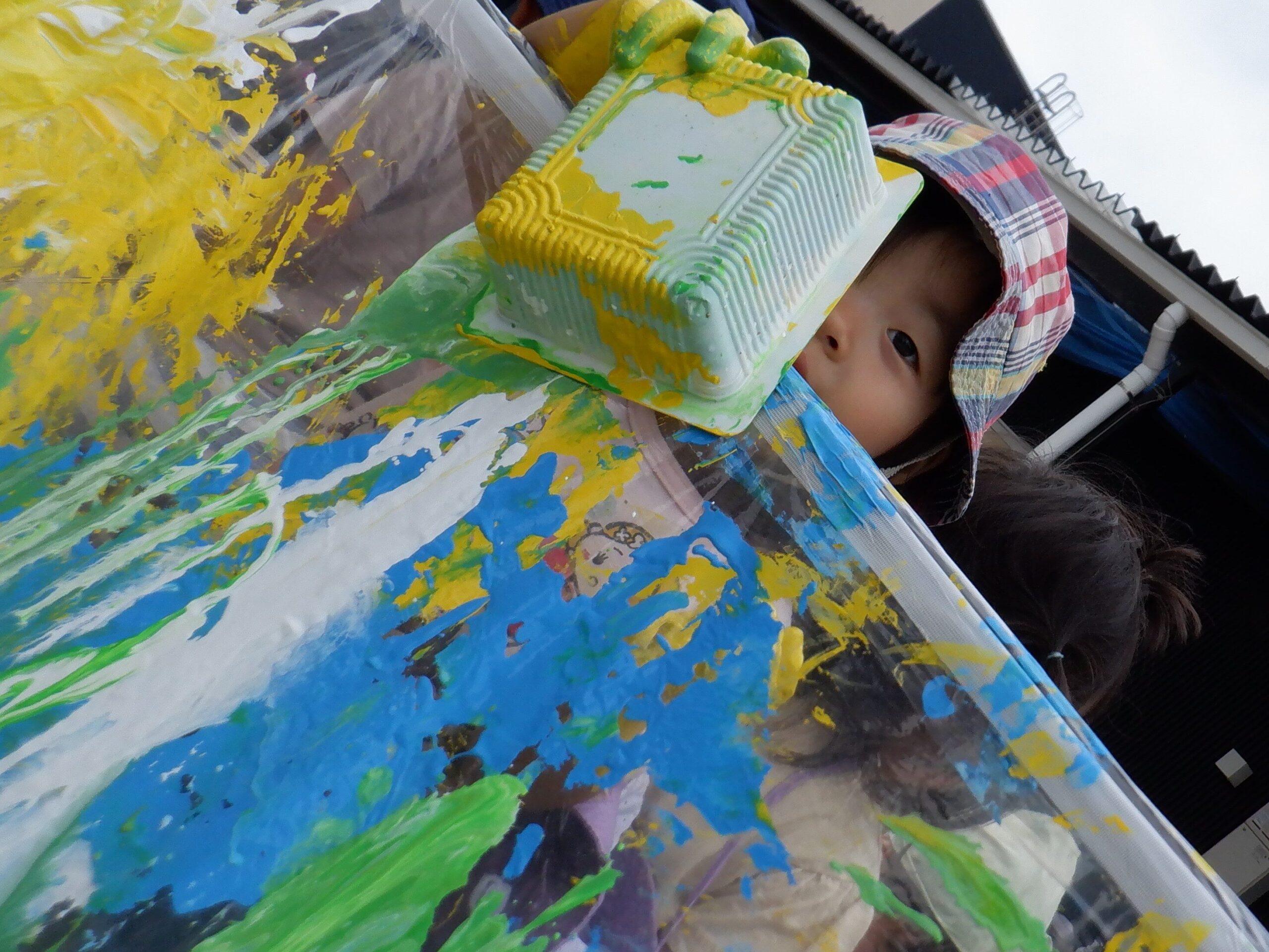 透明シートに好きな色の絵の具を自由に混ぜてたら~り。